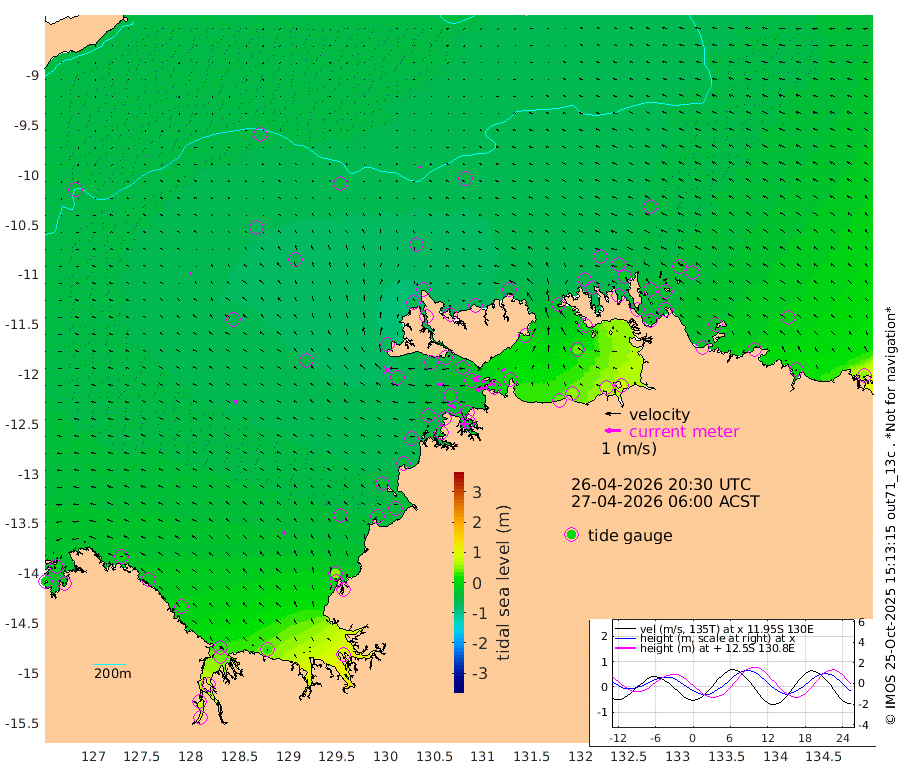 84cm/s -102T +4cm/s rms + 6cm/s 51T. Darwin_C1 52m 36cm/s -87T +4cm/s rms + 7cm/s -161T. Darwin_CW1 22m 26cm/s -105T +4cm/s rms + 8cm/s 61T. Darwin_CW2 34m 25cm/s -117T +3cm/s rms + 9cm/s 98T. Darwin_CW3 22m 29cm/s -91T +5cm/s rms + 7cm/s 88T. Darwin_C3 56m 53cm/s -115T +2cm/s rms + 9cm/s -126T. Darwin_CTbW 22m 10cm/s -31T +9cm/s rms + 2cm/s -110T. NWSLYN 196m 36cm/s -87T +1cm/s rms + 1cm/s -47T. DARBGF 30m 6cm/s -114T +7cm/s rms + 2cm/s -137T. ITFTIS 464m 9cm/s -34T +9cm/s rms + 1cm/s 74T. ITFMHB 146m 19cm/s -39T +4cm/s rms + 1cm/s -134T. ITFJBG 61m 23cm/s -53T +6cm/s rms + 4cm/s 121T. ITFFTB 108m 36cm/s -60T +4cm/s rms + 3cm/s 80T. NRSDAR 19m -11cm Carronade Island -8cm Guy Point -23cm Napier Broome Bay -7cm Lesueur Island 13cm Reveley Island -22cm Rocky Island 36cm Cape Domett 31cm Lacrosse Island 73cm Adolphus Island 85cm Pender Point 103cm Wyndham -60cm The Boxers -72cm Unnamed Shoal -57cm Loxton Shoal 33cm Pelican Island -60cm Calder Shoal -56cm Evans Shoal 89cm Quoin Island 1cm Port Keats 7cm Jones Point 48cm Catfish Island -38cm Cape Scott Offshore -27cm Cape Ford -43cm Anson Bay -57cm Goodrich Bank -44cm Peron Island North -44cm Point Jenny -46cm Native Point -42cm Fish Reef -40cm Tapa Bay -69cm Point Fawcett (Offshore) -25cm Burge Point -47cm Munkunuwa -41cm Beagle A -31cm Parsons Bank -21cm Fenton Patches -52cm Lynedoch Bank -18cm Hancox Shoal Area -23cm Nightcliff -25cm Darwin -36cm Charles Point Patches 4cm Glyde Point 41cm Chambers Bay 47cm Point Stuart 16cm Cape Hotham 38cm Christine Reef 57cm West Alligator Head 80cm East Field Island 17cm Two Hills Bay -53cm Newby Shoal 25cm Camp Point -45cm Medina Inlet South -66cm South Barlow Point -64cm St. Asaph Bay -60cm Cape Van Dieman -65cm Snake Bay -56cm Cache Point -43cm Echo Shoal -47cm Point Jahleel (Off) -32cm Cape Don -47cm Port Essington -47cm Smith Point - West -44cm NW Peacock Island -51cm North Of Jones Shoal -17cm Peacock Island -33cm Point David -45cm D'urville Point -38cm Money Shoal -28cm Copeland Island -37cm Cape Cockburn -37cm One Tree Point -31cm Hogmany Shoal -33cm New Year Island - West -32cm Grant Island -18cm Aurari Bay -8cm Cuthbert Point -24cm North Goulburn Island -2cm Paxie Shoal 22cm Entrance Island 52cm Yabooma Island