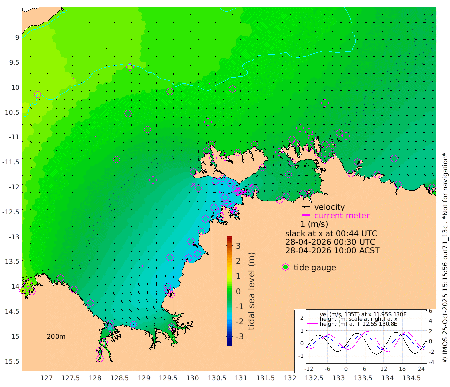 101cm/s -102T +4cm/s rms + 6cm/s 51T. Darwin_C1 52m 74cm/s -89T +4cm/s rms + 7cm/s -161T. Darwin_CW1 22m 65cm/s -107T +4cm/s rms + 8cm/s 61T. Darwin_CW2 34m 51cm/s -134T +3cm/s rms + 9cm/s 98T. Darwin_CW3 22m 94cm/s -91T +5cm/s rms + 7cm/s 88T. Darwin_C3 56m 57cm/s -115T +2cm/s rms + 9cm/s -126T. Darwin_CTbW 22m 3cm/s -81T +9cm/s rms + 2cm/s -110T. NWSLYN 196m 28cm/s -96T +1cm/s rms + 1cm/s -47T. DARBGF 30m 4cm/s 144T +7cm/s rms + 2cm/s -137T. ITFTIS 464m 3cm/s 94T +9cm/s rms + 1cm/s 74T. ITFMHB 146m 15cm/s -7T +4cm/s rms + 1cm/s -134T. ITFJBG 61m 6cm/s -1T +6cm/s rms + 4cm/s 121T. ITFFTB 108m 24cm/s -68T +4cm/s rms + 3cm/s 80T. NRSDAR 19m 57cm Carronade Island 59cm Guy Point 54cm Napier Broome Bay -12cm Lesueur Island -82cm Reveley Island -17cm Rocky Island -128cm Cape Domett -117cm Lacrosse Island -102cm Adolphus Island -70cm Pender Point -47cm Wyndham -7cm The Boxers -33cm Unnamed Shoal 47cm Loxton Shoal -151cm Pelican Island 5cm Calder Shoal 28cm Evans Shoal -128cm Quoin Island -150cm Port Keats -165cm Jones Point -125cm Catfish Island -123cm Cape Scott Offshore -152cm Cape Ford -144cm Anson Bay 11cm Goodrich Bank -123cm Peron Island North -126cm Point Jenny -124cm Native Point -136cm Fish Reef -143cm Tapa Bay -65cm Point Fawcett (Offshore) -150cm Burge Point -137cm Munkunuwa -100cm Beagle A -147cm Parsons Bank -138cm Fenton Patches 21cm Lynedoch Bank -141cm Hancox Shoal Area -147cm Nightcliff -160cm Darwin -145cm Charles Point Patches -114cm Glyde Point -89cm Chambers Bay -84cm Point Stuart -97cm Cape Hotham -70cm Christine Reef -88cm West Alligator Head -73cm East Field Island -75cm Two Hills Bay -46cm Newby Shoal -74cm Camp Point -138cm Medina Inlet South -43cm South Barlow Point -24cm St. Asaph Bay 5cm Cape Van Dieman 3cm Snake Bay 2cm Cache Point 63cm Echo Shoal -9cm Point Jahleel (Off) -45cm Cape Don -18cm Port Essington -14cm Smith Point - West -11cm NW Peacock Island -1cm North Of Jones Shoal -2cm Peacock Island -34cm Point David -17cm D'urville Point -11cm Money Shoal -36cm Copeland Island -44cm Cape Cockburn -30cm One Tree Point -44cm Hogmany Shoal -29cm New Year Island - West -33cm Grant Island -48cm Aurari Bay -59cm Cuthbert Point -50cm North Goulburn Island -74cm Paxie Shoal -80cm Entrance Island -95cm Yabooma Island
