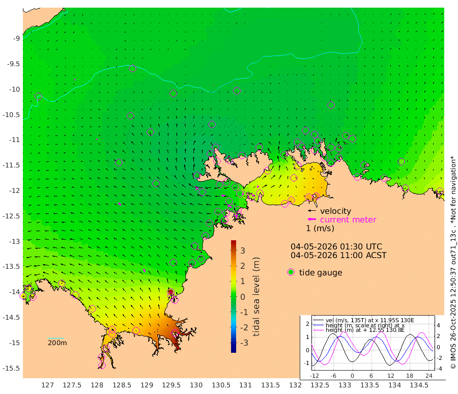 8cm/s 93T +4cm/s rms + 6cm/s 51T. Darwin_C1 52m 28cm/s 87T +4cm/s rms + 7cm/s -161T. Darwin_CW1 22m 17cm/s -114T +4cm/s rms + 8cm/s 61T. Darwin_CW2 34m 27cm/s 32T +3cm/s rms + 9cm/s 98T. Darwin_CW3 22m 12cm/s 109T +5cm/s rms + 7cm/s 88T. Darwin_C3 56m 5cm/s -138T +2cm/s rms + 9cm/s -126T. Darwin_CTbW 22m 4cm/s -4T +9cm/s rms + 2cm/s -110T. NWSLYN 196m 51cm/s -85T +1cm/s rms + 1cm/s -47T. DARBGF 30m 6cm/s -92T +7cm/s rms + 2cm/s -137T. ITFTIS 464m 11cm/s -37T +9cm/s rms + 1cm/s 74T. ITFMHB 146m 40cm/s -32T +4cm/s rms + 1cm/s -134T. ITFJBG 61m 38cm/s -50T +6cm/s rms + 4cm/s 121T. ITFFTB 108m 59cm/s -54T +4cm/s rms + 3cm/s 80T. NRSDAR 19m 121cm Carronade Island 127cm Guy Point 125cm Napier Broome Bay 114cm Lesueur Island 114cm Reveley Island 70cm Rocky Island 165cm Cape Domett 156cm Lacrosse Island 210cm Adolphus Island 282cm Pender Point 320cm Wyndham 4cm The Boxers -19cm Unnamed Shoal 3cm Loxton Shoal 139cm Pelican Island -11cm Calder Shoal -10cm Evans Shoal 278cm Quoin Island 76cm Port Keats 73cm Jones Point 341cm Catfish Island 18cm Cape Scott Offshore -34cm Cape Ford -1cm Anson Bay -29cm Goodrich Bank 2cm Peron Island North -19cm Point Jenny -22cm Native Point -10cm Fish Reef -13cm Tapa Bay -31cm Point Fawcett (Offshore) -3cm Burge Point -33cm Munkunuwa -25cm Beagle A -8cm Parsons Bank -6cm Fenton Patches -17cm Lynedoch Bank 10cm Hancox Shoal Area 0cm Nightcliff 12cm Darwin -2cm Charles Point Patches 65cm Glyde Point 136cm Chambers Bay 161cm Point Stuart 88cm Cape Hotham 123cm Christine Reef 184cm West Alligator Head 219cm East Field Island 110cm Two Hills Bay -3cm Newby Shoal 97cm Camp Point -14cm Medina Inlet South -49cm South Barlow Point -41cm St. Asaph Bay -36cm Cape Van Dieman -36cm Snake Bay -22cm Cache Point 19cm Echo Shoal -11cm Point Jahleel (Off) 17cm Cape Don -16cm Port Essington -20cm Smith Point - West -17cm NW Peacock Island -17cm North Of Jones Shoal -7cm Peacock Island -9cm Point David -22cm D'urville Point -14cm Money Shoal -7cm Copeland Island -2cm Cape Cockburn -5cm One Tree Point 14cm Hogmany Shoal -1cm New Year Island - West -1cm Grant Island 8cm Aurari Bay 27cm Cuthbert Point 10cm North Goulburn Island 43cm Paxie Shoal 48cm Entrance Island 71cm Yabooma Island