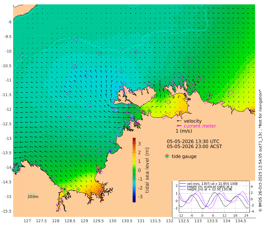 16cm/s -111T +4cm/s rms + 6cm/s 51T. Darwin_C1 52m 3cm/s 43T +4cm/s rms + 7cm/s -161T. Darwin_CW1 22m 28cm/s -102T +4cm/s rms + 8cm/s 61T. Darwin_CW2 34m 18cm/s 36T +3cm/s rms + 9cm/s 98T. Darwin_CW3 22m 20cm/s -97T +5cm/s rms + 7cm/s 88T. Darwin_C3 56m 18cm/s -116T +2cm/s rms + 9cm/s -126T. Darwin_CTbW 22m 11cm/s -39T +9cm/s rms + 2cm/s -110T. NWSLYN 196m 68cm/s -88T +1cm/s rms + 1cm/s -47T. DARBGF 30m 13cm/s -120T +7cm/s rms + 2cm/s -137T. ITFTIS 464m 21cm/s -41T +9cm/s rms + 1cm/s 74T. ITFMHB 146m 37cm/s -35T +4cm/s rms + 1cm/s -134T. ITFJBG 61m 47cm/s -58T +6cm/s rms + 4cm/s 121T. ITFFTB 108m 79cm/s -56T +4cm/s rms + 3cm/s 80T. NRSDAR 19m -41cm Carronade Island -44cm Guy Point -42cm Napier Broome Bay -47cm Lesueur Island -15cm Reveley Island -23cm Rocky Island 38cm Cape Domett 22cm Lacrosse Island 98cm Adolphus Island 154cm Pender Point 187cm Wyndham -122cm The Boxers -118cm Unnamed Shoal -119cm Loxton Shoal 37cm Pelican Island -138cm Calder Shoal -111cm Evans Shoal 177cm Quoin Island -34cm Port Keats -18cm Jones Point 254cm Catfish Island -87cm Cape Scott Offshore -219cm Cape Ford -93cm Anson Bay -120cm Goodrich Bank -97cm Peron Island North -127cm Point Jenny -132cm Native Point -111cm Fish Reef -119cm Tapa Bay -142cm Point Fawcett (Offshore) -109cm Burge Point -122cm Munkunuwa -141cm Beagle A -85cm Parsons Bank -113cm Fenton Patches -99cm Lynedoch Bank -72cm Hancox Shoal Area -92cm Nightcliff -79cm Darwin -106cm Charles Point Patches -8cm Glyde Point 81cm Chambers Bay 111cm Point Stuart 27cm Cape Hotham 59cm Christine Reef 132cm West Alligator Head 167cm East Field Island 55cm Two Hills Bay -146cm Newby Shoal 36cm Camp Point -112cm Medina Inlet South -142cm South Barlow Point -143cm St. Asaph Bay -125cm Cape Van Dieman -120cm Snake Bay -114cm Cache Point -104cm Echo Shoal -91cm Point Jahleel (Off) -44cm Cape Don -74cm Port Essington -79cm Smith Point - West -70cm NW Peacock Island -80cm North Of Jones Shoal -25cm Peacock Island -29cm Point David -69cm D'urville Point -56cm Money Shoal -20cm Copeland Island -25cm Cape Cockburn -31cm One Tree Point -24cm Hogmany Shoal -32cm New Year Island - West -28cm Grant Island 12cm Aurari Bay 36cm Cuthbert Point 3cm North Goulburn Island 55cm Paxie Shoal 75cm Entrance Island 133cm Yabooma Island