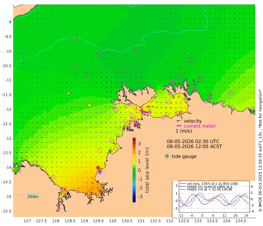 104cm/s 79T +4cm/s rms + 6cm/s 51T. Darwin_C1 52m 78cm/s 92T +4cm/s rms + 7cm/s -161T. Darwin_CW1 22m 50cm/s 70T +4cm/s rms + 8cm/s 61T. Darwin_CW2 34m 63cm/s 48T +3cm/s rms + 9cm/s 98T. Darwin_CW3 22m 79cm/s 90T +5cm/s rms + 7cm/s 88T. Darwin_C3 56m 62cm/s 66T +2cm/s rms + 9cm/s -126T. Darwin_CTbW 22m 3cm/s -10T +9cm/s rms + 2cm/s -110T. NWSLYN 196m 12cm/s -60T +1cm/s rms + 1cm/s -47T. DARBGF 30m 4cm/s -94T +7cm/s rms + 2cm/s -137T. ITFTIS 464m 5cm/s -100T +9cm/s rms + 1cm/s 74T. ITFMHB 146m 13cm/s -50T +4cm/s rms + 1cm/s -134T. ITFJBG 61m 15cm/s -61T +6cm/s rms + 4cm/s 121T. ITFFTB 108m 25cm/s -46T +4cm/s rms + 3cm/s 80T. NRSDAR 19m 69cm Carronade Island 72cm Guy Point 77cm Napier Broome Bay 96cm Lesueur Island 124cm Reveley Island 105cm Rocky Island 184cm Cape Domett 169cm Lacrosse Island 214cm Adolphus Island 220cm Pender Point 236cm Wyndham 34cm The Boxers 14cm Unnamed Shoal 6cm Loxton Shoal 177cm Pelican Island 15cm Calder Shoal -1cm Evans Shoal 263cm Quoin Island 149cm Port Keats 129cm Jones Point 312cm Catfish Island 96cm Cape Scott Offshore 21cm Cape Ford 96cm Anson Bay -6cm Goodrich Bank 77cm Peron Island North 76cm Point Jenny 73cm Native Point 79cm Fish Reef 84cm Tapa Bay 32cm Point Fawcett (Offshore) 89cm Burge Point 62cm Munkunuwa 63cm Beagle A 82cm Parsons Bank 91cm Fenton Patches -3cm Lynedoch Bank 95cm Hancox Shoal Area 103cm Nightcliff 104cm Darwin 91cm Charles Point Patches 105cm Glyde Point 133cm Chambers Bay 132cm Point Stuart 100cm Cape Hotham 125cm Christine Reef 148cm West Alligator Head 161cm East Field Island 105cm Two Hills Bay 62cm Newby Shoal 100cm Camp Point 81cm Medina Inlet South 15cm South Barlow Point 9cm St. Asaph Bay -9cm Cape Van Dieman -7cm Snake Bay 1cm Cache Point 7cm Echo Shoal 12cm Point Jahleel (Off) 44cm Cape Don 8cm Port Essington 10cm Smith Point - West 6cm NW Peacock Island 4cm North Of Jones Shoal 1cm Peacock Island 5cm Point David 6cm D'urville Point 3cm Money Shoal 6cm Copeland Island 14cm Cape Cockburn 11cm One Tree Point 16cm Hogmany Shoal 14cm New Year Island - West 14cm Grant Island 24cm Aurari Bay 39cm Cuthbert Point 24cm North Goulburn Island 44cm Paxie Shoal 48cm Entrance Island 57cm Yabooma Island