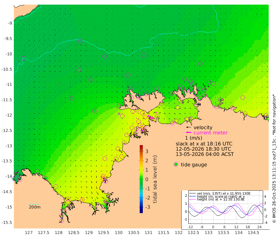 54cm/s 78T +4cm/s rms + 6cm/s 51T. Darwin_C1 52m 34cm/s 92T +4cm/s rms + 7cm/s -161T. Darwin_CW1 22m 42cm/s 73T +4cm/s rms + 8cm/s 61T. Darwin_CW2 34m 36cm/s 39T +3cm/s rms + 9cm/s 98T. Darwin_CW3 22m 61cm/s 89T +5cm/s rms + 7cm/s 88T. Darwin_C3 56m 29cm/s 66T +2cm/s rms + 9cm/s -126T. Darwin_CTbW 22m 4cm/s -10T +9cm/s rms + 2cm/s -110T. NWSLYN 196m 11cm/s 74T +1cm/s rms + 1cm/s -47T. DARBGF 30m 5cm/s -109T +7cm/s rms + 2cm/s -137T. ITFTIS 464m 5cm/s -111T +9cm/s rms + 1cm/s 74T. ITFMHB 146m 8cm/s -153T +4cm/s rms + 1cm/s -134T. ITFJBG 61m 6cm/s -106T +6cm/s rms + 4cm/s 121T. ITFFTB 108m 9cm/s 99T +4cm/s rms + 3cm/s 80T. NRSDAR 19m -40cm Carronade Island -36cm Guy Point -51cm Napier Broome Bay 23cm Lesueur Island 78cm Reveley Island -9cm Rocky Island 117cm Cape Domett 114cm Lacrosse Island 126cm Adolphus Island 84cm Pender Point 82cm Wyndham -16cm The Boxers -5cm Unnamed Shoal -56cm Loxton Shoal 145cm Pelican Island -23cm Calder Shoal -41cm Evans Shoal 154cm Quoin Island 121cm Port Keats 127cm Jones Point 151cm Catfish Island 92cm Cape Scott Offshore 69cm Cape Ford 107cm Anson Bay -27cm Goodrich Bank 81cm Peron Island North 86cm Point Jenny 84cm Native Point 87cm Fish Reef 103cm Tapa Bay 26cm Point Fawcett (Offshore) 101cm Burge Point 81cm Munkunuwa 69cm Beagle A 99cm Parsons Bank 106cm Fenton Patches -34cm Lynedoch Bank 114cm Hancox Shoal Area 121cm Nightcliff 114cm Darwin 101cm Charles Point Patches 93cm Glyde Point 99cm Chambers Bay 86cm Point Stuart 85cm Cape Hotham 83cm Christine Reef 93cm West Alligator Head 93cm East Field Island 69cm Two Hills Bay 18cm Newby Shoal 73cm Camp Point 87cm Medina Inlet South 9cm South Barlow Point -1cm St. Asaph Bay -25cm Cape Van Dieman -25cm Snake Bay -20cm Cache Point -53cm Echo Shoal -6cm Point Jahleel (Off) 24cm Cape Don -3cm Port Essington 0cm Smith Point - West -2cm NW Peacock Island -13cm North Of Jones Shoal -3cm Peacock Island 18cm Point David 3cm D'urville Point -3cm Money Shoal 23cm Copeland Island 23cm Cape Cockburn 12cm One Tree Point 28cm Hogmany Shoal 16cm New Year Island - West 18cm Grant Island 41cm Aurari Bay 48cm Cuthbert Point 33cm North Goulburn Island 58cm Paxie Shoal 78cm Entrance Island 105cm Yabooma Island