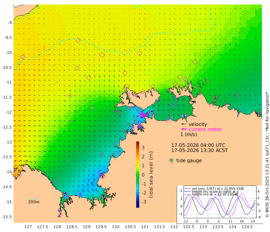 145cm/s -101T +4cm/s rms + 6cm/s 51T. Darwin_C1 52m 126cm/s -91T +4cm/s rms + 7cm/s -161T. Darwin_CW1 22m 70cm/s -107T +4cm/s rms + 8cm/s 61T. Darwin_CW2 34m 78cm/s -135T +3cm/s rms + 9cm/s 98T. Darwin_CW3 22m 121cm/s -91T +5cm/s rms + 7cm/s 88T. Darwin_C3 56m 73cm/s -115T +2cm/s rms + 9cm/s -126T. Darwin_CTbW 22m 11cm/s 146T +9cm/s rms + 2cm/s -110T. NWSLYN 196m 8cm/s 145T +1cm/s rms + 1cm/s -47T. DARBGF 30m 12cm/s 53T +7cm/s rms + 2cm/s -137T. ITFTIS 464m 14cm/s 76T +9cm/s rms + 1cm/s 74T. ITFMHB 146m 15cm/s 72T +4cm/s rms + 1cm/s -134T. ITFJBG 61m 26cm/s 95T +6cm/s rms + 4cm/s 121T. ITFFTB 108m 14cm/s 167T +4cm/s rms + 3cm/s 80T. NRSDAR 19m 124cm Carronade Island 119cm Guy Point 130cm Napier Broome Bay 42cm Lesueur Island -100cm Reveley Island -34cm Rocky Island -178cm Cape Domett -149cm Lacrosse Island -197cm Adolphus Island -160cm Pender Point -140cm Wyndham 83cm The Boxers 72cm Unnamed Shoal 128cm Loxton Shoal -204cm Pelican Island 93cm Calder Shoal 105cm Evans Shoal -259cm Quoin Island -173cm Port Keats -173cm Jones Point -169cm Catfish Island -95cm Cape Scott Offshore -56cm Cape Ford -114cm Anson Bay 92cm Goodrich Bank -83cm Peron Island North -82cm Point Jenny -79cm Native Point -89cm Fish Reef -108cm Tapa Bay 21cm Point Fawcett (Offshore) -125cm Burge Point -110cm Munkunuwa -44cm Beagle A -134cm Parsons Bank -113cm Fenton Patches 95cm Lynedoch Bank -138cm Hancox Shoal Area -142cm Nightcliff -147cm Darwin -109cm Charles Point Patches -113cm Glyde Point -113cm Chambers Bay -114cm Point Stuart -101cm Cape Hotham -103cm Christine Reef -131cm West Alligator Head -127cm East Field Island -82cm Two Hills Bay 30cm Newby Shoal -79cm Camp Point -103cm Medina Inlet South 30cm South Barlow Point 57cm St. Asaph Bay 90cm Cape Van Dieman 87cm Snake Bay 88cm Cache Point 143cm Echo Shoal 59cm Point Jahleel (Off) 1cm Cape Don 51cm Port Essington 50cm Smith Point - West 53cm NW Peacock Island 71cm North Of Jones Shoal 23cm Peacock Island 21cm Point David 46cm D'urville Point 56cm Money Shoal 14cm Copeland Island 22cm Cape Cockburn 27cm One Tree Point 21cm Hogmany Shoal 30cm New Year Island - West 20cm Grant Island -10cm Aurari Bay -30cm Cuthbert Point -4cm North Goulburn Island -50cm Paxie Shoal -71cm Entrance Island -109cm Yabooma Island