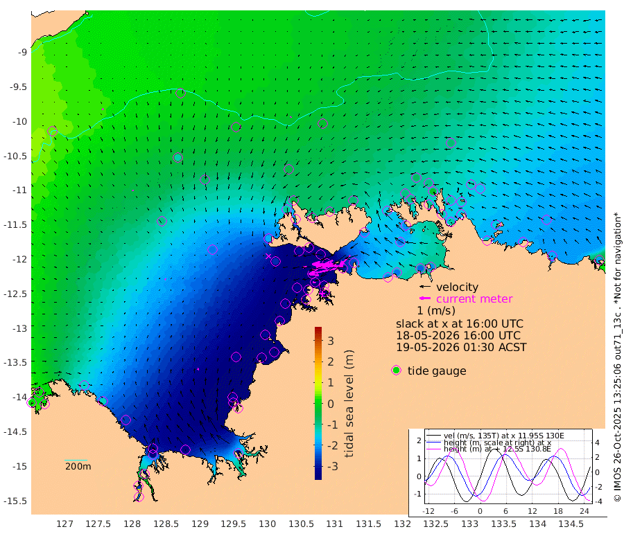 282cm/s -102T +4cm/s rms + 6cm/s 51T. Darwin_C1 52m 228cm/s -90T +4cm/s rms + 7cm/s -161T. Darwin_CW1 22m 145cm/s -106T +4cm/s rms + 8cm/s 61T. Darwin_CW2 34m 134cm/s -134T +3cm/s rms + 9cm/s 98T. Darwin_CW3 22m 226cm/s -90T +5cm/s rms + 7cm/s 88T. Darwin_C3 56m 159cm/s -115T +2cm/s rms + 9cm/s -126T. Darwin_CTbW 22m 7cm/s -126T +9cm/s rms + 2cm/s -110T. NWSLYN 196m 44cm/s -102T +1cm/s rms + 1cm/s -47T. DARBGF 30m 12cm/s 146T +7cm/s rms + 2cm/s -137T. ITFTIS 464m 9cm/s 141T +9cm/s rms + 1cm/s 74T. ITFMHB 146m 16cm/s 23T +4cm/s rms + 1cm/s -134T. ITFJBG 61m 10cm/s 105T +6cm/s rms + 4cm/s 121T. ITFFTB 108m 28cm/s -84T +4cm/s rms + 3cm/s 80T. NRSDAR 19m 17cm Carronade Island 16cm Guy Point 14cm Napier Broome Bay -138cm Lesueur Island -262cm Reveley Island -126cm Rocky Island -366cm Cape Domett -334cm Lacrosse Island -361cm Adolphus Island -264cm Pender Point -236cm Wyndham -97cm The Boxers -121cm Unnamed Shoal 1cm Loxton Shoal -392cm Pelican Island -70cm Calder Shoal -18cm Evans Shoal -407cm Quoin Island -404cm Port Keats -383cm Jones Point -306cm Catfish Island -304cm Cape Scott Offshore -374cm Cape Ford -339cm Anson Bay -50cm Goodrich Bank -311cm Peron Island North -310cm Point Jenny -308cm Native Point -325cm Fish Reef -345cm Tapa Bay -182cm Point Fawcett (Offshore) -373cm Burge Point -315cm Munkunuwa -275cm Beagle A -361cm Parsons Bank -355cm Fenton Patches -32cm Lynedoch Bank -355cm Hancox Shoal Area -368cm Nightcliff -400cm Darwin -371cm Charles Point Patches -295cm Glyde Point -223cm Chambers Bay -218cm Point Stuart -252cm Cape Hotham -217cm Christine Reef -227cm West Alligator Head -204cm East Field Island -209cm Two Hills Bay -215cm Newby Shoal -211cm Camp Point -339cm Medina Inlet South -158cm South Barlow Point -112cm St. Asaph Bay -56cm Cape Van Dieman -68cm Snake Bay -65cm Cache Point 42cm Echo Shoal -86cm Point Jahleel (Off) -154cm Cape Don -101cm Port Essington -100cm Smith Point - West -96cm NW Peacock Island -70cm North Of Jones Shoal -27cm Peacock Island -122cm Point David -105cm D'urville Point -89cm Money Shoal -122cm Copeland Island -164cm Cape Cockburn -120cm One Tree Point -159cm Hogmany Shoal -124cm New Year Island - West -133cm Grant Island -144cm Aurari Bay -173cm Cuthbert Point -151cm North Goulburn Island -180cm Paxie Shoal -191cm Entrance Island -202cm Yabooma Island