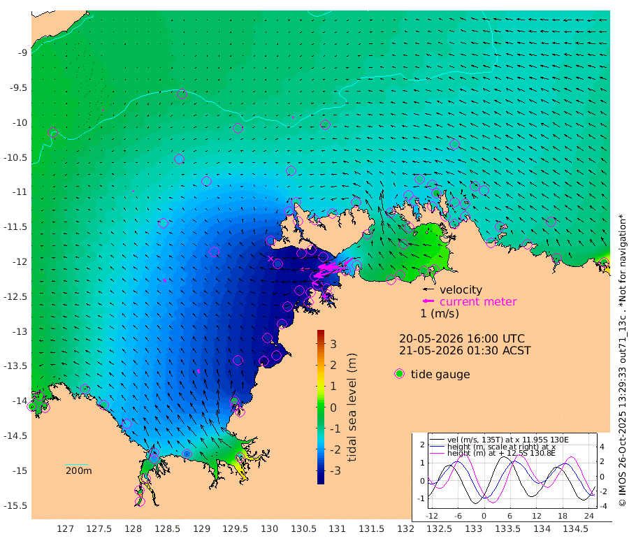 257cm/s -102T +4cm/s rms + 6cm/s 51T. Darwin_C1 52m 185cm/s -89T +4cm/s rms + 7cm/s -161T. Darwin_CW1 22m 143cm/s -108T +4cm/s rms + 8cm/s 61T. Darwin_CW2 34m 102cm/s -127T +3cm/s rms + 9cm/s 98T. Darwin_CW3 22m 192cm/s -91T +5cm/s rms + 7cm/s 88T. Darwin_C3 56m 148cm/s -115T +2cm/s rms + 9cm/s -126T. Darwin_CTbW 22m 11cm/s -59T +9cm/s rms + 2cm/s -110T. NWSLYN 196m 81cm/s -94T +1cm/s rms + 1cm/s -47T. DARBGF 30m 10cm/s -162T +7cm/s rms + 2cm/s -137T. ITFTIS 464m 10cm/s -23T +9cm/s rms + 1cm/s 74T. ITFMHB 146m 37cm/s -20T +4cm/s rms + 1cm/s -134T. ITFJBG 61m 29cm/s -48T +6cm/s rms + 4cm/s 121T. ITFFTB 108m 62cm/s -65T +4cm/s rms + 3cm/s 80T. NRSDAR 19m 15cm Carronade Island 16cm Guy Point 7cm Napier Broome Bay -93cm Lesueur Island -165cm Reveley Island -100cm Rocky Island -201cm Cape Domett -189cm Lacrosse Island -149cm Adolphus Island -44cm Pender Point 5cm Wyndham -141cm The Boxers -159cm Unnamed Shoal -77cm Loxton Shoal -223cm Pelican Island -135cm Calder Shoal -91cm Evans Shoal -147cm Quoin Island -284cm Port Keats -261cm Jones Point -67cm Catfish Island -266cm Cape Scott Offshore -367cm Cape Ford -296cm Anson Bay -113cm Goodrich Bank -284cm Peron Island North -286cm Point Jenny -286cm Native Point -297cm Fish Reef -305cm Tapa Bay -226cm Point Fawcett (Offshore) -315cm Burge Point -300cm Munkunuwa -265cm Beagle A -302cm Parsons Bank -296cm Fenton Patches -89cm Lynedoch Bank -279cm Hancox Shoal Area -300cm Nightcliff -323cm Darwin -321cm Charles Point Patches -196cm Glyde Point -78cm Chambers Bay -62cm Point Stuart -145cm Cape Hotham -84cm Christine Reef -52cm West Alligator Head -4cm East Field Island -101cm Two Hills Bay -227cm Newby Shoal -102cm Camp Point -309cm Medina Inlet South -208cm South Barlow Point -174cm St. Asaph Bay -122cm Cape Van Dieman -132cm Snake Bay -121cm Cache Point -34cm Echo Shoal -120cm Point Jahleel (Off) -139cm Cape Don -126cm Port Essington -126cm Smith Point - West -116cm NW Peacock Island -112cm North Of Jones Shoal -40cm Peacock Island -108cm Point David -123cm D'urville Point -103cm Money Shoal -102cm Copeland Island -141cm Cape Cockburn -114cm One Tree Point -126cm Hogmany Shoal -109cm New Year Island - West -113cm Grant Island -96cm Aurari Bay -98cm Cuthbert Point -109cm North Goulburn Island -92cm Paxie Shoal -72cm Entrance Island -42cm Yabooma Island
