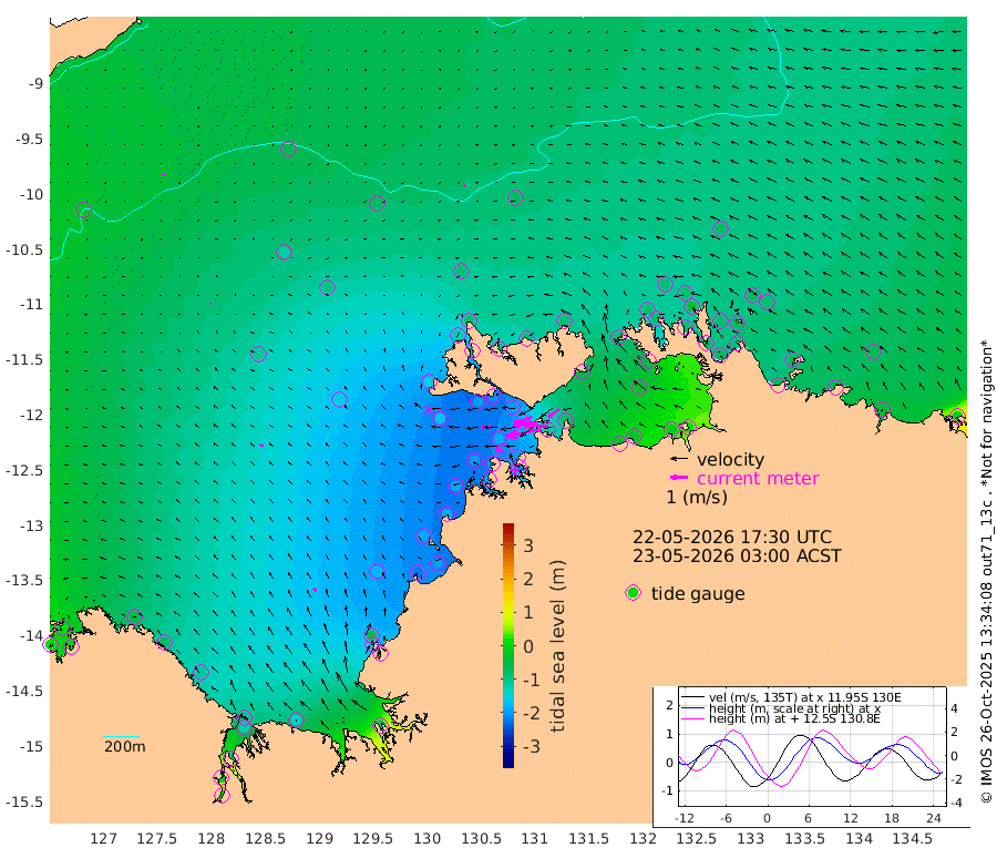 205cm/s -102T +4cm/s rms + 6cm/s 51T. Darwin_C1 52m 139cm/s -89T +4cm/s rms + 7cm/s -161T. Darwin_CW1 22m 102cm/s -108T +4cm/s rms + 8cm/s 61T. Darwin_CW2 34m 82cm/s -126T +3cm/s rms + 9cm/s 98T. Darwin_CW3 22m 137cm/s -91T +5cm/s rms + 7cm/s 88T. Darwin_C3 56m 116cm/s -115T +2cm/s rms + 9cm/s -126T. Darwin_CTbW 22m 10cm/s -48T +9cm/s rms + 2cm/s -110T. NWSLYN 196m 59cm/s -93T +1cm/s rms + 1cm/s -47T. DARBGF 30m 7cm/s -155T +7cm/s rms + 2cm/s -137T. ITFTIS 464m 7cm/s -23T +9cm/s rms + 1cm/s 74T. ITFMHB 146m 26cm/s -22T +4cm/s rms + 1cm/s -134T. ITFJBG 61m 21cm/s -48T +6cm/s rms + 4cm/s 121T. ITFFTB 108m 45cm/s -66T +4cm/s rms + 3cm/s 80T. NRSDAR 19m 16cm Carronade Island 17cm Guy Point 5cm Napier Broome Bay -55cm Lesueur Island -102cm Reveley Island -77cm Rocky Island -122cm Cape Domett -112cm Lacrosse Island -80cm Adolphus Island -16cm Pender Point 22cm Wyndham -102cm The Boxers -120cm Unnamed Shoal -64cm Loxton Shoal -135cm Pelican Island -97cm Calder Shoal -70cm Evans Shoal -85cm Quoin Island -182cm Port Keats -164cm Jones Point -38cm Catfish Island -178cm Cape Scott Offshore -221cm Cape Ford -198cm Anson Bay -83cm Goodrich Bank -189cm Peron Island North -185cm Point Jenny -187cm Native Point -193cm Fish Reef -199cm Tapa Bay -156cm Point Fawcett (Offshore) -200cm Burge Point -202cm Munkunuwa -168cm Beagle A -199cm Parsons Bank -184cm Fenton Patches -69cm Lynedoch Bank -179cm Hancox Shoal Area -192cm Nightcliff -211cm Darwin -210cm Charles Point Patches -121cm Glyde Point -35cm Chambers Bay -25cm Point Stuart -85cm Cape Hotham -38cm Christine Reef -17cm West Alligator Head 20cm East Field Island -59cm Two Hills Bay -149cm Newby Shoal -55cm Camp Point -207cm Medina Inlet South -146cm South Barlow Point -123cm St. Asaph Bay -90cm Cape Van Dieman -100cm Snake Bay -87cm Cache Point -29cm Echo Shoal -85cm Point Jahleel (Off) -94cm Cape Don -90cm Port Essington -88cm Smith Point - West -81cm NW Peacock Island -82cm North Of Jones Shoal -29cm Peacock Island -75cm Point David -86cm D'urville Point -71cm Money Shoal -70cm Copeland Island -95cm Cape Cockburn -81cm One Tree Point -84cm Hogmany Shoal -76cm New Year Island - West -78cm Grant Island -63cm Aurari Bay -61cm Cuthbert Point -73cm North Goulburn Island -59cm Paxie Shoal -34cm Entrance Island -5cm Yabooma Island