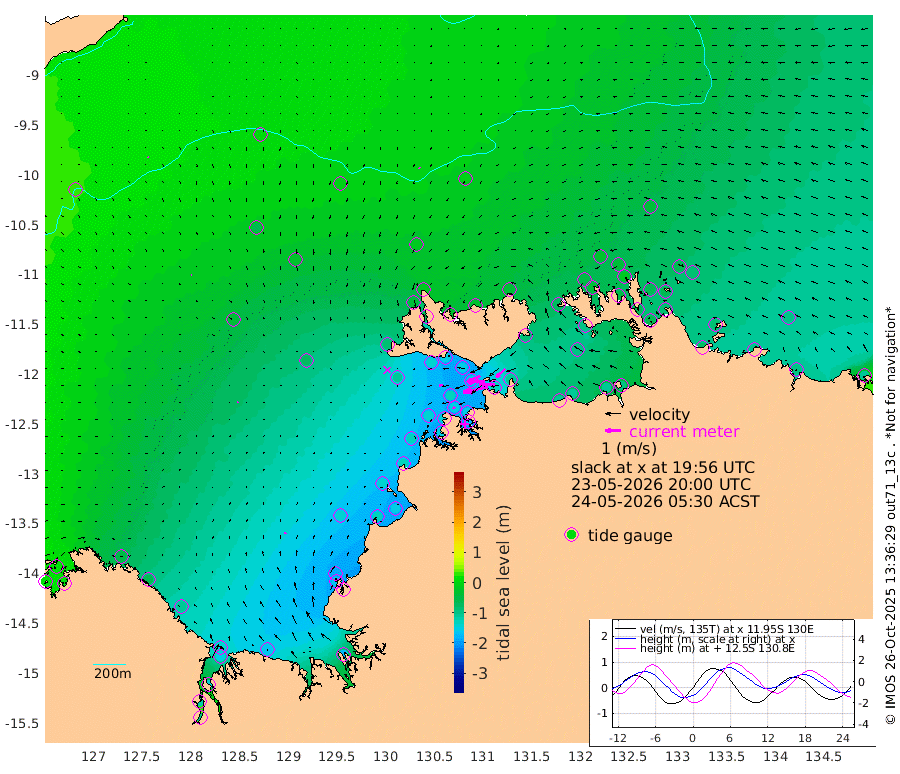164cm/s -101T +4cm/s rms + 6cm/s 51T. Darwin_C1 52m 103cm/s -90T +4cm/s rms + 7cm/s -161T. Darwin_CW1 22m 69cm/s -106T +4cm/s rms + 8cm/s 61T. Darwin_CW2 34m 78cm/s -133T +3cm/s rms + 9cm/s 98T. Darwin_CW3 22m 106cm/s -91T +5cm/s rms + 7cm/s 88T. Darwin_C3 56m 96cm/s -115T +2cm/s rms + 9cm/s -126T. Darwin_CTbW 22m 6cm/s -53T +9cm/s rms + 2cm/s -110T. NWSLYN 196m 23cm/s -99T +1cm/s rms + 1cm/s -47T. DARBGF 30m 5cm/s 146T +7cm/s rms + 2cm/s -137T. ITFTIS 464m 4cm/s 117T +9cm/s rms + 1cm/s 74T. ITFMHB 146m 9cm/s 13T +4cm/s rms + 1cm/s -134T. ITFJBG 61m 4cm/s 70T +6cm/s rms + 4cm/s 121T. ITFFTB 108m 17cm/s -81T +4cm/s rms + 3cm/s 80T. NRSDAR 19m 14cm Carronade Island 16cm Guy Point 4cm Napier Broome Bay -47cm Lesueur Island -105cm Reveley Island -59cm Rocky Island -155cm Cape Domett -138cm Lacrosse Island -139cm Adolphus Island -116cm Pender Point -99cm Wyndham -40cm The Boxers -62cm Unnamed Shoal 7cm Loxton Shoal -168cm Pelican Island -23cm Calder Shoal -5cm Evans Shoal -174cm Quoin Island -171cm Port Keats -166cm Jones Point -188cm Catfish Island -135cm Cape Scott Offshore -126cm Cape Ford -152cm Anson Bay -16cm Goodrich Bank -137cm Peron Island North -129cm Point Jenny -128cm Native Point -139cm Fish Reef -146cm Tapa Bay -81cm Point Fawcett (Offshore) -151cm Burge Point -137cm Munkunuwa -102cm Beagle A -156cm Parsons Bank -135cm Fenton Patches -11cm Lynedoch Bank -149cm Hancox Shoal Area -150cm Nightcliff -170cm Darwin -155cm Charles Point Patches -127cm Glyde Point -103cm Chambers Bay -105cm Point Stuart -112cm Cape Hotham -91cm Christine Reef -110cm West Alligator Head -94cm East Field Island -101cm Two Hills Bay -76cm Newby Shoal -89cm Camp Point -147cm Medina Inlet South -65cm South Barlow Point -43cm St. Asaph Bay -21cm Cape Van Dieman -29cm Snake Bay -25cm Cache Point 31cm Echo Shoal -36cm Point Jahleel (Off) -73cm Cape Don -48cm Port Essington -44cm Smith Point - West -43cm NW Peacock Island -33cm North Of Jones Shoal -13cm Peacock Island -63cm Point David -48cm D'urville Point -40cm Money Shoal -63cm Copeland Island -83cm Cape Cockburn -63cm One Tree Point -81cm Hogmany Shoal -61cm New Year Island - West -67cm Grant Island -74cm Aurari Bay -90cm Cuthbert Point -82cm North Goulburn Island -101cm Paxie Shoal -98cm Entrance Island -103cm Yabooma Island
