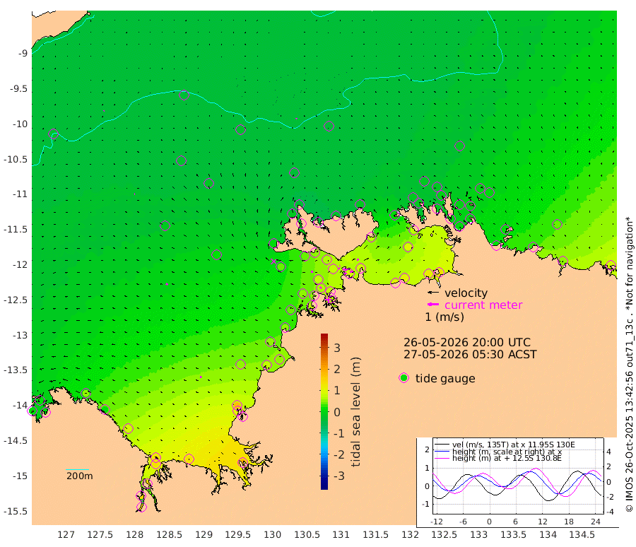 14cm/s 85T +4cm/s rms + 6cm/s 51T. Darwin_C1 52m 27cm/s 91T +4cm/s rms + 7cm/s -161T. Darwin_CW1 22m 14cm/s 71T +4cm/s rms + 8cm/s 61T. Darwin_CW2 34m 20cm/s 30T +3cm/s rms + 9cm/s 98T. Darwin_CW3 22m 31cm/s 91T +5cm/s rms + 7cm/s 88T. Darwin_C3 56m 3cm/s 72T +2cm/s rms + 9cm/s -126T. Darwin_CTbW 22m 7cm/s -15T +9cm/s rms + 2cm/s -110T. NWSLYN 196m 17cm/s -75T +1cm/s rms + 1cm/s -47T. DARBGF 30m 5cm/s -107T +7cm/s rms + 2cm/s -137T. ITFTIS 464m 5cm/s -74T +9cm/s rms + 1cm/s 74T. ITFMHB 146m 13cm/s -55T +4cm/s rms + 1cm/s -134T. ITFJBG 61m 17cm/s -60T +6cm/s rms + 4cm/s 121T. ITFFTB 108m 22cm/s -56T +4cm/s rms + 3cm/s 80T. NRSDAR 19m 17cm Carronade Island 21cm Guy Point 8cm Napier Broome Bay 47cm Lesueur Island 89cm Reveley Island 14cm Rocky Island 132cm Cape Domett 126cm Lacrosse Island 154cm Adolphus Island 153cm Pender Point 165cm Wyndham -19cm The Boxers -30cm Unnamed Shoal -39cm Loxton Shoal 131cm Pelican Island -22cm Calder Shoal -32cm Evans Shoal 189cm Quoin Island 100cm Port Keats 104cm Jones Point 170cm Catfish Island 53cm Cape Scott Offshore 75cm Cape Ford 53cm Anson Bay -34cm Goodrich Bank 50cm Peron Island North 45cm Point Jenny 41cm Native Point 53cm Fish Reef 53cm Tapa Bay 0cm Point Fawcett (Offshore) 72cm Burge Point 41cm Munkunuwa 37cm Beagle A 61cm Parsons Bank 68cm Fenton Patches -35cm Lynedoch Bank 70cm Hancox Shoal Area 71cm Nightcliff 74cm Darwin 59cm Charles Point Patches 79cm Glyde Point 103cm Chambers Bay 110cm Point Stuart 85cm Cape Hotham 95cm Christine Reef 123cm West Alligator Head 137cm East Field Island 79cm Two Hills Bay 13cm Newby Shoal 77cm Camp Point 48cm Medina Inlet South -16cm South Barlow Point -20cm St. Asaph Bay -35cm Cape Van Dieman -38cm Snake Bay -26cm Cache Point -31cm Echo Shoal -14cm Point Jahleel (Off) 15cm Cape Don -15cm Port Essington -15cm Smith Point - West -16cm NW Peacock Island -21cm North Of Jones Shoal -7cm Peacock Island -4cm Point David -16cm D'urville Point -14cm Money Shoal 0cm Copeland Island 6cm Cape Cockburn -4cm One Tree Point 8cm Hogmany Shoal -4cm New Year Island - West -1cm Grant Island 12cm Aurari Bay 27cm Cuthbert Point 11cm North Goulburn Island 38cm Paxie Shoal 55cm Entrance Island 85cm Yabooma Island