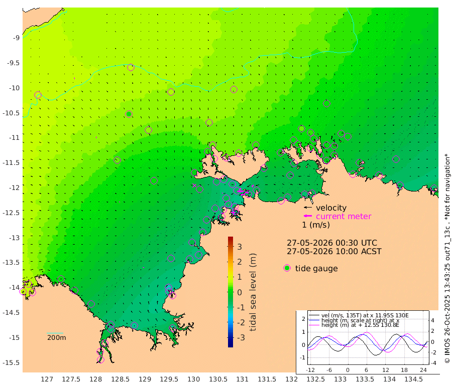 57cm/s -102T +4cm/s rms + 6cm/s 51T. Darwin_C1 52m 43cm/s -88T +4cm/s rms + 7cm/s -161T. Darwin_CW1 22m 39cm/s -107T +4cm/s rms + 8cm/s 61T. Darwin_CW2 34m 32cm/s -135T +3cm/s rms + 9cm/s 98T. Darwin_CW3 22m 62cm/s -91T +5cm/s rms + 7cm/s 88T. Darwin_C3 56m 29cm/s -115T +2cm/s rms + 9cm/s -126T. Darwin_CTbW 22m 1cm/s 163T +9cm/s rms + 2cm/s -110T. NWSLYN 196m 6cm/s -115T +1cm/s rms + 1cm/s -47T. DARBGF 30m 4cm/s 77T +7cm/s rms + 2cm/s -137T. ITFTIS 464m 6cm/s 97T +9cm/s rms + 1cm/s 74T. ITFMHB 146m 6cm/s 38T +4cm/s rms + 1cm/s -134T. ITFJBG 61m 9cm/s 88T +6cm/s rms + 4cm/s 121T. ITFFTB 108m 4cm/s -115T +4cm/s rms + 3cm/s 80T. NRSDAR 19m 72cm Carronade Island 73cm Guy Point 71cm Napier Broome Bay 22cm Lesueur Island -46cm Reveley Island 0cm Rocky Island -88cm Cape Domett -76cm Lacrosse Island -77cm Adolphus Island -70cm Pender Point -57cm Wyndham 39cm The Boxers 18cm Unnamed Shoal 77cm Loxton Shoal -109cm Pelican Island 50cm Calder Shoal 59cm Evans Shoal -117cm Quoin Island -87cm Port Keats -109cm Jones Point -125cm Catfish Island -60cm Cape Scott Offshore -62cm Cape Ford -73cm Anson Bay 48cm Goodrich Bank -56cm Peron Island North -54cm Point Jenny -52cm Native Point -63cm Fish Reef -69cm Tapa Bay -3cm Point Fawcett (Offshore) -73cm Burge Point -67cm Munkunuwa -29cm Beagle A -78cm Parsons Bank -64cm Fenton Patches 52cm Lynedoch Bank -77cm Hancox Shoal Area -74cm Nightcliff -86cm Darwin -69cm Charles Point Patches -70cm Glyde Point -70cm Chambers Bay -75cm Point Stuart -65cm Cape Hotham -52cm Christine Reef -83cm West Alligator Head -78cm East Field Island -54cm Two Hills Bay 21cm Newby Shoal -49cm Camp Point -64cm Medina Inlet South 14cm South Barlow Point 27cm St. Asaph Bay 44cm Cape Van Dieman 44cm Snake Bay 42cm Cache Point 85cm Echo Shoal 28cm Point Jahleel (Off) -8cm Cape Don 18cm Port Essington 22cm Smith Point - West 23cm NW Peacock Island 35cm North Of Jones Shoal 10cm Peacock Island -3cm Point David 19cm D'urville Point 22cm Money Shoal -7cm Copeland Island -4cm Cape Cockburn 2cm One Tree Point -10cm Hogmany Shoal 4cm New Year Island - West -1cm Grant Island -21cm Aurari Bay -34cm Cuthbert Point -19cm North Goulburn Island -51cm Paxie Shoal -61cm Entrance Island -85cm Yabooma Island