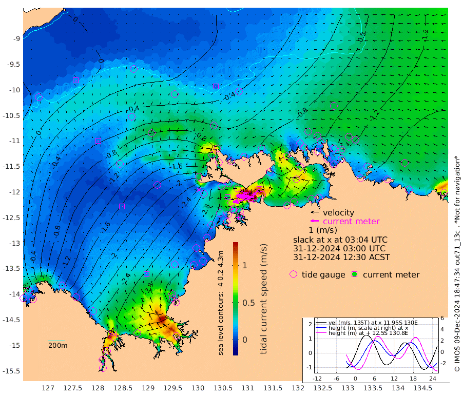 226cm/s -102T +4cm/s rms + 6cm/s 51T. Darwin_C1 52m 172cm/s -90T +4cm/s rms + 7cm/s -161T. Darwin_CW1 22m 109cm/s -107T +4cm/s rms + 8cm/s 61T. Darwin_CW2 34m 110cm/s -134T +3cm/s rms + 9cm/s 98T. Darwin_CW3 22m 161cm/s -90T +5cm/s rms + 7cm/s 88T. Darwin_C3 56m 131cm/s -115T +2cm/s rms + 9cm/s -126T. Darwin_CTbW 22m 6cm/s -109T +9cm/s rms + 2cm/s -110T. NWSLYN 196m 38cm/s -100T +1cm/s rms + 1cm/s -47T. DARBGF 30m 11cm/s 165T +7cm/s rms + 2cm/s -137T. ITFTIS 464m 9cm/s 170T +9cm/s rms + 1cm/s 74T. ITFMHB 146m 11cm/s 9T +4cm/s rms + 1cm/s -134T. ITFJBG 61m 4cm/s 132T +6cm/s rms + 4cm/s 121T. ITFFTB 108m 25cm/s -78T +4cm/s rms + 3cm/s 80T. NRSDAR 19m -8cm Carronade Island -9cm Guy Point -12cm Napier Broome Bay -132cm Lesueur Island -213cm Reveley Island -95cm Rocky Island -289cm Cape Domett -271cm Lacrosse Island -284cm Adolphus Island -211cm Pender Point -192cm Wyndham -93cm The Boxers -118cm Unnamed Shoal -13cm Loxton Shoal -310cm Pelican Island -69cm Calder Shoal -21cm Evans Shoal -320cm Quoin Island -320cm Port Keats -301cm Jones Point -255cm Catfish Island -249cm Cape Scott Offshore -270cm Cape Ford -278cm Anson Bay -49cm Goodrich Bank -242cm Peron Island North -249cm Point Jenny -249cm Native Point -254cm Fish Reef -279cm Tapa Bay -149cm Point Fawcett (Offshore) -290cm Burge Point -244cm Munkunuwa -223cm Beagle A -277cm Parsons Bank -284cm Fenton Patches -35cm Lynedoch Bank -281cm Hancox Shoal Area -298cm Nightcliff -313cm Darwin -295cm Charles Point Patches -232cm Glyde Point -176cm Chambers Bay -164cm Point Stuart -194cm Cape Hotham -170cm Christine Reef -170cm West Alligator Head -155cm East Field Island -159cm Two Hills Bay -179cm Newby Shoal -172cm Camp Point -267cm Medina Inlet South -130cm South Barlow Point -97cm St. Asaph Bay -53cm Cape Van Dieman -64cm Snake Bay -58cm Cache Point 14cm Echo Shoal -73cm Point Jahleel (Off) -120cm Cape Don -79cm Port Essington -79cm Smith Point - West -76cm NW Peacock Island -58cm North Of Jones Shoal -22cm Peacock Island -95cm Point David -82cm D'urville Point -72cm Money Shoal -94cm Copeland Island -120cm Cape Cockburn -92cm One Tree Point -121cm Hogmany Shoal -101cm New Year Island - West -103cm Grant Island -113cm Aurari Bay -127cm Cuthbert Point -113cm North Goulburn Island -139cm Paxie Shoal -140cm Entrance Island -143cm Yabooma Island
