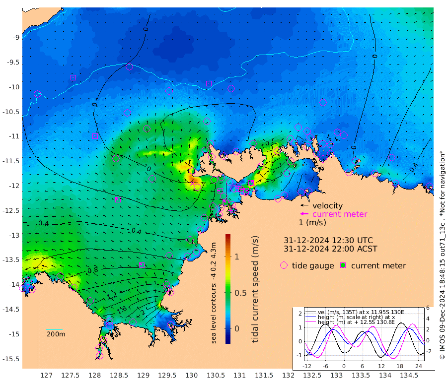 18cm/s 81T +4cm/s rms + 6cm/s 51T. Darwin_C1 52m 43cm/s 88T +4cm/s rms + 7cm/s -161T. Darwin_CW1 22m 15cm/s 77T +4cm/s rms + 8cm/s 61T. Darwin_CW2 34m 37cm/s 36T +3cm/s rms + 9cm/s 98T. Darwin_CW3 22m 50cm/s 93T +5cm/s rms + 7cm/s 88T. Darwin_C3 56m 7cm/s 81T +2cm/s rms + 9cm/s -126T. Darwin_CTbW 22m 5cm/s 11T +9cm/s rms + 2cm/s -110T. NWSLYN 196m 38cm/s -80T +1cm/s rms + 1cm/s -47T. DARBGF 30m 6cm/s -51T +7cm/s rms + 2cm/s -137T. ITFTIS 464m 13cm/s -24T +9cm/s rms + 1cm/s 74T. ITFMHB 146m 36cm/s -34T +4cm/s rms + 1cm/s -134T. ITFJBG 61m 36cm/s -48T +6cm/s rms + 4cm/s 121T. ITFFTB 108m 49cm/s -52T +4cm/s rms + 3cm/s 80T. NRSDAR 19m 112cm Carronade Island 119cm Guy Point 120cm Napier Broome Bay 130cm Lesueur Island 143cm Reveley Island 100cm Rocky Island 216cm Cape Domett 196cm Lacrosse Island 269cm Adolphus Island 315cm Pender Point 343cm Wyndham 33cm The Boxers -2cm Unnamed Shoal 22cm Loxton Shoal 195cm Pelican Island 14cm Calder Shoal 4cm Evans Shoal 335cm Quoin Island 140cm Port Keats 126cm Jones Point 357cm Catfish Island 68cm Cape Scott Offshore 17cm Cape Ford 58cm Anson Bay -9cm Goodrich Bank 47cm Peron Island North 32cm Point Jenny 30cm Native Point 40cm Fish Reef 44cm Tapa Bay 4cm Point Fawcett (Offshore) 55cm Burge Point 18cm Munkunuwa 24cm Beagle A 44cm Parsons Bank 53cm Fenton Patches 1cm Lynedoch Bank 63cm Hancox Shoal Area 60cm Nightcliff 77cm Darwin 66cm Charles Point Patches 100cm Glyde Point 154cm Chambers Bay 159cm Point Stuart 105cm Cape Hotham 138cm Christine Reef 180cm West Alligator Head 210cm East Field Island 116cm Two Hills Bay 39cm Newby Shoal 118cm Camp Point 44cm Medina Inlet South -11cm South Barlow Point -10cm St. Asaph Bay -16cm Cape Van Dieman -15cm Snake Bay -5cm Cache Point 32cm Echo Shoal 5cm Point Jahleel (Off) 36cm Cape Don 2cm Port Essington -3cm Smith Point - West -3cm NW Peacock Island -1cm North Of Jones Shoal -1cm Peacock Island -2cm Point David -8cm D'urville Point 2cm Money Shoal -1cm Copeland Island 5cm Cape Cockburn 5cm One Tree Point 15cm Hogmany Shoal 9cm New Year Island - West 7cm Grant Island 13cm Aurari Bay 32cm Cuthbert Point 17cm North Goulburn Island 47cm Paxie Shoal 51cm Entrance Island 68cm Yabooma Island