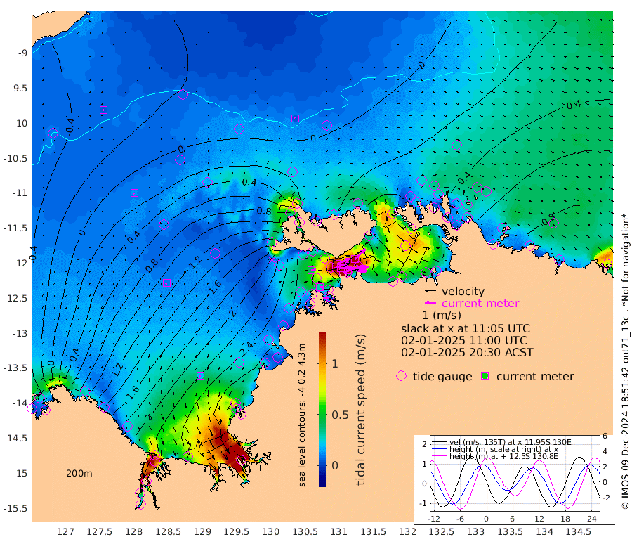 244cm/s 78T +4cm/s rms + 6cm/s 51T. Darwin_C1 52m 178cm/s 93T +4cm/s rms + 7cm/s -161T. Darwin_CW1 22m 134cm/s 72T +4cm/s rms + 8cm/s 61T. Darwin_CW2 34m 136cm/s 46T +3cm/s rms + 9cm/s 98T. Darwin_CW3 22m 203cm/s 89T +5cm/s rms + 7cm/s 88T. Darwin_C3 56m 122cm/s 66T +2cm/s rms + 9cm/s -126T. Darwin_CTbW 22m 6cm/s -1T +9cm/s rms + 2cm/s -110T. NWSLYN 196m 41cm/s 77T +1cm/s rms + 1cm/s -47T. DARBGF 30m 4cm/s -86T +7cm/s rms + 2cm/s -137T. ITFTIS 464m 11cm/s -148T +9cm/s rms + 1cm/s 74T. ITFMHB 146m 19cm/s -156T +4cm/s rms + 1cm/s -134T. ITFJBG 61m 10cm/s -137T +6cm/s rms + 4cm/s 121T. ITFFTB 108m 31cm/s 101T +4cm/s rms + 3cm/s 80T. NRSDAR 19m -24cm Carronade Island -20cm Guy Point -21cm Napier Broome Bay 87cm Lesueur Island 209cm Reveley Island 137cm Rocky Island 296cm Cape Domett 269cm Lacrosse Island 297cm Adolphus Island 215cm Pender Point 184cm Wyndham 58cm The Boxers 54cm Unnamed Shoal -12cm Loxton Shoal 311cm Pelican Island 45cm Calder Shoal -2cm Evans Shoal 331cm Quoin Island 325cm Port Keats 294cm Jones Point 226cm Catfish Island 240cm Cape Scott Offshore 253cm Cape Ford 265cm Anson Bay 15cm Goodrich Bank 233cm Peron Island North 243cm Point Jenny 241cm Native Point 249cm Fish Reef 268cm Tapa Bay 129cm Point Fawcett (Offshore) 291cm Burge Point 256cm Munkunuwa 215cm Beagle A 275cm Parsons Bank 280cm Fenton Patches 1cm Lynedoch Bank 271cm Hancox Shoal Area 298cm Nightcliff 302cm Darwin 274cm Charles Point Patches 213cm Glyde Point 163cm Chambers Bay 144cm Point Stuart 173cm Cape Hotham 161cm Christine Reef 155cm West Alligator Head 134cm East Field Island 137cm Two Hills Bay 157cm Newby Shoal 141cm Camp Point 263cm Medina Inlet South 110cm South Barlow Point 76cm St. Asaph Bay 18cm Cape Van Dieman 25cm Snake Bay 22cm Cache Point -39cm Echo Shoal 41cm Point Jahleel (Off) 89cm Cape Don 38cm Port Essington 42cm Smith Point - West 32cm NW Peacock Island 20cm North Of Jones Shoal 7cm Peacock Island 33cm Point David 37cm D'urville Point 19cm Money Shoal 34cm Copeland Island 51cm Cape Cockburn 37cm One Tree Point 39cm Hogmany Shoal 37cm New Year Island - West 41cm Grant Island 49cm Aurari Bay 62cm Cuthbert Point 53cm North Goulburn Island 67cm Paxie Shoal 76cm Entrance Island 75cm Yabooma Island