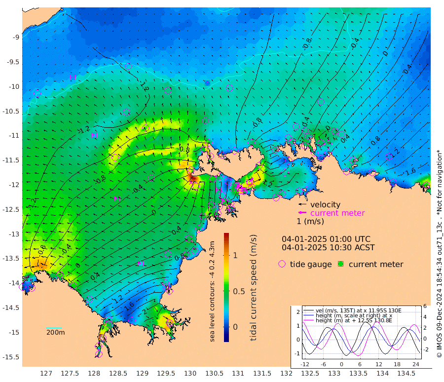 88cm/s 80T +4cm/s rms + 6cm/s 51T. Darwin_C1 52m 54cm/s 93T +4cm/s rms + 7cm/s -161T. Darwin_CW1 22m 42cm/s 67T +4cm/s rms + 8cm/s 61T. Darwin_CW2 34m 70cm/s 43T +3cm/s rms + 9cm/s 98T. Darwin_CW3 22m 71cm/s 89T +5cm/s rms + 7cm/s 88T. Darwin_C3 56m 38cm/s 65T +2cm/s rms + 9cm/s -126T. Darwin_CTbW 22m 9cm/s -23T +9cm/s rms + 2cm/s -110T. NWSLYN 196m 38cm/s -81T +1cm/s rms + 1cm/s -47T. DARBGF 30m 14cm/s -106T +7cm/s rms + 2cm/s -137T. ITFTIS 464m 20cm/s -51T +9cm/s rms + 1cm/s 74T. ITFMHB 146m 25cm/s -58T +4cm/s rms + 1cm/s -134T. ITFJBG 61m 41cm/s -63T +6cm/s rms + 4cm/s 121T. ITFFTB 108m 52cm/s -51T +4cm/s rms + 3cm/s 80T. NRSDAR 19m -88cm Carronade Island -84cm Guy Point -99cm Napier Broome Bay -10cm Lesueur Island 86cm Reveley Island -12cm Rocky Island 170cm Cape Domett 143cm Lacrosse Island 218cm Adolphus Island 201cm Pender Point 208cm Wyndham -89cm The Boxers -67cm Unnamed Shoal -131cm Loxton Shoal 198cm Pelican Island -110cm Calder Shoal -110cm Evans Shoal 286cm Quoin Island 140cm Port Keats 146cm Jones Point 255cm Catfish Island 53cm Cape Scott Offshore -20cm Cape Ford 67cm Anson Bay -94cm Goodrich Bank 40cm Peron Island North 27cm Point Jenny 24cm Native Point 34cm Fish Reef 56cm Tapa Bay -58cm Point Fawcett (Offshore) 63cm Burge Point 34cm Munkunuwa -6cm Beagle A 85cm Parsons Bank 59cm Fenton Patches -89cm Lynedoch Bank 103cm Hancox Shoal Area 90cm Nightcliff 102cm Darwin 67cm Charles Point Patches 109cm Glyde Point 153cm Chambers Bay 161cm Point Stuart 117cm Cape Hotham 131cm Christine Reef 180cm West Alligator Head 194cm East Field Island 113cm Two Hills Bay -60cm Newby Shoal 108cm Camp Point 44cm Medina Inlet South -64cm South Barlow Point -84cm St. Asaph Bay -94cm Cape Van Dieman -88cm Snake Bay -86cm Cache Point -136cm Echo Shoal -54cm Point Jahleel (Off) 9cm Cape Don -35cm Port Essington -35cm Smith Point - West -29cm NW Peacock Island -57cm North Of Jones Shoal -16cm Peacock Island 26cm Point David -23cm D'urville Point -23cm Money Shoal 35cm Copeland Island 34cm Cape Cockburn 12cm One Tree Point 47cm Hogmany Shoal 18cm New Year Island - West 27cm Grant Island 69cm Aurari Bay 100cm Cuthbert Point 63cm North Goulburn Island 120cm Paxie Shoal 156cm Entrance Island 214cm Yabooma Island