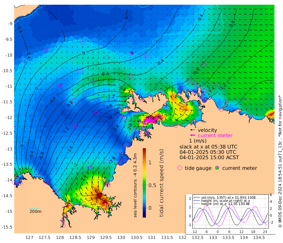 232cm/s -102T +4cm/s rms + 6cm/s 51T. Darwin_C1 52m 175cm/s -90T +4cm/s rms + 7cm/s -161T. Darwin_CW1 22m 126cm/s -107T +4cm/s rms + 8cm/s 61T. Darwin_CW2 34m 112cm/s -133T +3cm/s rms + 9cm/s 98T. Darwin_CW3 22m 187cm/s -91T +5cm/s rms + 7cm/s 88T. Darwin_C3 56m 127cm/s -115T +2cm/s rms + 9cm/s -126T. Darwin_CTbW 22m 6cm/s -76T +9cm/s rms + 2cm/s -110T. NWSLYN 196m 43cm/s -99T +1cm/s rms + 1cm/s -47T. DARBGF 30m 9cm/s 154T +7cm/s rms + 2cm/s -137T. ITFTIS 464m 6cm/s 133T +9cm/s rms + 1cm/s 74T. ITFMHB 146m 17cm/s 6T +4cm/s rms + 1cm/s -134T. ITFJBG 61m 5cm/s 65T +6cm/s rms + 4cm/s 121T. ITFFTB 108m 31cm/s -78T +4cm/s rms + 3cm/s 80T. NRSDAR 19m 45cm Carronade Island 44cm Guy Point 39cm Napier Broome Bay -69cm Lesueur Island -184cm Reveley Island -97cm Rocky Island -261cm Cape Domett -229cm Lacrosse Island -245cm Adolphus Island -168cm Pender Point -130cm Wyndham -68cm The Boxers -89cm Unnamed Shoal 8cm Loxton Shoal -284cm Pelican Island -47cm Calder Shoal -8cm Evans Shoal -269cm Quoin Island -309cm Port Keats -288cm Jones Point -169cm Catfish Island -234cm Cape Scott Offshore -286cm Cape Ford -266cm Anson Bay -36cm Goodrich Bank -236cm Peron Island North -245cm Point Jenny -245cm Native Point -250cm Fish Reef -273cm Tapa Bay -140cm Point Fawcett (Offshore) -291cm Burge Point -257cm Munkunuwa -209cm Beagle A -286cm Parsons Bank -272cm Fenton Patches -21cm Lynedoch Bank -276cm Hancox Shoal Area -287cm Nightcliff -310cm Darwin -289cm Charles Point Patches -214cm Glyde Point -148cm Chambers Bay -134cm Point Stuart -172cm Cape Hotham -144cm Christine Reef -137cm West Alligator Head -109cm East Field Island -136cm Two Hills Bay -156cm Newby Shoal -143cm Camp Point -268cm Medina Inlet South -127cm South Barlow Point -87cm St. Asaph Bay -42cm Cape Van Dieman -52cm Snake Bay -44cm Cache Point 49cm Echo Shoal -60cm Point Jahleel (Off) -112cm Cape Don -74cm Port Essington -72cm Smith Point - West -68cm NW Peacock Island -47cm North Of Jones Shoal -19cm Peacock Island -89cm Point David -76cm D'urville Point -63cm Money Shoal -88cm Copeland Island -115cm Cape Cockburn -86cm One Tree Point -112cm Hogmany Shoal -87cm New Year Island - West -96cm Grant Island -100cm Aurari Bay -124cm Cuthbert Point -111cm North Goulburn Island -132cm Paxie Shoal -137cm Entrance Island -139cm Yabooma Island