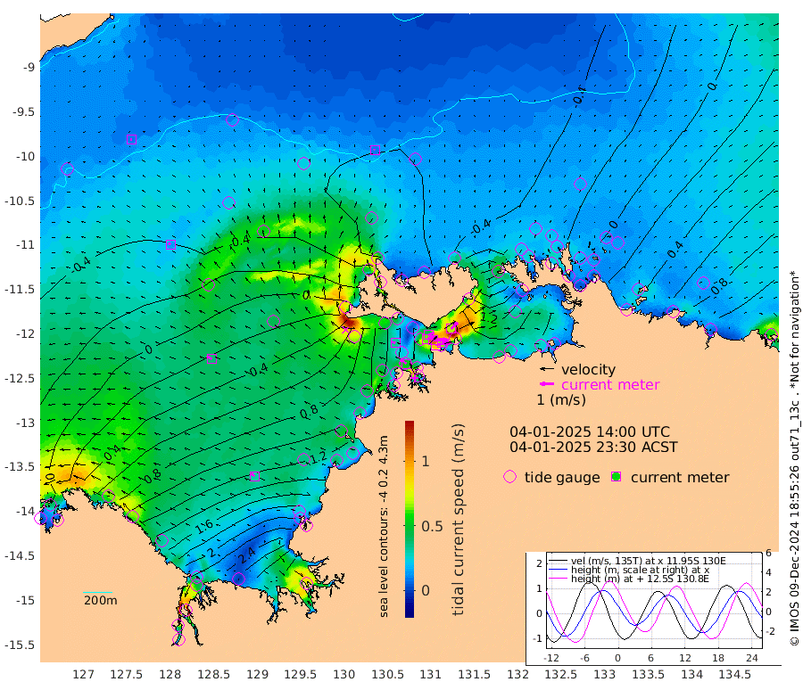 89cm/s 79T +4cm/s rms + 6cm/s 51T. Darwin_C1 52m 66cm/s 92T +4cm/s rms + 7cm/s -161T. Darwin_CW1 22m 62cm/s 70T +4cm/s rms + 8cm/s 61T. Darwin_CW2 34m 68cm/s 47T +3cm/s rms + 9cm/s 98T. Darwin_CW3 22m 110cm/s 90T +5cm/s rms + 7cm/s 88T. Darwin_C3 56m 45cm/s 66T +2cm/s rms + 9cm/s -126T. Darwin_CTbW 22m 9cm/s -18T +9cm/s rms + 2cm/s -110T. NWSLYN 196m 33cm/s -73T +1cm/s rms + 1cm/s -47T. DARBGF 30m 8cm/s -84T +7cm/s rms + 2cm/s -137T. ITFTIS 464m 14cm/s -47T +9cm/s rms + 1cm/s 74T. ITFMHB 146m 30cm/s -48T +4cm/s rms + 1cm/s -134T. ITFJBG 61m 38cm/s -58T +6cm/s rms + 4cm/s 121T. ITFFTB 108m 51cm/s -49T +4cm/s rms + 3cm/s 80T. NRSDAR 19m 44cm Carronade Island 48cm Guy Point 55cm Napier Broome Bay 97cm Lesueur Island 175cm Reveley Island 123cm Rocky Island 275cm Cape Domett 244cm Lacrosse Island 319cm Adolphus Island 339cm Pender Point 352cm Wyndham 1cm The Boxers -11cm Unnamed Shoal -41cm Loxton Shoal 260cm Pelican Island -22cm Calder Shoal -47cm Evans Shoal 393cm Quoin Island 215cm Port Keats 196cm Jones Point 360cm Catfish Island 114cm Cape Scott Offshore 36cm Cape Ford 119cm Anson Bay -47cm Goodrich Bank 91cm Peron Island North 87cm Point Jenny 85cm Native Point 93cm Fish Reef 107cm Tapa Bay 3cm Point Fawcett (Offshore) 131cm Burge Point 87cm Munkunuwa 63cm Beagle A 123cm Parsons Bank 122cm Fenton Patches -39cm Lynedoch Bank 135cm Hancox Shoal Area 144cm Nightcliff 152cm Darwin 118cm Charles Point Patches 151cm Glyde Point 193cm Chambers Bay 195cm Point Stuart 147cm Cape Hotham 178cm Christine Reef 219cm West Alligator Head 239cm East Field Island 146cm Two Hills Bay 48cm Newby Shoal 146cm Camp Point 104cm Medina Inlet South -10cm South Barlow Point -29cm St. Asaph Bay -51cm Cape Van Dieman -44cm Snake Bay -41cm Cache Point -46cm Echo Shoal -17cm Point Jahleel (Off) 41cm Cape Don -17cm Port Essington -19cm Smith Point - West -20cm NW Peacock Island -30cm North Of Jones Shoal -10cm Peacock Island -1cm Point David -19cm D'urville Point -18cm Money Shoal 2cm Copeland Island 9cm Cape Cockburn 1cm One Tree Point 9cm Hogmany Shoal 6cm New Year Island - West 9cm Grant Island 28cm Aurari Bay 54cm Cuthbert Point 30cm North Goulburn Island 75cm Paxie Shoal 96cm Entrance Island 124cm Yabooma Island