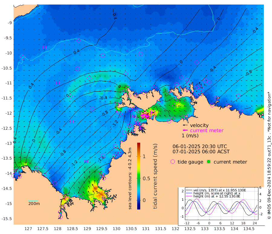 129cm/s -101T +4cm/s rms + 6cm/s 51T. Darwin_C1 52m 90cm/s -91T +4cm/s rms + 7cm/s -161T. Darwin_CW1 22m 72cm/s -106T +4cm/s rms + 8cm/s 61T. Darwin_CW2 34m 70cm/s -137T +3cm/s rms + 9cm/s 98T. Darwin_CW3 22m 119cm/s -91T +5cm/s rms + 7cm/s 88T. Darwin_C3 56m 76cm/s -116T +2cm/s rms + 9cm/s -126T. Darwin_CTbW 22m 10cm/s 162T +9cm/s rms + 2cm/s -110T. NWSLYN 196m 10cm/s -125T +1cm/s rms + 1cm/s -47T. DARBGF 30m 8cm/s 66T +7cm/s rms + 2cm/s -137T. ITFTIS 464m 9cm/s 68T +9cm/s rms + 1cm/s 74T. ITFMHB 146m 13cm/s 57T +4cm/s rms + 1cm/s -134T. ITFJBG 61m 16cm/s 90T +6cm/s rms + 4cm/s 121T. ITFFTB 108m 8cm/s -139T +4cm/s rms + 3cm/s 80T. NRSDAR 19m 25cm Carronade Island 26cm Guy Point 33cm Napier Broome Bay -62cm Lesueur Island -147cm Reveley Island -73cm Rocky Island -215cm Cape Domett -197cm Lacrosse Island -236cm Adolphus Island -177cm Pender Point -172cm Wyndham -6cm The Boxers -18cm Unnamed Shoal 50cm Loxton Shoal -234cm Pelican Island 6cm Calder Shoal 32cm Evans Shoal -264cm Quoin Island -211cm Port Keats -207cm Jones Point -229cm Catfish Island -144cm Cape Scott Offshore -138cm Cape Ford -157cm Anson Bay 17cm Goodrich Bank -145cm Peron Island North -141cm Point Jenny -138cm Native Point -150cm Fish Reef -161cm Tapa Bay -54cm Point Fawcett (Offshore) -176cm Burge Point -143cm Munkunuwa -122cm Beagle A -177cm Parsons Bank -176cm Fenton Patches 25cm Lynedoch Bank -181cm Hancox Shoal Area -188cm Nightcliff -192cm Darwin -164cm Charles Point Patches -160cm Glyde Point -158cm Chambers Bay -154cm Point Stuart -149cm Cape Hotham -145cm Christine Reef -168cm West Alligator Head -165cm East Field Island -132cm Two Hills Bay -74cm Newby Shoal -120cm Camp Point -151cm Medina Inlet South -40cm South Barlow Point -15cm St. Asaph Bay 15cm Cape Van Dieman 10cm Snake Bay 6cm Cache Point 60cm Echo Shoal -16cm Point Jahleel (Off) -62cm Cape Don -19cm Port Essington -26cm Smith Point - West -23cm NW Peacock Island -1cm North Of Jones Shoal -2cm Peacock Island -44cm Point David -30cm D'urville Point -12cm Money Shoal -48cm Copeland Island -65cm Cape Cockburn -39cm One Tree Point -62cm Hogmany Shoal -44cm New Year Island - West -51cm Grant Island -71cm Aurari Bay -91cm Cuthbert Point -70cm North Goulburn Island -88cm Paxie Shoal -124cm Entrance Island -144cm Yabooma Island