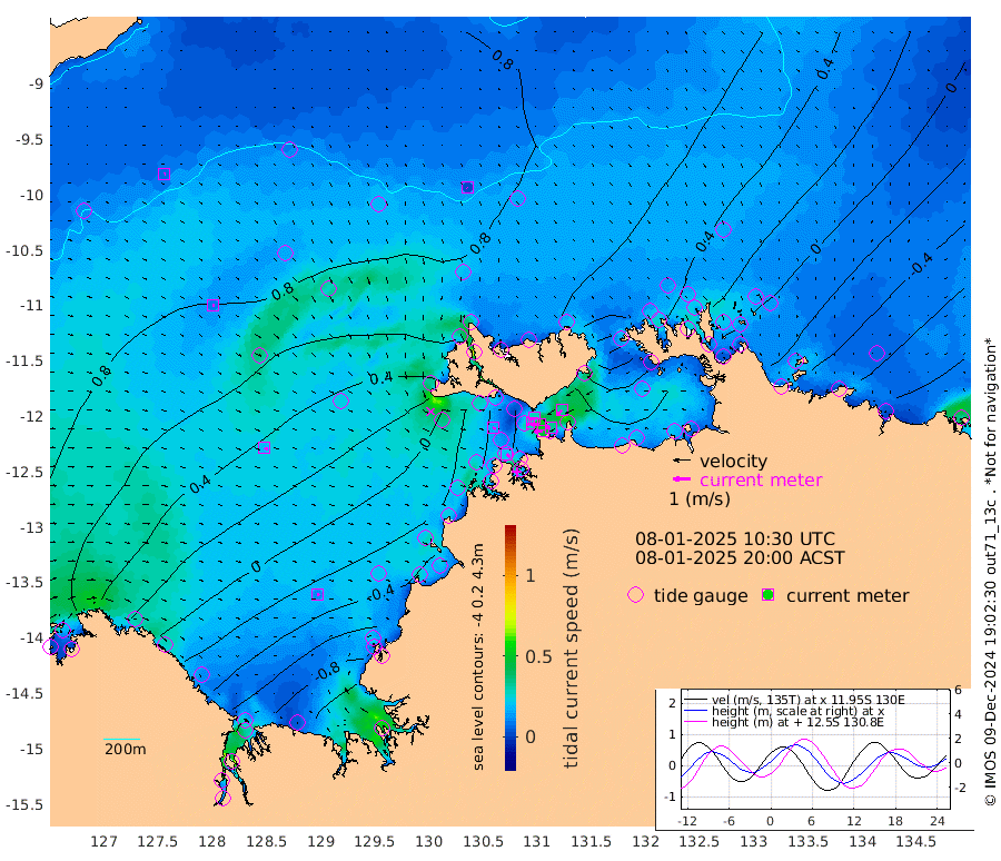 48cm/s -102T +4cm/s rms + 6cm/s 51T. Darwin_C1 52m 32cm/s -89T +4cm/s rms + 7cm/s -161T. Darwin_CW1 22m 29cm/s -109T +4cm/s rms + 8cm/s 61T. Darwin_CW2 34m 32cm/s -133T +3cm/s rms + 9cm/s 98T. Darwin_CW3 22m 52cm/s -91T +5cm/s rms + 7cm/s 88T. Darwin_C3 56m 27cm/s -115T +2cm/s rms + 9cm/s -126T. Darwin_CTbW 22m 3cm/s 133T +9cm/s rms + 2cm/s -110T. NWSLYN 196m 17cm/s 102T +1cm/s rms + 1cm/s -47T. DARBGF 30m 8cm/s 64T +7cm/s rms + 2cm/s -137T. ITFTIS 464m 9cm/s 98T +9cm/s rms + 1cm/s 74T. ITFMHB 146m 12cm/s 109T +4cm/s rms + 1cm/s -134T. ITFJBG 61m 20cm/s 105T +6cm/s rms + 4cm/s 121T. ITFFTB 108m 21cm/s 135T +4cm/s rms + 3cm/s 80T. NRSDAR 19m 55cm Carronade Island 53cm Guy Point 52cm Napier Broome Bay 30cm Lesueur Island -41cm Reveley Island -9cm Rocky Island -87cm Cape Domett -70cm Lacrosse Island -94cm Adolphus Island -108cm Pender Point -107cm Wyndham 64cm The Boxers 51cm Unnamed Shoal 94cm Loxton Shoal -98cm Pelican Island 78cm Calder Shoal 79cm Evans Shoal -139cm Quoin Island -66cm Port Keats -75cm Jones Point -145cm Catfish Island -25cm Cape Scott Offshore 22cm Cape Ford -34cm Anson Bay 74cm Goodrich Bank -14cm Peron Island North -17cm Point Jenny -15cm Native Point -17cm Fish Reef -28cm Tapa Bay 40cm Point Fawcett (Offshore) -36cm Burge Point -25cm Munkunuwa 11cm Beagle A -45cm Parsons Bank -26cm Fenton Patches 71cm Lynedoch Bank -49cm Hancox Shoal Area -45cm Nightcliff -47cm Darwin -23cm Charles Point Patches -54cm Glyde Point -81cm Chambers Bay -89cm Point Stuart -57cm Cape Hotham -72cm Christine Reef -102cm West Alligator Head -106cm East Field Island -58cm Two Hills Bay 46cm Newby Shoal -50cm Camp Point -21cm Medina Inlet South 50cm South Barlow Point 63cm St. Asaph Bay 72cm Cape Van Dieman 72cm Snake Bay 67cm Cache Point 101cm Echo Shoal 49cm Point Jahleel (Off) 5cm Cape Don 39cm Port Essington 40cm Smith Point - West 39cm NW Peacock Island 54cm North Of Jones Shoal 17cm Peacock Island 8cm Point David 35cm D'urville Point 36cm Money Shoal 3cm Copeland Island 8cm Cape Cockburn 15cm One Tree Point 1cm Hogmany Shoal 15cm New Year Island - West 7cm Grant Island -14cm Aurari Bay -38cm Cuthbert Point -14cm North Goulburn Island -55cm Paxie Shoal -73cm Entrance Island -107cm Yabooma Island