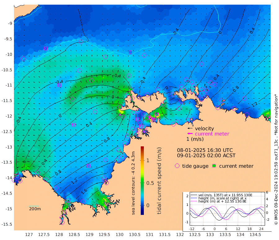 67cm/s 78T +4cm/s rms + 6cm/s 51T. Darwin_C1 52m 45cm/s 88T +4cm/s rms + 7cm/s -161T. Darwin_CW1 22m 42cm/s 72T +4cm/s rms + 8cm/s 61T. Darwin_CW2 34m 43cm/s 45T +3cm/s rms + 9cm/s 98T. Darwin_CW3 22m 71cm/s 90T +5cm/s rms + 7cm/s 88T. Darwin_C3 56m 40cm/s 64T +2cm/s rms + 9cm/s -126T. Darwin_CTbW 22m 8cm/s -26T +9cm/s rms + 2cm/s -110T. NWSLYN 196m 16cm/s -71T +1cm/s rms + 1cm/s -47T. DARBGF 30m 7cm/s -74T +7cm/s rms + 2cm/s -137T. ITFTIS 464m 14cm/s -34T +9cm/s rms + 1cm/s 74T. ITFMHB 146m 14cm/s -64T +4cm/s rms + 1cm/s -134T. ITFJBG 61m 24cm/s -60T +6cm/s rms + 4cm/s 121T. ITFFTB 108m 23cm/s -44T +4cm/s rms + 3cm/s 80T. NRSDAR 19m -19cm Carronade Island -27cm Guy Point -13cm Napier Broome Bay 37cm Lesueur Island 99cm Reveley Island 68cm Rocky Island 158cm Cape Domett 140cm Lacrosse Island 172cm Adolphus Island 169cm Pender Point 175cm Wyndham -16cm The Boxers 12cm Unnamed Shoal -66cm Loxton Shoal 160cm Pelican Island -38cm Calder Shoal -58cm Evans Shoal 212cm Quoin Island 135cm Port Keats 143cm Jones Point 209cm Catfish Island 73cm Cape Scott Offshore 42cm Cape Ford 83cm Anson Bay -42cm Goodrich Bank 69cm Peron Island North 67cm Point Jenny 67cm Native Point 77cm Fish Reef 82cm Tapa Bay -3cm Point Fawcett (Offshore) 102cm Burge Point 69cm Munkunuwa 52cm Beagle A 103cm Parsons Bank 98cm Fenton Patches -41cm Lynedoch Bank 104cm Hancox Shoal Area 104cm Nightcliff 116cm Darwin 87cm Charles Point Patches 114cm Glyde Point 126cm Chambers Bay 140cm Point Stuart 111cm Cape Hotham 115cm Christine Reef 154cm West Alligator Head 162cm East Field Island 107cm Two Hills Bay 27cm Newby Shoal 100cm Camp Point 78cm Medina Inlet South -9cm South Barlow Point -30cm St. Asaph Bay -41cm Cape Van Dieman -34cm Snake Bay -35cm Cache Point -75cm Echo Shoal -15cm Point Jahleel (Off) 33cm Cape Don -6cm Port Essington -7cm Smith Point - West -5cm NW Peacock Island -27cm North Of Jones Shoal -7cm Peacock Island 26cm Point David -1cm D'urville Point -5cm Money Shoal 29cm Copeland Island 38cm Cape Cockburn 19cm One Tree Point 39cm Hogmany Shoal 28cm New Year Island - West 32cm Grant Island 55cm Aurari Bay 76cm Cuthbert Point 50cm North Goulburn Island 84cm Paxie Shoal 111cm Entrance Island 134cm Yabooma Island