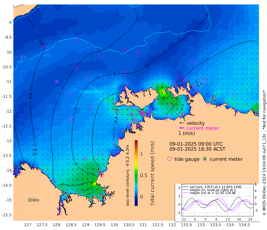 53cm/s -102T +4cm/s rms + 6cm/s 51T. Darwin_C1 52m 5cm/s -70T +4cm/s rms + 7cm/s -161T. Darwin_CW1 22m 39cm/s -108T +4cm/s rms + 8cm/s 61T. Darwin_CW2 34m 10cm/s -98T +3cm/s rms + 9cm/s 98T. Darwin_CW3 22m 39cm/s -94T +5cm/s rms + 7cm/s 88T. Darwin_C3 56m 38cm/s -116T +2cm/s rms + 9cm/s -126T. Darwin_CTbW 22m 3cm/s 13T +9cm/s rms + 2cm/s -110T. NWSLYN 196m 27cm/s -88T +1cm/s rms + 1cm/s -47T. DARBGF 30m 3cm/s 19T +7cm/s rms + 2cm/s -137T. ITFTIS 464m 7cm/s 20T +9cm/s rms + 1cm/s 74T. ITFMHB 146m 21cm/s -17T +4cm/s rms + 1cm/s -134T. ITFJBG 61m 15cm/s -22T +6cm/s rms + 4cm/s 121T. ITFFTB 108m 29cm/s -63T +4cm/s rms + 3cm/s 80T. NRSDAR 19m 105cm Carronade Island 112cm Guy Point 102cm Napier Broome Bay 80cm Lesueur Island 34cm Reveley Island 5cm Rocky Island 40cm Cape Domett 46cm Lacrosse Island 71cm Adolphus Island 103cm Pender Point 130cm Wyndham 25cm The Boxers -7cm Unnamed Shoal 42cm Loxton Shoal 20cm Pelican Island 25cm Calder Shoal 24cm Evans Shoal 77cm Quoin Island 1cm Port Keats -11cm Jones Point 79cm Catfish Island -14cm Cape Scott Offshore -14cm Cape Ford -28cm Anson Bay 12cm Goodrich Bank -27cm Peron Island North -24cm Point Jenny -26cm Native Point -30cm Fish Reef -30cm Tapa Bay -12cm Point Fawcett (Offshore) -26cm Burge Point -48cm Munkunuwa -10cm Beagle A -45cm Parsons Bank -18cm Fenton Patches 17cm Lynedoch Bank -27cm Hancox Shoal Area -24cm Nightcliff -32cm Darwin -24cm Charles Point Patches 0cm Glyde Point 33cm Chambers Bay 32cm Point Stuart 9cm Cape Hotham 37cm Christine Reef 38cm West Alligator Head 62cm East Field Island 16cm Two Hills Bay 18cm Newby Shoal 29cm Camp Point -35cm Medina Inlet South -16cm South Barlow Point 0cm St. Asaph Bay 6cm Cape Van Dieman 1cm Snake Bay 11cm Cache Point 62cm Echo Shoal 7cm Point Jahleel (Off) -2cm Cape Don -4cm Port Essington -5cm Smith Point - West -4cm NW Peacock Island 6cm North Of Jones Shoal 0cm Peacock Island -17cm Point David -9cm D'urville Point 3cm Money Shoal -17cm Copeland Island -19cm Cape Cockburn -13cm One Tree Point -14cm Hogmany Shoal -8cm New Year Island - West -14cm Grant Island -17cm Aurari Bay -19cm Cuthbert Point -20cm North Goulburn Island -15cm Paxie Shoal -21cm Entrance Island -17cm Yabooma Island