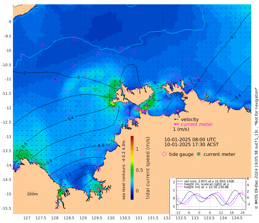 69cm/s 79T +4cm/s rms + 6cm/s 51T. Darwin_C1 52m 86cm/s 91T +4cm/s rms + 7cm/s -161T. Darwin_CW1 22m 30cm/s 72T +4cm/s rms + 8cm/s 61T. Darwin_CW2 34m 51cm/s 40T +3cm/s rms + 9cm/s 98T. Darwin_CW3 22m 62cm/s 91T +5cm/s rms + 7cm/s 88T. Darwin_C3 56m 34cm/s 67T +2cm/s rms + 9cm/s -126T. Darwin_CTbW 22m 5cm/s 7T +9cm/s rms + 2cm/s -110T. NWSLYN 196m 13cm/s -64T +1cm/s rms + 1cm/s -47T. DARBGF 30m 3cm/s -76T +7cm/s rms + 2cm/s -137T. ITFTIS 464m 3cm/s -88T +9cm/s rms + 1cm/s 74T. ITFMHB 146m 13cm/s -50T +4cm/s rms + 1cm/s -134T. ITFJBG 61m 15cm/s -54T +6cm/s rms + 4cm/s 121T. ITFFTB 108m 19cm/s -52T +4cm/s rms + 3cm/s 80T. NRSDAR 19m 74cm Carronade Island 82cm Guy Point 72cm Napier Broome Bay 102cm Lesueur Island 132cm Reveley Island 50cm Rocky Island 184cm Cape Domett 177cm Lacrosse Island 207cm Adolphus Island 210cm Pender Point 223cm Wyndham 24cm The Boxers 1cm Unnamed Shoal -4cm Loxton Shoal 178cm Pelican Island 15cm Calder Shoal -6cm Evans Shoal 240cm Quoin Island 152cm Port Keats 140cm Jones Point 225cm Catfish Island 97cm Cape Scott Offshore 106cm Cape Ford 97cm Anson Bay -9cm Goodrich Bank 82cm Peron Island North 90cm Point Jenny 86cm Native Point 88cm Fish Reef 97cm Tapa Bay 35cm Point Fawcett (Offshore) 112cm Burge Point 72cm Munkunuwa 80cm Beagle A 90cm Parsons Bank 110cm Fenton Patches -12cm Lynedoch Bank 106cm Hancox Shoal Area 116cm Nightcliff 111cm Darwin 100cm Charles Point Patches 110cm Glyde Point 131cm Chambers Bay 130cm Point Stuart 106cm Cape Hotham 129cm Christine Reef 144cm West Alligator Head 159cm East Field Island 99cm Two Hills Bay 65cm Newby Shoal 106cm Camp Point 86cm Medina Inlet South 13cm South Barlow Point 11cm St. Asaph Bay -11cm Cape Van Dieman -16cm Snake Bay -1cm Cache Point 3cm Echo Shoal 9cm Point Jahleel (Off) 37cm Cape Don 1cm Port Essington 2cm Smith Point - West -1cm NW Peacock Island -3cm North Of Jones Shoal -2cm Peacock Island 1cm Point David -2cm D'urville Point 0cm Money Shoal 3cm Copeland Island 10cm Cape Cockburn 3cm One Tree Point 14cm Hogmany Shoal 7cm New Year Island - West 7cm Grant Island 15cm Aurari Bay 29cm Cuthbert Point 15cm North Goulburn Island 42cm Paxie Shoal 48cm Entrance Island 67cm Yabooma Island