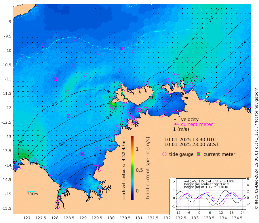 42cm/s -101T +4cm/s rms + 6cm/s 51T. Darwin_C1 52m 52cm/s -90T +4cm/s rms + 7cm/s -161T. Darwin_CW1 22m 11cm/s -112T +4cm/s rms + 8cm/s 61T. Darwin_CW2 34m 29cm/s -137T +3cm/s rms + 9cm/s 98T. Darwin_CW3 22m 22cm/s -90T +5cm/s rms + 7cm/s 88T. Darwin_C3 56m 18cm/s -113T +2cm/s rms + 9cm/s -126T. Darwin_CTbW 22m 7cm/s 134T +9cm/s rms + 2cm/s -110T. NWSLYN 196m 17cm/s 97T +1cm/s rms + 1cm/s -47T. DARBGF 30m 8cm/s 39T +7cm/s rms + 2cm/s -137T. ITFTIS 464m 9cm/s 64T +9cm/s rms + 1cm/s 74T. ITFMHB 146m 7cm/s 96T +4cm/s rms + 1cm/s -134T. ITFJBG 61m 15cm/s 95T +6cm/s rms + 4cm/s 121T. ITFFTB 108m 16cm/s 131T +4cm/s rms + 3cm/s 80T. NRSDAR 19m 62cm Carronade Island 59cm Guy Point 66cm Napier Broome Bay 48cm Lesueur Island -15cm Reveley Island 10cm Rocky Island -46cm Cape Domett -38cm Lacrosse Island -53cm Adolphus Island -66cm Pender Point -64cm Wyndham 82cm The Boxers 78cm Unnamed Shoal 100cm Loxton Shoal -57cm Pelican Island 88cm Calder Shoal 87cm Evans Shoal -88cm Quoin Island -29cm Port Keats -40cm Jones Point -76cm Catfish Island 6cm Cape Scott Offshore 30cm Cape Ford 2cm Anson Bay 86cm Goodrich Bank 19cm Peron Island North 11cm Point Jenny 14cm Native Point 12cm Fish Reef 3cm Tapa Bay 60cm Point Fawcett (Offshore) -3cm Burge Point 1cm Munkunuwa 30cm Beagle A -5cm Parsons Bank 0cm Fenton Patches 85cm Lynedoch Bank -12cm Hancox Shoal Area -12cm Nightcliff -5cm Darwin 15cm Charles Point Patches -17cm Glyde Point -41cm Chambers Bay -51cm Point Stuart -22cm Cape Hotham -37cm Christine Reef -63cm West Alligator Head -71cm East Field Island -19cm Two Hills Bay 70cm Newby Shoal -18cm Camp Point 12cm Medina Inlet South 70cm South Barlow Point 74cm St. Asaph Bay 85cm Cape Van Dieman 90cm Snake Bay 83cm Cache Point 98cm Echo Shoal 68cm Point Jahleel (Off) 39cm Cape Don 68cm Port Essington 68cm Smith Point - West 69cm NW Peacock Island 78cm North Of Jones Shoal 26cm Peacock Island 50cm Point David 67cm D'urville Point 68cm Money Shoal 44cm Copeland Island 63cm Cape Cockburn 56cm One Tree Point 55cm Hogmany Shoal 57cm New Year Island - West 52cm Grant Island 31cm Aurari Bay 20cm Cuthbert Point 38cm North Goulburn Island 4cm Paxie Shoal -6cm Entrance Island -35cm Yabooma Island