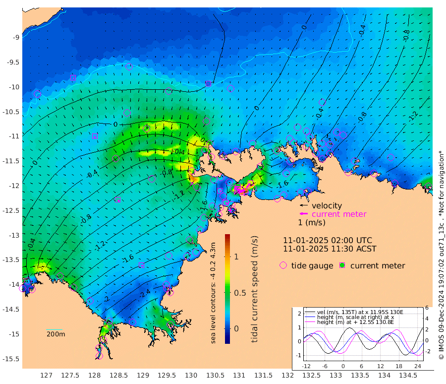102cm/s -101T +4cm/s rms + 6cm/s 51T. Darwin_C1 52m 106cm/s -92T +4cm/s rms + 7cm/s -161T. Darwin_CW1 22m 38cm/s -105T +4cm/s rms + 8cm/s 61T. Darwin_CW2 34m 73cm/s -140T +3cm/s rms + 9cm/s 98T. Darwin_CW3 22m 79cm/s -89T +5cm/s rms + 7cm/s 88T. Darwin_C3 56m 53cm/s -116T +2cm/s rms + 9cm/s -126T. Darwin_CTbW 22m 8cm/s -173T +9cm/s rms + 2cm/s -110T. NWSLYN 196m 20cm/s 111T +1cm/s rms + 1cm/s -47T. DARBGF 30m 11cm/s 144T +7cm/s rms + 2cm/s -137T. ITFTIS 464m 20cm/s 166T +9cm/s rms + 1cm/s 74T. ITFMHB 146m 19cm/s 132T +4cm/s rms + 1cm/s -134T. ITFJBG 61m 29cm/s 135T +6cm/s rms + 4cm/s 121T. ITFFTB 108m 27cm/s 132T +4cm/s rms + 3cm/s 80T. NRSDAR 19m -57cm Carronade Island -55cm Guy Point -59cm Napier Broome Bay -127cm Lesueur Island -175cm Reveley Island -77cm Rocky Island -255cm Cape Domett -237cm Lacrosse Island -283cm Adolphus Island -274cm Pender Point -289cm Wyndham -37cm The Boxers -46cm Unnamed Shoal 22cm Loxton Shoal -252cm Pelican Island -10cm Calder Shoal 20cm Evans Shoal -328cm Quoin Island -227cm Port Keats -221cm Jones Point -310cm Catfish Island -138cm Cape Scott Offshore -156cm Cape Ford -149cm Anson Bay 5cm Goodrich Bank -131cm Peron Island North -132cm Point Jenny -130cm Native Point -142cm Fish Reef -149cm Tapa Bay -50cm Point Fawcett (Offshore) -178cm Burge Point -114cm Munkunuwa -120cm Beagle A -159cm Parsons Bank -174cm Fenton Patches 7cm Lynedoch Bank -170cm Hancox Shoal Area -175cm Nightcliff -191cm Darwin -169cm Charles Point Patches -181cm Glyde Point -190cm Chambers Bay -200cm Point Stuart -172cm Cape Hotham -182cm Christine Reef -216cm West Alligator Head -234cm East Field Island -160cm Two Hills Bay -102cm Newby Shoal -167cm Camp Point -141cm Medina Inlet South -33cm South Barlow Point -14cm St. Asaph Bay 6cm Cape Van Dieman 2cm Snake Bay -6cm Cache Point 27cm Echo Shoal -24cm Point Jahleel (Off) -77cm Cape Don -31cm Port Essington -27cm Smith Point - West -30cm NW Peacock Island -11cm North Of Jones Shoal -6cm Peacock Island -55cm Point David -32cm D'urville Point -35cm Money Shoal -58cm Copeland Island -80cm Cape Cockburn -52cm One Tree Point -83cm Hogmany Shoal -63cm New Year Island - West -65cm Grant Island -84cm Aurari Bay -111cm Cuthbert Point -83cm North Goulburn Island -124cm Paxie Shoal -141cm Entrance Island -169cm Yabooma Island