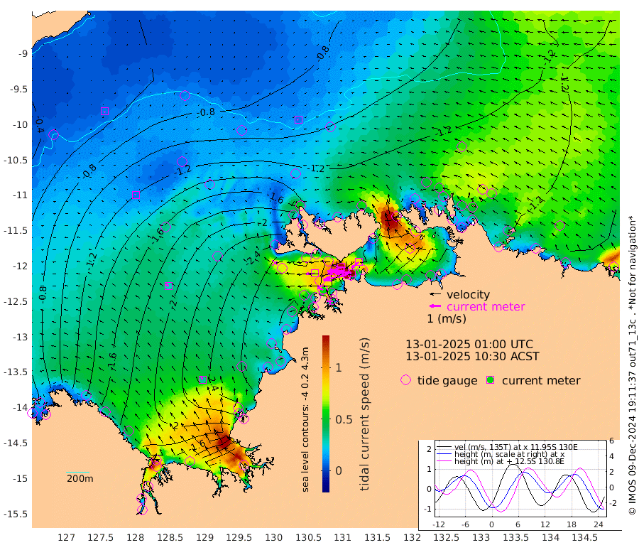 212cm/s -102T +4cm/s rms + 6cm/s 51T. Darwin_C1 52m 151cm/s -89T +4cm/s rms + 7cm/s -161T. Darwin_CW1 22m 114cm/s -107T +4cm/s rms + 8cm/s 61T. Darwin_CW2 34m 85cm/s -129T +3cm/s rms + 9cm/s 98T. Darwin_CW3 22m 153cm/s -90T +5cm/s rms + 7cm/s 88T. Darwin_C3 56m 128cm/s -115T +2cm/s rms + 9cm/s -126T. Darwin_CTbW 22m 9cm/s -65T +9cm/s rms + 2cm/s -110T. NWSLYN 196m 73cm/s -93T +1cm/s rms + 1cm/s -47T. DARBGF 30m 10cm/s -161T +7cm/s rms + 2cm/s -137T. ITFTIS 464m 9cm/s -38T +9cm/s rms + 1cm/s 74T. ITFMHB 146m 32cm/s -24T +4cm/s rms + 1cm/s -134T. ITFJBG 61m 28cm/s -52T +6cm/s rms + 4cm/s 121T. ITFFTB 108m 59cm/s -63T +4cm/s rms + 3cm/s 80T. NRSDAR 19m -31cm Carronade Island -27cm Guy Point -38cm Napier Broome Bay -120cm Lesueur Island -165cm Reveley Island -86cm Rocky Island -195cm Cape Domett -194cm Lacrosse Island -148cm Adolphus Island -63cm Pender Point -35cm Wyndham -138cm The Boxers -156cm Unnamed Shoal -69cm Loxton Shoal -212cm Pelican Island -129cm Calder Shoal -81cm Evans Shoal -149cm Quoin Island -256cm Port Keats -244cm Jones Point -149cm Catfish Island -247cm Cape Scott Offshore -319cm Cape Ford -273cm Anson Bay -100cm Goodrich Bank -260cm Peron Island North -265cm Point Jenny -263cm Native Point -276cm Fish Reef -277cm Tapa Bay -210cm Point Fawcett (Offshore) -287cm Burge Point -260cm Munkunuwa -251cm Beagle A -266cm Parsons Bank -276cm Fenton Patches -79cm Lynedoch Bank -253cm Hancox Shoal Area -276cm Nightcliff -287cm Darwin -286cm Charles Point Patches -192cm Glyde Point -107cm Chambers Bay -93cm Point Stuart -153cm Cape Hotham -105cm Christine Reef -88cm West Alligator Head -54cm East Field Island -118cm Two Hills Bay -219cm Newby Shoal -115cm Camp Point -275cm Medina Inlet South -181cm South Barlow Point -156cm St. Asaph Bay -108cm Cape Van Dieman -115cm Snake Bay -113cm Cache Point -43cm Echo Shoal -112cm Point Jahleel (Off) -135cm Cape Don -115cm Port Essington -116cm Smith Point - West -107cm NW Peacock Island -105cm North Of Jones Shoal -37cm Peacock Island -102cm Point David -113cm D'urville Point -97cm Money Shoal -98cm Copeland Island -138cm Cape Cockburn -108cm One Tree Point -122cm Hogmany Shoal -107cm New Year Island - West -108cm Grant Island -100cm Aurari Bay -102cm Cuthbert Point -108cm North Goulburn Island -99cm Paxie Shoal -87cm Entrance Island -67cm Yabooma Island
