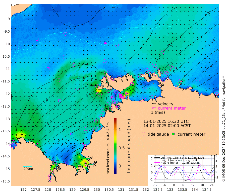 83cm/s -101T +4cm/s rms + 6cm/s 51T. Darwin_C1 52m 79cm/s -91T +4cm/s rms + 7cm/s -161T. Darwin_CW1 22m 34cm/s -108T +4cm/s rms + 8cm/s 61T. Darwin_CW2 34m 66cm/s -136T +3cm/s rms + 9cm/s 98T. Darwin_CW3 22m 59cm/s -91T +5cm/s rms + 7cm/s 88T. Darwin_C3 56m 32cm/s -115T +2cm/s rms + 9cm/s -126T. Darwin_CTbW 22m 12cm/s 143T +9cm/s rms + 2cm/s -110T. NWSLYN 196m 21cm/s 104T +1cm/s rms + 1cm/s -47T. DARBGF 30m 12cm/s 41T +7cm/s rms + 2cm/s -137T. ITFTIS 464m 13cm/s 64T +9cm/s rms + 1cm/s 74T. ITFMHB 146m 15cm/s 89T +4cm/s rms + 1cm/s -134T. ITFJBG 61m 24cm/s 98T +6cm/s rms + 4cm/s 121T. ITFFTB 108m 23cm/s 140T +4cm/s rms + 3cm/s 80T. NRSDAR 19m 78cm Carronade Island 76cm Guy Point 88cm Napier Broome Bay 29cm Lesueur Island -67cm Reveley Island -39cm Rocky Island -128cm Cape Domett -107cm Lacrosse Island -154cm Adolphus Island -143cm Pender Point -133cm Wyndham 81cm The Boxers 84cm Unnamed Shoal 107cm Loxton Shoal -140cm Pelican Island 88cm Calder Shoal 93cm Evans Shoal -195cm Quoin Island -106cm Port Keats -112cm Jones Point -136cm Catfish Island -34cm Cape Scott Offshore -31cm Cape Ford -38cm Anson Bay 89cm Goodrich Bank -25cm Peron Island North -23cm Point Jenny -21cm Native Point -33cm Fish Reef -41cm Tapa Bay 49cm Point Fawcett (Offshore) -57cm Burge Point -45cm Munkunuwa -5cm Beagle A -58cm Parsons Bank -54cm Fenton Patches 90cm Lynedoch Bank -63cm Hancox Shoal Area -63cm Nightcliff -67cm Darwin -37cm Charles Point Patches -64cm Glyde Point -83cm Chambers Bay -91cm Point Stuart -63cm Cape Hotham -73cm Christine Reef -109cm West Alligator Head -117cm East Field Island -54cm Two Hills Bay 49cm Newby Shoal -50cm Camp Point -35cm Medina Inlet South 57cm South Barlow Point 70cm St. Asaph Bay 90cm Cape Van Dieman 93cm Snake Bay 87cm Cache Point 109cm Echo Shoal 65cm Point Jahleel (Off) 28cm Cape Don 67cm Port Essington 65cm Smith Point - West 68cm NW Peacock Island 83cm North Of Jones Shoal 28cm Peacock Island 52cm Point David 66cm D'urville Point 74cm Money Shoal 46cm Copeland Island 62cm Cape Cockburn 57cm One Tree Point 56cm Hogmany Shoal 57cm New Year Island - West 51cm Grant Island 28cm Aurari Bay 14cm Cuthbert Point 34cm North Goulburn Island 6cm Paxie Shoal -18cm Entrance Island -44cm Yabooma Island