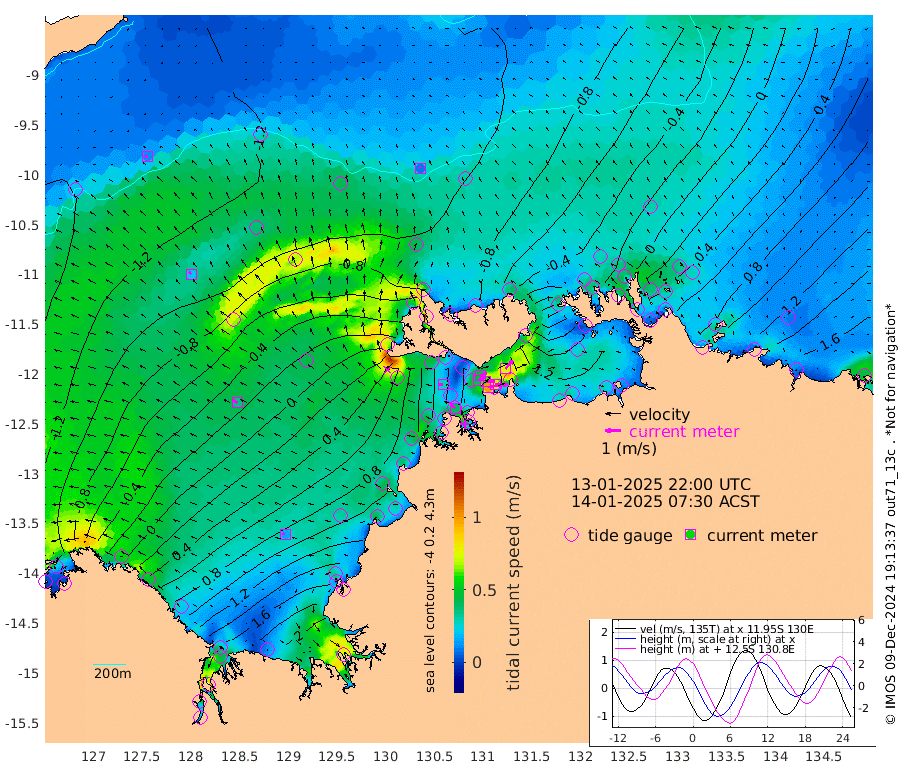 99cm/s 80T +4cm/s rms + 6cm/s 51T. Darwin_C1 52m 77cm/s 92T +4cm/s rms + 7cm/s -161T. Darwin_CW1 22m 41cm/s 67T +4cm/s rms + 8cm/s 61T. Darwin_CW2 34m 72cm/s 43T +3cm/s rms + 9cm/s 98T. Darwin_CW3 22m 61cm/s 90T +5cm/s rms + 7cm/s 88T. Darwin_C3 56m 44cm/s 64T +2cm/s rms + 9cm/s -126T. Darwin_CTbW 22m 9cm/s -27T +9cm/s rms + 2cm/s -110T. NWSLYN 196m 28cm/s -80T +1cm/s rms + 1cm/s -47T. DARBGF 30m 11cm/s -90T +7cm/s rms + 2cm/s -137T. ITFTIS 464m 21cm/s -38T +9cm/s rms + 1cm/s 74T. ITFMHB 146m 16cm/s -72T +4cm/s rms + 1cm/s -134T. ITFJBG 61m 35cm/s -62T +6cm/s rms + 4cm/s 121T. ITFFTB 108m 39cm/s -52T +4cm/s rms + 3cm/s 80T. NRSDAR 19m -110cm Carronade Island -116cm Guy Point -119cm Napier Broome Bay -30cm Lesueur Island 69cm Reveley Island -2cm Rocky Island 147cm Cape Domett 120cm Lacrosse Island 177cm Adolphus Island 152cm Pender Point 149cm Wyndham -83cm The Boxers -53cm Unnamed Shoal -134cm Loxton Shoal 171cm Pelican Island -107cm Calder Shoal -109cm Evans Shoal 233cm Quoin Island 140cm Port Keats 153cm Jones Point 200cm Catfish Island 51cm Cape Scott Offshore 47cm Cape Ford 69cm Anson Bay -88cm Goodrich Bank 52cm Peron Island North 41cm Point Jenny 38cm Native Point 60cm Fish Reef 65cm Tapa Bay -44cm Point Fawcett (Offshore) 90cm Burge Point 55cm Munkunuwa 17cm Beagle A 101cm Parsons Bank 81cm Fenton Patches -86cm Lynedoch Bank 103cm Hancox Shoal Area 91cm Nightcliff 117cm Darwin 83cm Charles Point Patches 112cm Glyde Point 125cm Chambers Bay 145cm Point Stuart 112cm Cape Hotham 109cm Christine Reef 159cm West Alligator Head 170cm East Field Island 102cm Two Hills Bay -40cm Newby Shoal 98cm Camp Point 63cm Medina Inlet South -48cm South Barlow Point -74cm St. Asaph Bay -86cm Cape Van Dieman -80cm Snake Bay -79cm Cache Point -146cm Echo Shoal -51cm Point Jahleel (Off) 13cm Cape Don -28cm Port Essington -33cm Smith Point - West -27cm NW Peacock Island -56cm North Of Jones Shoal -15cm Peacock Island 24cm Point David -20cm D'urville Point -19cm Money Shoal 32cm Copeland Island 37cm Cape Cockburn 13cm One Tree Point 41cm Hogmany Shoal 17cm New Year Island - West 25cm Grant Island 65cm Aurari Bay 95cm Cuthbert Point 59cm North Goulburn Island 109cm Paxie Shoal 138cm Entrance Island 190cm Yabooma Island