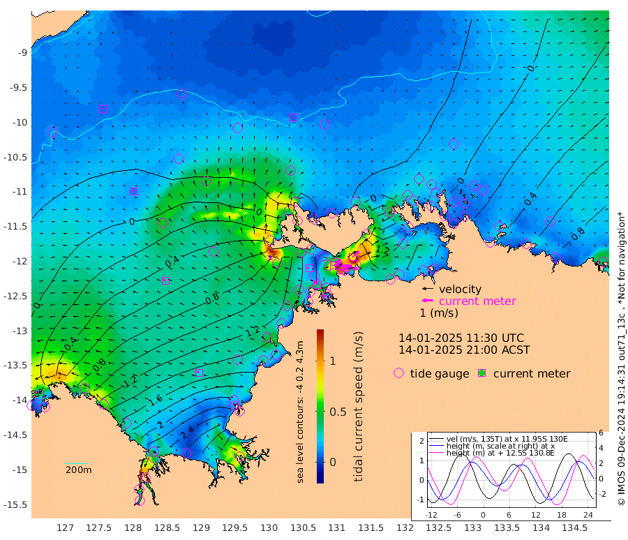 113cm/s 79T +4cm/s rms + 6cm/s 51T. Darwin_C1 52m 109cm/s 90T +4cm/s rms + 7cm/s -161T. Darwin_CW1 22m 69cm/s 72T +4cm/s rms + 8cm/s 61T. Darwin_CW2 34m 81cm/s 45T +3cm/s rms + 9cm/s 98T. Darwin_CW3 22m 120cm/s 90T +5cm/s rms + 7cm/s 88T. Darwin_C3 56m 56cm/s 66T +2cm/s rms + 9cm/s -126T. Darwin_CTbW 22m 7cm/s 0T +9cm/s rms + 2cm/s -110T. NWSLYN 196m 22cm/s -64T +1cm/s rms + 1cm/s -47T. DARBGF 30m 7cm/s -67T +7cm/s rms + 2cm/s -137T. ITFTIS 464m 10cm/s -53T +9cm/s rms + 1cm/s 74T. ITFMHB 146m 25cm/s -52T +4cm/s rms + 1cm/s -134T. ITFJBG 61m 32cm/s -57T +6cm/s rms + 4cm/s 121T. ITFFTB 108m 38cm/s -45T +4cm/s rms + 3cm/s 80T. NRSDAR 19m 62cm Carronade Island 70cm Guy Point 68cm Napier Broome Bay 129cm Lesueur Island 208cm Reveley Island 122cm Rocky Island 303cm Cape Domett 275cm Lacrosse Island 333cm Adolphus Island 348cm Pender Point 351cm Wyndham 30cm The Boxers 14cm Unnamed Shoal -13cm Loxton Shoal 291cm Pelican Island 12cm Calder Shoal -18cm Evans Shoal 398cm Quoin Island 250cm Port Keats 239cm Jones Point 336cm Catfish Island 149cm Cape Scott Offshore 157cm Cape Ford 152cm Anson Bay -19cm Goodrich Bank 134cm Peron Island North 127cm Point Jenny 125cm Native Point 137cm Fish Reef 150cm Tapa Bay 45cm Point Fawcett (Offshore) 176cm Burge Point 130cm Munkunuwa 105cm Beagle A 158cm Parsons Bank 163cm Fenton Patches -19cm Lynedoch Bank 168cm Hancox Shoal Area 173cm Nightcliff 191cm Darwin 164cm Charles Point Patches 173cm Glyde Point 194cm Chambers Bay 199cm Point Stuart 165cm Cape Hotham 179cm Christine Reef 221cm West Alligator Head 236cm East Field Island 154cm Two Hills Bay 81cm Newby Shoal 156cm Camp Point 146cm Medina Inlet South 23cm South Barlow Point 7cm St. Asaph Bay -22cm Cape Van Dieman -19cm Snake Bay -12cm Cache Point -20cm Echo Shoal 8cm Point Jahleel (Off) 56cm Cape Don 2cm Port Essington -2cm Smith Point - West -4cm NW Peacock Island -13cm North Of Jones Shoal -5cm Peacock Island 7cm Point David -5cm D'urville Point -6cm Money Shoal 8cm Copeland Island 17cm Cape Cockburn 10cm One Tree Point 26cm Hogmany Shoal 13cm New Year Island - West 17cm Grant Island 25cm Aurari Bay 48cm Cuthbert Point 32cm North Goulburn Island 69cm Paxie Shoal 82cm Entrance Island 99cm Yabooma Island