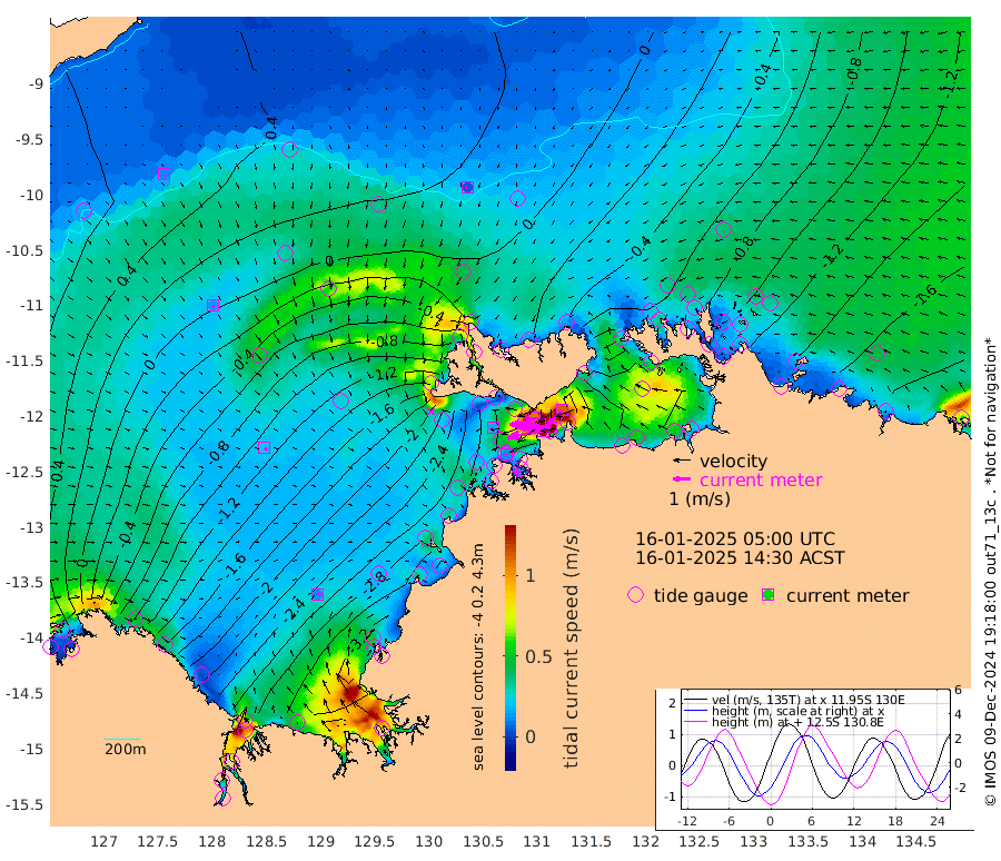 207cm/s -101T +4cm/s rms + 6cm/s 51T. Darwin_C1 52m 167cm/s -91T +4cm/s rms + 7cm/s -161T. Darwin_CW1 22m 101cm/s -106T +4cm/s rms + 8cm/s 61T. Darwin_CW2 34m 113cm/s -135T +3cm/s rms + 9cm/s 98T. Darwin_CW3 22m 173cm/s -90T +5cm/s rms + 7cm/s 88T. Darwin_C3 56m 108cm/s -116T +2cm/s rms + 9cm/s -126T. Darwin_CTbW 22m 5cm/s -110T +9cm/s rms + 2cm/s -110T. NWSLYN 196m 17cm/s -119T +1cm/s rms + 1cm/s -47T. DARBGF 30m 11cm/s 141T +7cm/s rms + 2cm/s -137T. ITFTIS 464m 14cm/s 150T +9cm/s rms + 1cm/s 74T. ITFMHB 146m 13cm/s 68T +4cm/s rms + 1cm/s -134T. ITFJBG 61m 21cm/s 119T +6cm/s rms + 4cm/s 121T. ITFFTB 108m 11cm/s -133T +4cm/s rms + 3cm/s 80T. NRSDAR 19m 33cm Carronade Island 33cm Guy Point 27cm Napier Broome Bay -94cm Lesueur Island -210cm Reveley Island -89cm Rocky Island -310cm Cape Domett -280cm Lacrosse Island -309cm Adolphus Island -266cm Pender Point -244cm Wyndham -44cm The Boxers -72cm Unnamed Shoal 33cm Loxton Shoal -330cm Pelican Island -18cm Calder Shoal 18cm Evans Shoal -383cm Quoin Island -318cm Port Keats -313cm Jones Point -339cm Catfish Island -228cm Cape Scott Offshore -239cm Cape Ford -255cm Anson Bay -3cm Goodrich Bank -226cm Peron Island North -210cm Point Jenny -208cm Native Point -232cm Fish Reef -245cm Tapa Bay -110cm Point Fawcett (Offshore) -267cm Burge Point -226cm Munkunuwa -172cm Beagle A -265cm Parsons Bank -245cm Fenton Patches 4cm Lynedoch Bank -261cm Hancox Shoal Area -265cm Nightcliff -302cm Darwin -272cm Charles Point Patches -232cm Glyde Point -200cm Chambers Bay -203cm Point Stuart -207cm Cape Hotham -176cm Christine Reef -216cm West Alligator Head -205cm East Field Island -179cm Two Hills Bay -116cm Newby Shoal -177cm Camp Point -246cm Medina Inlet South -86cm South Barlow Point -50cm St. Asaph Bay -8cm Cape Van Dieman -21cm Snake Bay -16cm Cache Point 62cm Echo Shoal -39cm Point Jahleel (Off) -106cm Cape Don -55cm Port Essington -47cm Smith Point - West -46cm NW Peacock Island -29cm North Of Jones Shoal -13cm Peacock Island -82cm Point David -53cm D'urville Point -47cm Money Shoal -83cm Copeland Island -111cm Cape Cockburn -81cm One Tree Point -111cm Hogmany Shoal -82cm New Year Island - West -88cm Grant Island -108cm Aurari Bay -132cm Cuthbert Point -114cm North Goulburn Island -156cm Paxie Shoal -162cm Entrance Island -186cm Yabooma Island