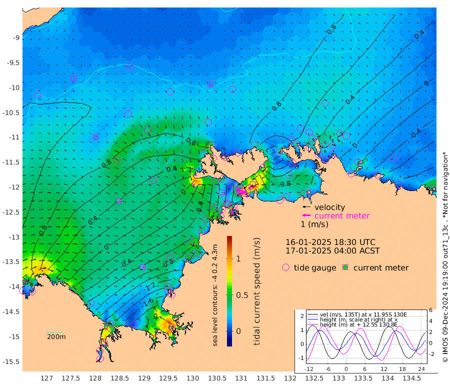91cm/s -101T +4cm/s rms + 6cm/s 51T. Darwin_C1 52m 69cm/s -91T +4cm/s rms + 7cm/s -161T. Darwin_CW1 22m 44cm/s -106T +4cm/s rms + 8cm/s 61T. Darwin_CW2 34m 75cm/s -137T +3cm/s rms + 9cm/s 98T. Darwin_CW3 22m 86cm/s -91T +5cm/s rms + 7cm/s 88T. Darwin_C3 56m 34cm/s -115T +2cm/s rms + 9cm/s -126T. Darwin_CTbW 22m 14cm/s 149T +9cm/s rms + 2cm/s -110T. NWSLYN 196m 25cm/s 106T +1cm/s rms + 1cm/s -47T. DARBGF 30m 13cm/s 49T +7cm/s rms + 2cm/s -137T. ITFTIS 464m 13cm/s 78T +9cm/s rms + 1cm/s 74T. ITFMHB 146m 22cm/s 103T +4cm/s rms + 1cm/s -134T. ITFJBG 61m 30cm/s 105T +6cm/s rms + 4cm/s 121T. ITFFTB 108m 30cm/s 139T +4cm/s rms + 3cm/s 80T. NRSDAR 19m 56cm Carronade Island 57cm Guy Point 64cm Napier Broome Bay -9cm Lesueur Island -106cm Reveley Island -76cm Rocky Island -192cm Cape Domett -164cm Lacrosse Island -235cm Adolphus Island -212cm Pender Point -212cm Wyndham 59cm The Boxers 67cm Unnamed Shoal 95cm Loxton Shoal -202cm Pelican Island 72cm Calder Shoal 79cm Evans Shoal -291cm Quoin Island -157cm Port Keats -160cm Jones Point -261cm Catfish Island -70cm Cape Scott Offshore -49cm Cape Ford -74cm Anson Bay 76cm Goodrich Bank -67cm Peron Island North -52cm Point Jenny -48cm Native Point -72cm Fish Reef -70cm Tapa Bay 25cm Point Fawcett (Offshore) -94cm Burge Point -68cm Munkunuwa -35cm Beagle A -98cm Parsons Bank -91cm Fenton Patches 75cm Lynedoch Bank -102cm Hancox Shoal Area -100cm Nightcliff -114cm Darwin -81cm Charles Point Patches -111cm Glyde Point -139cm Chambers Bay -149cm Point Stuart -111cm Cape Hotham -121cm Christine Reef -170cm West Alligator Head -182cm East Field Island -106cm Two Hills Bay 14cm Newby Shoal -92cm Camp Point -72cm Medina Inlet South 37cm South Barlow Point 55cm St. Asaph Bay 78cm Cape Van Dieman 77cm Snake Bay 68cm Cache Point 97cm Echo Shoal 44cm Point Jahleel (Off) -8cm Cape Don 39cm Port Essington 37cm Smith Point - West 39cm NW Peacock Island 57cm North Of Jones Shoal 18cm Peacock Island 21cm Point David 36cm D'urville Point 46cm Money Shoal 14cm Copeland Island 12cm Cape Cockburn 22cm One Tree Point 15cm Hogmany Shoal 22cm New Year Island - West 16cm Grant Island -12cm Aurari Bay -35cm Cuthbert Point -8cm North Goulburn Island -36cm Paxie Shoal -71cm Entrance Island -104cm Yabooma Island