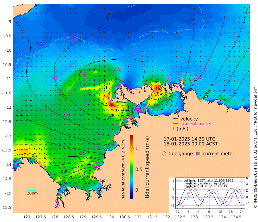 46cm/s -102T +4cm/s rms + 6cm/s 51T. Darwin_C1 52m 27cm/s -88T +4cm/s rms + 7cm/s -161T. Darwin_CW1 22m 19cm/s -116T +4cm/s rms + 8cm/s 61T. Darwin_CW2 34m 10cm/s -12T +3cm/s rms + 9cm/s 98T. Darwin_CW3 22m 8cm/s 114T +5cm/s rms + 7cm/s 88T. Darwin_C3 56m 30cm/s -118T +2cm/s rms + 9cm/s -126T. Darwin_CTbW 22m 6cm/s -22T +9cm/s rms + 2cm/s -110T. NWSLYN 196m 59cm/s -85T +1cm/s rms + 1cm/s -47T. DARBGF 30m 7cm/s -74T +7cm/s rms + 2cm/s -137T. ITFTIS 464m 17cm/s -26T +9cm/s rms + 1cm/s 74T. ITFMHB 146m 46cm/s -34T +4cm/s rms + 1cm/s -134T. ITFJBG 61m 45cm/s -50T +6cm/s rms + 4cm/s 121T. ITFFTB 108m 60cm/s -54T +4cm/s rms + 3cm/s 80T. NRSDAR 19m 94cm Carronade Island 97cm Guy Point 106cm Napier Broome Bay 89cm Lesueur Island 107cm Reveley Island 91cm Rocky Island 172cm Cape Domett 149cm Lacrosse Island 220cm Adolphus Island 306cm Pender Point 337cm Wyndham -15cm The Boxers -33cm Unnamed Shoal -21cm Loxton Shoal 142cm Pelican Island -35cm Calder Shoal -37cm Evans Shoal 282cm Quoin Island 73cm Port Keats 79cm Jones Point 301cm Catfish Island 0cm Cape Scott Offshore -39cm Cape Ford -16cm Anson Bay -50cm Goodrich Bank -18cm Peron Island North -30cm Point Jenny -30cm Native Point -24cm Fish Reef -22cm Tapa Bay -59cm Point Fawcett (Offshore) -4cm Burge Point -38cm Munkunuwa -39cm Beagle A -10cm Parsons Bank -10cm Fenton Patches -36cm Lynedoch Bank 5cm Hancox Shoal Area -9cm Nightcliff 10cm Darwin -10cm Charles Point Patches 63cm Glyde Point 137cm Chambers Bay 158cm Point Stuart 80cm Cape Hotham 122cm Christine Reef 182cm West Alligator Head 219cm East Field Island 101cm Two Hills Bay -21cm Newby Shoal 97cm Camp Point -23cm Medina Inlet South -68cm South Barlow Point -66cm St. Asaph Bay -57cm Cape Van Dieman -57cm Snake Bay -47cm Cache Point -12cm Echo Shoal -32cm Point Jahleel (Off) 2cm Cape Don -34cm Port Essington -41cm Smith Point - West -36cm NW Peacock Island -45cm North Of Jones Shoal -16cm Peacock Island -22cm Point David -41cm D'urville Point -31cm Money Shoal -20cm Copeland Island -23cm Cape Cockburn -22cm One Tree Point -4cm Hogmany Shoal -16cm New Year Island - West -13cm Grant Island -5cm Aurari Bay 22cm Cuthbert Point -1cm North Goulburn Island 40cm Paxie Shoal 59cm Entrance Island 82cm Yabooma Island