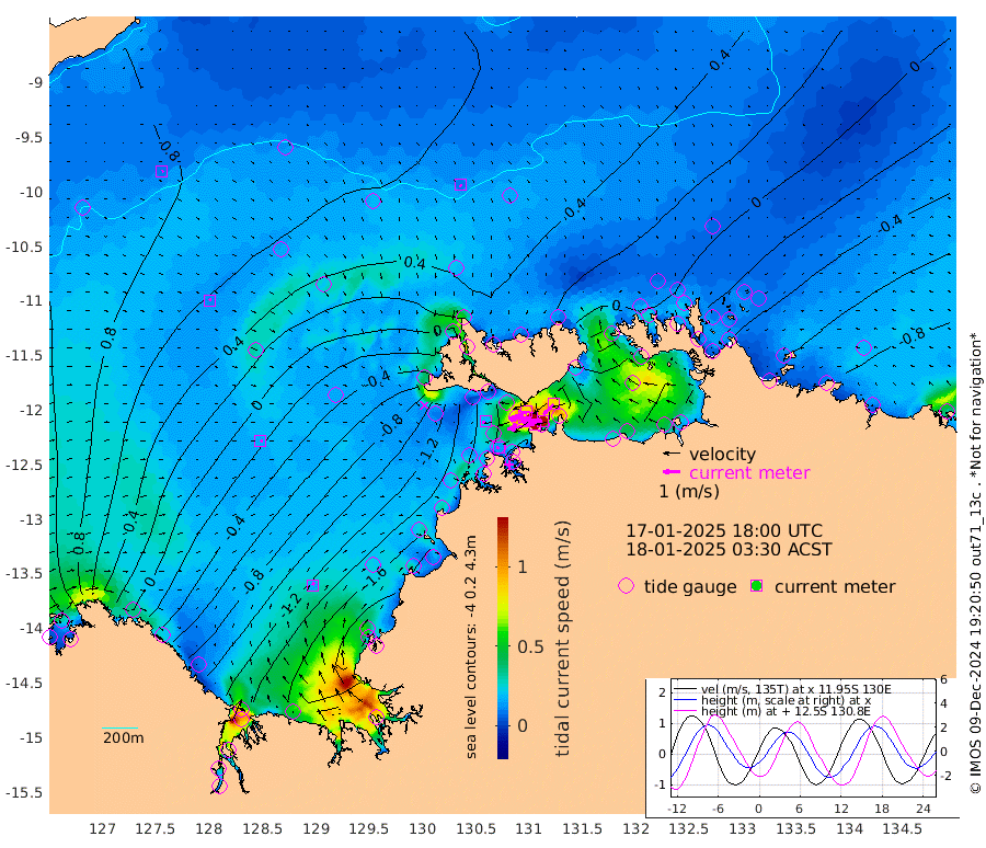 160cm/s -100T +4cm/s rms + 6cm/s 51T. Darwin_C1 52m 126cm/s -91T +4cm/s rms + 7cm/s -161T. Darwin_CW1 22m 80cm/s -106T +4cm/s rms + 8cm/s 61T. Darwin_CW2 34m 83cm/s -136T +3cm/s rms + 9cm/s 98T. Darwin_CW3 22m 132cm/s -91T +5cm/s rms + 7cm/s 88T. Darwin_C3 56m 83cm/s -116T +2cm/s rms + 9cm/s -126T. Darwin_CTbW 22m 10cm/s 154T +9cm/s rms + 2cm/s -110T. NWSLYN 196m 18cm/s -107T +1cm/s rms + 1cm/s -47T. DARBGF 30m 10cm/s 51T +7cm/s rms + 2cm/s -137T. ITFTIS 464m 12cm/s 54T +9cm/s rms + 1cm/s 74T. ITFMHB 146m 17cm/s 29T +4cm/s rms + 1cm/s -134T. ITFJBG 61m 16cm/s 74T +6cm/s rms + 4cm/s 121T. ITFFTB 108m 14cm/s -98T +4cm/s rms + 3cm/s 80T. NRSDAR 19m 99cm Carronade Island 102cm Guy Point 109cm Napier Broome Bay 0cm Lesueur Island -111cm Reveley Island -62cm Rocky Island -190cm Cape Domett -166cm Lacrosse Island -209cm Adolphus Island -130cm Pender Point -112cm Wyndham 26cm The Boxers 19cm Unnamed Shoal 78cm Loxton Shoal -219cm Pelican Island 35cm Calder Shoal 52cm Evans Shoal -256cm Quoin Island -205cm Port Keats -202cm Jones Point -221cm Catfish Island -138cm Cape Scott Offshore -123cm Cape Ford -157cm Anson Bay 39cm Goodrich Bank -143cm Peron Island North -127cm Point Jenny -122cm Native Point -151cm Fish Reef -150cm Tapa Bay -45cm Point Fawcett (Offshore) -169cm Burge Point -148cm Munkunuwa -106cm Beagle A -175cm Parsons Bank -163cm Fenton Patches 46cm Lynedoch Bank -171cm Hancox Shoal Area -179cm Nightcliff -193cm Darwin -163cm Charles Point Patches -143cm Glyde Point -126cm Chambers Bay -124cm Point Stuart -128cm Cape Hotham -108cm Christine Reef -136cm West Alligator Head -126cm East Field Island -107cm Two Hills Bay -39cm Newby Shoal -92cm Camp Point -154cm Medina Inlet South -31cm South Barlow Point -3cm St. Asaph Bay 36cm Cape Van Dieman 30cm Snake Bay 29cm Cache Point 92cm Echo Shoal 6cm Point Jahleel (Off) -44cm Cape Don -4cm Port Essington -7cm Smith Point - West -2cm NW Peacock Island 13cm North Of Jones Shoal 2cm Peacock Island -19cm Point David -9cm D'urville Point 7cm Money Shoal -25cm Copeland Island -40cm Cape Cockburn -21cm One Tree Point -24cm Hogmany Shoal -17cm New Year Island - West -23cm Grant Island -50cm Aurari Bay -65cm Cuthbert Point -47cm North Goulburn Island -62cm Paxie Shoal -87cm Entrance Island -112cm Yabooma Island