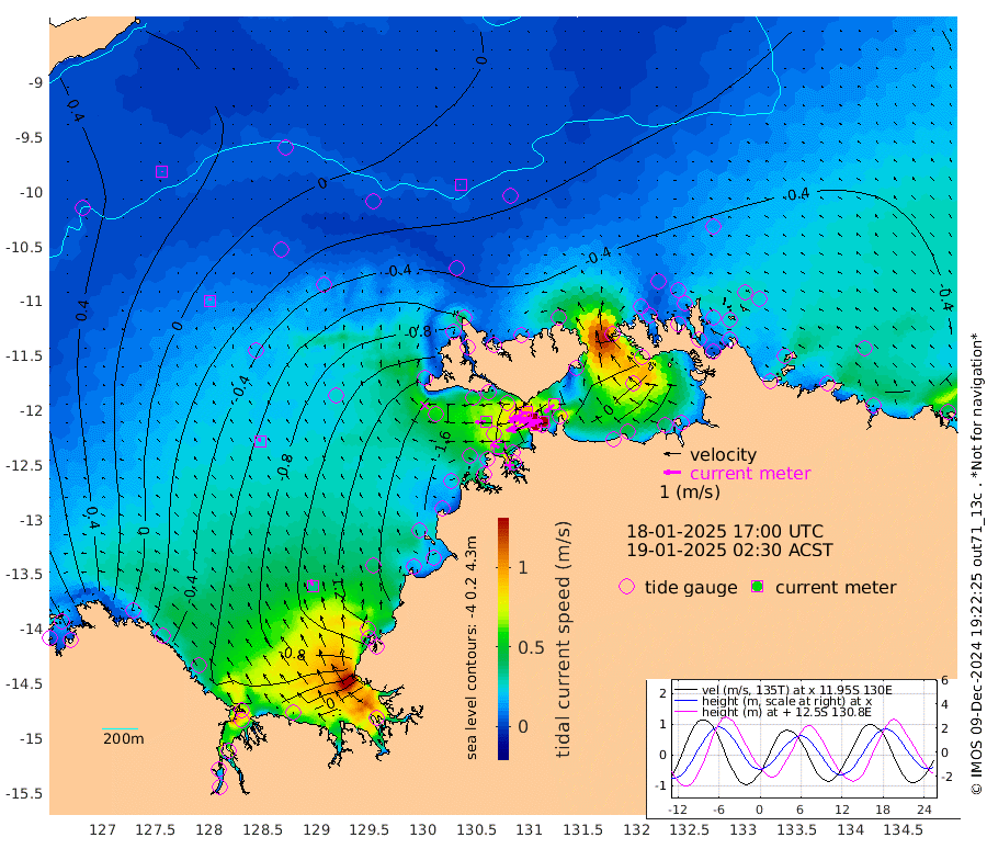172cm/s -102T +4cm/s rms + 6cm/s 51T. Darwin_C1 52m 134cm/s -90T +4cm/s rms + 7cm/s -161T. Darwin_CW1 22m 99cm/s -107T +4cm/s rms + 8cm/s 61T. Darwin_CW2 34m 69cm/s -131T +3cm/s rms + 9cm/s 98T. Darwin_CW3 22m 129cm/s -91T +5cm/s rms + 7cm/s 88T. Darwin_C3 56m 97cm/s -115T +2cm/s rms + 9cm/s -126T. Darwin_CTbW 22m 2cm/s -173T +9cm/s rms + 2cm/s -110T. NWSLYN 196m 61cm/s -91T +1cm/s rms + 1cm/s -47T. DARBGF 30m 4cm/s 17T +7cm/s rms + 2cm/s -137T. ITFTIS 464m 14cm/s 8T +9cm/s rms + 1cm/s 74T. ITFMHB 146m 36cm/s -18T +4cm/s rms + 1cm/s -134T. ITFJBG 61m 24cm/s -28T +6cm/s rms + 4cm/s 121T. ITFFTB 108m 52cm/s -65T +4cm/s rms + 3cm/s 80T. NRSDAR 19m 118cm Carronade Island 121cm Guy Point 130cm Napier Broome Bay 26cm Lesueur Island -51cm Reveley Island -5cm Rocky Island -77cm Cape Domett -72cm Lacrosse Island -58cm Adolphus Island 60cm Pender Point 99cm Wyndham -16cm The Boxers -36cm Unnamed Shoal 24cm Loxton Shoal -117cm Pelican Island -22cm Calder Shoal -2cm Evans Shoal -59cm Quoin Island -154cm Port Keats -141cm Jones Point -1cm Catfish Island -145cm Cape Scott Offshore -155cm Cape Ford -172cm Anson Bay -21cm Goodrich Bank -157cm Peron Island North -151cm Point Jenny -150cm Native Point -165cm Fish Reef -169cm Tapa Bay -103cm Point Fawcett (Offshore) -171cm Burge Point -174cm Munkunuwa -137cm Beagle A -177cm Parsons Bank -167cm Fenton Patches -7cm Lynedoch Bank -165cm Hancox Shoal Area -184cm Nightcliff -184cm Darwin -174cm Charles Point Patches -98cm Glyde Point -29cm Chambers Bay -8cm Point Stuart -70cm Cape Hotham -23cm Christine Reef -2cm West Alligator Head 33cm East Field Island -35cm Two Hills Bay -76cm Newby Shoal -29cm Camp Point -172cm Medina Inlet South -96cm South Barlow Point -69cm St. Asaph Bay -28cm Cape Van Dieman -36cm Snake Bay -27cm Cache Point 45cm Echo Shoal -35cm Point Jahleel (Off) -52cm Cape Don -43cm Port Essington -49cm Smith Point - West -41cm NW Peacock Island -37cm North Of Jones Shoal -15cm Peacock Island -45cm Point David -50cm D'urville Point -30cm Money Shoal -47cm Copeland Island -64cm Cape Cockburn -47cm One Tree Point -41cm Hogmany Shoal -41cm New Year Island - West -44cm Grant Island -55cm Aurari Bay -47cm Cuthbert Point -53cm North Goulburn Island -39cm Paxie Shoal -42cm Entrance Island -41cm Yabooma Island