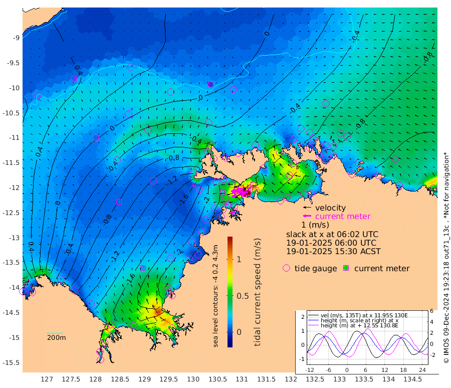 164cm/s -102T +4cm/s rms + 6cm/s 51T. Darwin_C1 52m 129cm/s -90T +4cm/s rms + 7cm/s -161T. Darwin_CW1 22m 101cm/s -107T +4cm/s rms + 8cm/s 61T. Darwin_CW2 34m 78cm/s -133T +3cm/s rms + 9cm/s 98T. Darwin_CW3 22m 156cm/s -91T +5cm/s rms + 7cm/s 88T. Darwin_C3 56m 91cm/s -115T +2cm/s rms + 9cm/s -126T. Darwin_CTbW 22m 3cm/s -76T +9cm/s rms + 2cm/s -110T. NWSLYN 196m 32cm/s -99T +1cm/s rms + 1cm/s -47T. DARBGF 30m 6cm/s 140T +7cm/s rms + 2cm/s -137T. ITFTIS 464m 7cm/s 131T +9cm/s rms + 1cm/s 74T. ITFMHB 146m 13cm/s 12T +4cm/s rms + 1cm/s -134T. ITFJBG 61m 7cm/s 80T +6cm/s rms + 4cm/s 121T. ITFFTB 108m 25cm/s -80T +4cm/s rms + 3cm/s 80T. NRSDAR 19m 80cm Carronade Island 81cm Guy Point 75cm Napier Broome Bay -24cm Lesueur Island -121cm Reveley Island -67cm Rocky Island -184cm Cape Domett -159cm Lacrosse Island -174cm Adolphus Island -115cm Pender Point -83cm Wyndham -30cm The Boxers -58cm Unnamed Shoal 26cm Loxton Shoal -212cm Pelican Island -12cm Calder Shoal 12cm Evans Shoal -218cm Quoin Island -217cm Port Keats -211cm Jones Point -169cm Catfish Island -168cm Cape Scott Offshore -152cm Cape Ford -195cm Anson Bay -10cm Goodrich Bank -166cm Peron Island North -157cm Point Jenny -159cm Native Point -170cm Fish Reef -187cm Tapa Bay -87cm Point Fawcett (Offshore) -190cm Burge Point -179cm Munkunuwa -127cm Beagle A -199cm Parsons Bank -177cm Fenton Patches -2cm Lynedoch Bank -192cm Hancox Shoal Area -197cm Nightcliff -222cm Darwin -204cm Charles Point Patches -148cm Glyde Point -103cm Chambers Bay -92cm Point Stuart -119cm Cape Hotham -86cm Christine Reef -95cm West Alligator Head -73cm East Field Island -93cm Two Hills Bay -76cm Newby Shoal -94cm Camp Point -188cm Medina Inlet South -79cm South Barlow Point -47cm St. Asaph Bay -15cm Cape Van Dieman -26cm Snake Bay -14cm Cache Point 55cm Echo Shoal -29cm Point Jahleel (Off) -69cm Cape Don -43cm Port Essington -39cm Smith Point - West -36cm NW Peacock Island -23cm North Of Jones Shoal -10cm Peacock Island -59cm Point David -43cm D'urville Point -33cm Money Shoal -59cm Copeland Island -71cm Cape Cockburn -56cm One Tree Point -71cm Hogmany Shoal -56cm New Year Island - West -61cm Grant Island -73cm Aurari Bay -83cm Cuthbert Point -75cm North Goulburn Island -94cm Paxie Shoal -96cm Entrance Island -100cm Yabooma Island