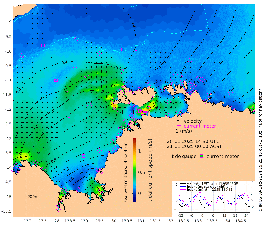 71cm/s 79T +4cm/s rms + 6cm/s 51T. Darwin_C1 52m 56cm/s 91T +4cm/s rms + 7cm/s -161T. Darwin_CW1 22m 56cm/s 71T +4cm/s rms + 8cm/s 61T. Darwin_CW2 34m 50cm/s 47T +3cm/s rms + 9cm/s 98T. Darwin_CW3 22m 103cm/s 90T +5cm/s rms + 7cm/s 88T. Darwin_C3 56m 37cm/s 65T +2cm/s rms + 9cm/s -126T. Darwin_CTbW 22m 8cm/s -24T +9cm/s rms + 2cm/s -110T. NWSLYN 196m 22cm/s -70T +1cm/s rms + 1cm/s -47T. DARBGF 30m 8cm/s -84T +7cm/s rms + 2cm/s -137T. ITFTIS 464m 14cm/s -42T +9cm/s rms + 1cm/s 74T. ITFMHB 146m 21cm/s -52T +4cm/s rms + 1cm/s -134T. ITFJBG 61m 30cm/s -59T +6cm/s rms + 4cm/s 121T. ITFFTB 108m 37cm/s -47T +4cm/s rms + 3cm/s 80T. NRSDAR 19m 3cm Carronade Island -2cm Guy Point 12cm Napier Broome Bay 58cm Lesueur Island 120cm Reveley Island 103cm Rocky Island 201cm Cape Domett 175cm Lacrosse Island 238cm Adolphus Island 237cm Pender Point 248cm Wyndham -1cm The Boxers -1cm Unnamed Shoal -41cm Loxton Shoal 199cm Pelican Island -24cm Calder Shoal -38cm Evans Shoal 304cm Quoin Island 160cm Port Keats 157cm Jones Point 328cm Catfish Island 90cm Cape Scott Offshore 18cm Cape Ford 97cm Anson Bay -34cm Goodrich Bank 82cm Peron Island North 66cm Point Jenny 64cm Native Point 83cm Fish Reef 82cm Tapa Bay 7cm Point Fawcett (Offshore) 101cm Burge Point 68cm Munkunuwa 49cm Beagle A 103cm Parsons Bank 95cm Fenton Patches -27cm Lynedoch Bank 107cm Hancox Shoal Area 107cm Nightcliff 128cm Darwin 102cm Charles Point Patches 125cm Glyde Point 151cm Chambers Bay 159cm Point Stuart 122cm Cape Hotham 132cm Christine Reef 177cm West Alligator Head 189cm East Field Island 124cm Two Hills Bay 33cm Newby Shoal 113cm Camp Point 88cm Medina Inlet South -2cm South Barlow Point -21cm St. Asaph Bay -36cm Cape Van Dieman -28cm Snake Bay -26cm Cache Point -47cm Echo Shoal -7cm Point Jahleel (Off) 44cm Cape Don 3cm Port Essington 0cm Smith Point - West 0cm NW Peacock Island -12cm North Of Jones Shoal -2cm Peacock Island 20cm Point David 3cm D'urville Point 1cm Money Shoal 23cm Copeland Island 37cm Cape Cockburn 23cm One Tree Point 31cm Hogmany Shoal 26cm New Year Island - West 28cm Grant Island 50cm Aurari Bay 73cm Cuthbert Point 48cm North Goulburn Island 80cm Paxie Shoal 101cm Entrance Island 125cm Yabooma Island