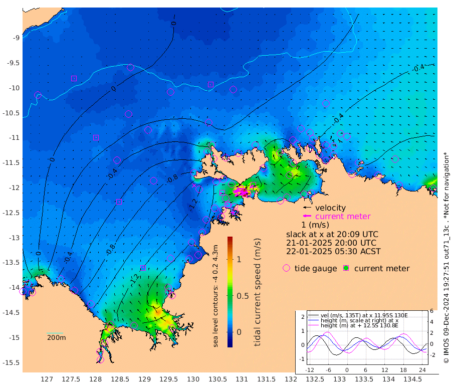 127cm/s -101T +4cm/s rms + 6cm/s 51T. Darwin_C1 52m 89cm/s -91T +4cm/s rms + 7cm/s -161T. Darwin_CW1 22m 75cm/s -106T +4cm/s rms + 8cm/s 61T. Darwin_CW2 34m 58cm/s -135T +3cm/s rms + 9cm/s 98T. Darwin_CW3 22m 120cm/s -91T +5cm/s rms + 7cm/s 88T. Darwin_C3 56m 79cm/s -115T +2cm/s rms + 9cm/s -126T. Darwin_CTbW 22m 5cm/s -172T +9cm/s rms + 2cm/s -110T. NWSLYN 196m 25cm/s -100T +1cm/s rms + 1cm/s -47T. DARBGF 30m 4cm/s 61T +7cm/s rms + 2cm/s -137T. ITFTIS 464m 8cm/s 31T +9cm/s rms + 1cm/s 74T. ITFMHB 146m 11cm/s 22T +4cm/s rms + 1cm/s -134T. ITFJBG 61m 7cm/s 46T +6cm/s rms + 4cm/s 121T. ITFFTB 108m 18cm/s -79T +4cm/s rms + 3cm/s 80T. NRSDAR 19m 14cm Carronade Island 12cm Guy Point 17cm Napier Broome Bay -60cm Lesueur Island -116cm Reveley Island -50cm Rocky Island -166cm Cape Domett -157cm Lacrosse Island -175cm Adolphus Island -116cm Pender Point -109cm Wyndham -32cm The Boxers -40cm Unnamed Shoal 4cm Loxton Shoal -182cm Pelican Island -30cm Calder Shoal -6cm Evans Shoal -210cm Quoin Island -173cm Port Keats -159cm Jones Point -190cm Catfish Island -143cm Cape Scott Offshore -88cm Cape Ford -157cm Anson Bay -13cm Goodrich Bank -141cm Peron Island North -127cm Point Jenny -125cm Native Point -136cm Fish Reef -145cm Tapa Bay -78cm Point Fawcett (Offshore) -148cm Burge Point -133cm Munkunuwa -110cm Beagle A -152cm Parsons Bank -145cm Fenton Patches -8cm Lynedoch Bank -155cm Hancox Shoal Area -170cm Nightcliff -168cm Darwin -151cm Charles Point Patches -124cm Glyde Point -110cm Chambers Bay -98cm Point Stuart -112cm Cape Hotham -97cm Christine Reef -105cm West Alligator Head -93cm East Field Island -97cm Two Hills Bay -79cm Newby Shoal -86cm Camp Point -144cm Medina Inlet South -65cm South Barlow Point -46cm St. Asaph Bay -15cm Cape Van Dieman -25cm Snake Bay -22cm Cache Point 13cm Echo Shoal -35cm Point Jahleel (Off) -63cm Cape Don -36cm Port Essington -41cm Smith Point - West -37cm NW Peacock Island -34cm North Of Jones Shoal -13cm Peacock Island -47cm Point David -42cm D'urville Point -29cm Money Shoal -48cm Copeland Island -67cm Cape Cockburn -49cm One Tree Point -54cm Hogmany Shoal -49cm New Year Island - West -51cm Grant Island -63cm Aurari Bay -66cm Cuthbert Point -63cm North Goulburn Island -69cm Paxie Shoal -80cm Entrance Island -90cm Yabooma Island