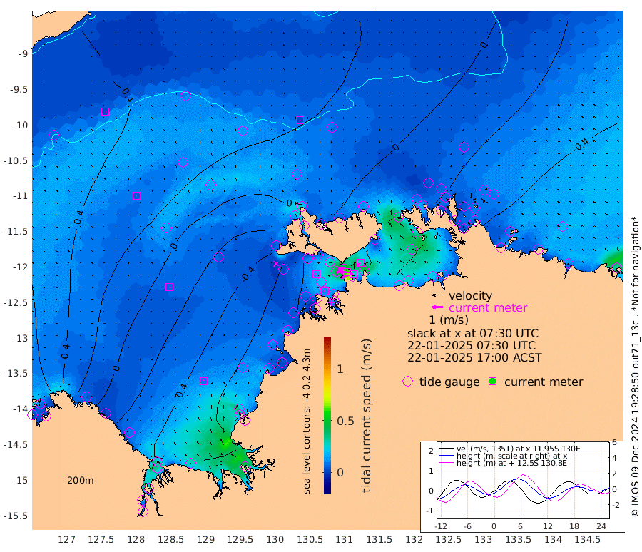 67cm/s -103T +4cm/s rms + 6cm/s 51T. Darwin_C1 52m 25cm/s -89T +4cm/s rms + 7cm/s -161T. Darwin_CW1 22m 49cm/s -108T +4cm/s rms + 8cm/s 61T. Darwin_CW2 34m 28cm/s -127T +3cm/s rms + 9cm/s 98T. Darwin_CW3 22m 62cm/s -92T +5cm/s rms + 7cm/s 88T. Darwin_C3 56m 44cm/s -115T +2cm/s rms + 9cm/s -126T. Darwin_CTbW 22m 1cm/s 17T +9cm/s rms + 2cm/s -110T. NWSLYN 196m 13cm/s -97T +1cm/s rms + 1cm/s -47T. DARBGF 30m 3cm/s 92T +7cm/s rms + 2cm/s -137T. ITFTIS 464m 5cm/s 113T +9cm/s rms + 1cm/s 74T. ITFMHB 146m 8cm/s 13T +4cm/s rms + 1cm/s -134T. ITFJBG 61m 6cm/s 69T +6cm/s rms + 4cm/s 121T. ITFFTB 108m 12cm/s -86T +4cm/s rms + 3cm/s 80T. NRSDAR 19m 86cm Carronade Island 87cm Guy Point 83cm Napier Broome Bay 44cm Lesueur Island -15cm Reveley Island -19cm Rocky Island -41cm Cape Domett -22cm Lacrosse Island -44cm Adolphus Island -7cm Pender Point 11cm Wyndham 18cm The Boxers 2cm Unnamed Shoal 39cm Loxton Shoal -61cm Pelican Island 27cm Calder Shoal 29cm Evans Shoal -56cm Quoin Island -66cm Port Keats -58cm Jones Point -12cm Catfish Island -45cm Cape Scott Offshore -6cm Cape Ford -61cm Anson Bay 14cm Goodrich Bank -43cm Peron Island North -44cm Point Jenny -46cm Native Point -44cm Fish Reef -57cm Tapa Bay -7cm Point Fawcett (Offshore) -56cm Burge Point -59cm Munkunuwa -26cm Beagle A -73cm Parsons Bank -51cm Fenton Patches 16cm Lynedoch Bank -68cm Hancox Shoal Area -67cm Nightcliff -75cm Darwin -63cm Charles Point Patches -41cm Glyde Point -21cm Chambers Bay -10cm Point Stuart -25cm Cape Hotham -18cm Christine Reef -9cm West Alligator Head 5cm East Field Island -16cm Two Hills Bay -1cm Newby Shoal -18cm Camp Point -58cm Medina Inlet South -16cm South Barlow Point 3cm St. Asaph Bay 12cm Cape Van Dieman 5cm Snake Bay 16cm Cache Point 59cm Echo Shoal 6cm Point Jahleel (Off) -16cm Cape Don -7cm Port Essington -8cm Smith Point - West -8cm NW Peacock Island 5cm North Of Jones Shoal 0cm Peacock Island -24cm Point David -13cm D'urville Point -7cm Money Shoal -26cm Copeland Island -27cm Cape Cockburn -20cm One Tree Point -25cm Hogmany Shoal -20cm New Year Island - West -25cm Grant Island -33cm Aurari Bay -44cm Cuthbert Point -34cm North Goulburn Island -44cm Paxie Shoal -54cm Entrance Island -60cm Yabooma Island