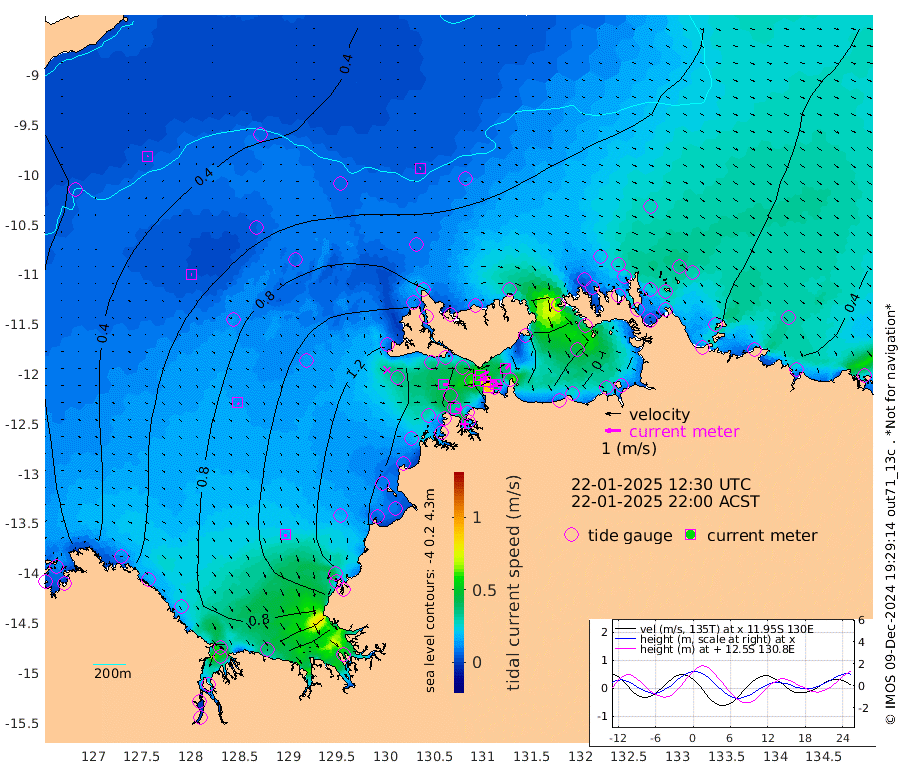 90cm/s 78T +4cm/s rms + 6cm/s 51T. Darwin_C1 52m 44cm/s 87T +4cm/s rms + 7cm/s -161T. Darwin_CW1 22m 56cm/s 74T +4cm/s rms + 8cm/s 61T. Darwin_CW2 34m 38cm/s 50T +3cm/s rms + 9cm/s 98T. Darwin_CW3 22m 71cm/s 89T +5cm/s rms + 7cm/s 88T. Darwin_C3 56m 58cm/s 64T +2cm/s rms + 9cm/s -126T. Darwin_CTbW 22m 3cm/s 64T +9cm/s rms + 2cm/s -110T. NWSLYN 196m 35cm/s 87T +1cm/s rms + 1cm/s -47T. DARBGF 30m 5cm/s 16T +7cm/s rms + 2cm/s -137T. ITFTIS 464m 2cm/s 108T +9cm/s rms + 1cm/s 74T. ITFMHB 146m 16cm/s 167T +4cm/s rms + 1cm/s -134T. ITFJBG 61m 11cm/s 132T +6cm/s rms + 4cm/s 121T. ITFFTB 108m 32cm/s 114T +4cm/s rms + 3cm/s 80T. NRSDAR 19m -12cm Carronade Island -14cm Guy Point -10cm Napier Broome Bay 40cm Lesueur Island 69cm Reveley Island 46cm Rocky Island 83cm Cape Domett 76cm Lacrosse Island 71cm Adolphus Island 9cm Pender Point -14cm Wyndham 64cm The Boxers 77cm Unnamed Shoal 41cm Loxton Shoal 87cm Pelican Island 67cm Calder Shoal 42cm Evans Shoal 52cm Quoin Island 125cm Port Keats 102cm Jones Point -40cm Catfish Island 110cm Cape Scott Offshore 133cm Cape Ford 125cm Anson Bay 57cm Goodrich Bank 119cm Peron Island North 121cm Point Jenny 123cm Native Point 122cm Fish Reef 130cm Tapa Bay 92cm Point Fawcett (Offshore) 140cm Burge Point 129cm Munkunuwa 119cm Beagle A 136cm Parsons Bank 134cm Fenton Patches 49cm Lynedoch Bank 125cm Hancox Shoal Area 141cm Nightcliff 142cm Darwin 137cm Charles Point Patches 80cm Glyde Point 28cm Chambers Bay 10cm Point Stuart 57cm Cape Hotham 33cm Christine Reef 3cm West Alligator Head -19cm East Field Island 35cm Two Hills Bay 111cm Newby Shoal 40cm Camp Point 133cm Medina Inlet South 99cm South Barlow Point 79cm St. Asaph Bay 60cm Cape Van Dieman 70cm Snake Bay 56cm Cache Point 21cm Echo Shoal 58cm Point Jahleel (Off) 61cm Cape Don 58cm Port Essington 61cm Smith Point - West 59cm NW Peacock Island 56cm North Of Jones Shoal 20cm Peacock Island 56cm Point David 62cm D'urville Point 53cm Money Shoal 53cm Copeland Island 73cm Cape Cockburn 57cm One Tree Point 56cm Hogmany Shoal 59cm New Year Island - West 60cm Grant Island 51cm Aurari Bay 46cm Cuthbert Point 57cm North Goulburn Island 39cm Paxie Shoal 42cm Entrance Island 24cm Yabooma Island