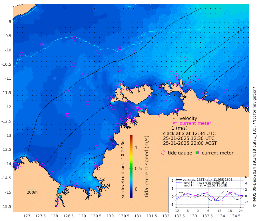 39cm/s -103T +4cm/s rms + 6cm/s 51T. Darwin_C1 52m 29cm/s -87T +4cm/s rms + 7cm/s -161T. Darwin_CW1 22m 9cm/s -115T +4cm/s rms + 8cm/s 61T. Darwin_CW2 34m 15cm/s -131T +3cm/s rms + 9cm/s 98T. Darwin_CW3 22m 3cm/s -89T +5cm/s rms + 7cm/s 88T. Darwin_C3 56m 28cm/s -114T +2cm/s rms + 9cm/s -126T. Darwin_CTbW 22m 4cm/s 108T +9cm/s rms + 2cm/s -110T. NWSLYN 196m 3cm/s -73T +1cm/s rms + 1cm/s -47T. DARBGF 30m 7cm/s 21T +7cm/s rms + 2cm/s -137T. ITFTIS 464m 8cm/s 30T +9cm/s rms + 1cm/s 74T. ITFMHB 146m 7cm/s -13T +4cm/s rms + 1cm/s -134T. ITFJBG 61m 7cm/s 17T +6cm/s rms + 4cm/s 121T. ITFFTB 108m 4cm/s -79T +4cm/s rms + 3cm/s 80T. NRSDAR 19m 69cm Carronade Island 71cm Guy Point 72cm Napier Broome Bay 67cm Lesueur Island 35cm Reveley Island 23cm Rocky Island 24cm Cape Domett 25cm Lacrosse Island 19cm Adolphus Island 31cm Pender Point 30cm Wyndham 64cm The Boxers 62cm Unnamed Shoal 75cm Loxton Shoal 7cm Pelican Island 69cm Calder Shoal 62cm Evans Shoal -4cm Quoin Island 16cm Port Keats 14cm Jones Point -49cm Catfish Island 18cm Cape Scott Offshore 86cm Cape Ford 11cm Anson Bay 61cm Goodrich Bank 29cm Peron Island North 21cm Point Jenny 24cm Native Point 22cm Fish Reef 21cm Tapa Bay 44cm Point Fawcett (Offshore) 25cm Burge Point 20cm Munkunuwa 32cm Beagle A 19cm Parsons Bank 21cm Fenton Patches 59cm Lynedoch Bank 13cm Hancox Shoal Area 8cm Nightcliff 21cm Darwin 29cm Charles Point Patches 14cm Glyde Point 0cm Chambers Bay 0cm Point Stuart 12cm Cape Hotham 2cm Christine Reef -4cm West Alligator Head -6cm East Field Island 11cm Two Hills Bay 60cm Newby Shoal 14cm Camp Point 24cm Medina Inlet South 49cm South Barlow Point 51cm St. Asaph Bay 59cm Cape Van Dieman 63cm Snake Bay 58cm Cache Point 70cm Echo Shoal 50cm Point Jahleel (Off) 33cm Cape Don 46cm Port Essington 43cm Smith Point - West 46cm NW Peacock Island 48cm North Of Jones Shoal 16cm Peacock Island 37cm Point David 43cm D'urville Point 44cm Money Shoal 32cm Copeland Island 44cm Cape Cockburn 38cm One Tree Point 49cm Hogmany Shoal 40cm New Year Island - West 40cm Grant Island 19cm Aurari Bay 16cm Cuthbert Point 29cm North Goulburn Island 11cm Paxie Shoal 9cm Entrance Island -12cm Yabooma Island