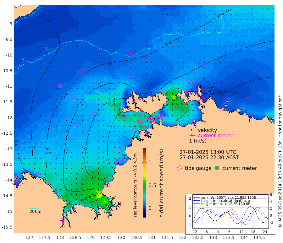 92cm/s -103T +4cm/s rms + 6cm/s 51T. Darwin_C1 52m 50cm/s -87T +4cm/s rms + 7cm/s -161T. Darwin_CW1 22m 37cm/s -111T +4cm/s rms + 8cm/s 61T. Darwin_CW2 34m 30cm/s -123T +3cm/s rms + 9cm/s 98T. Darwin_CW3 22m 23cm/s -93T +5cm/s rms + 7cm/s 88T. Darwin_C3 56m 58cm/s -115T +2cm/s rms + 9cm/s -126T. Darwin_CTbW 22m 4cm/s 107T +9cm/s rms + 2cm/s -110T. NWSLYN 196m 32cm/s -87T +1cm/s rms + 1cm/s -47T. DARBGF 30m 6cm/s 6T +7cm/s rms + 2cm/s -137T. ITFTIS 464m 12cm/s 10T +9cm/s rms + 1cm/s 74T. ITFMHB 146m 27cm/s -23T +4cm/s rms + 1cm/s -134T. ITFJBG 61m 21cm/s -28T +6cm/s rms + 4cm/s 121T. ITFFTB 108m 30cm/s -61T +4cm/s rms + 3cm/s 80T. NRSDAR 19m 111cm Carronade Island 115cm Guy Point 119cm Napier Broome Bay 84cm Lesueur Island 35cm Reveley Island 36cm Rocky Island 39cm Cape Domett 35cm Lacrosse Island 60cm Adolphus Island 116cm Pender Point 136cm Wyndham 49cm The Boxers 28cm Unnamed Shoal 73cm Loxton Shoal 12cm Pelican Island 47cm Calder Shoal 52cm Evans Shoal 67cm Quoin Island -13cm Port Keats -11cm Jones Point 79cm Catfish Island -20cm Cape Scott Offshore 7cm Cape Ford -38cm Anson Bay 39cm Goodrich Bank -20cm Peron Island North -35cm Point Jenny -34cm Native Point -32cm Fish Reef -38cm Tapa Bay 1cm Point Fawcett (Offshore) -36cm Burge Point -47cm Munkunuwa -25cm Beagle A -41cm Parsons Bank -39cm Fenton Patches 46cm Lynedoch Bank -37cm Hancox Shoal Area -52cm Nightcliff -31cm Darwin -21cm Charles Point Patches -2cm Glyde Point 27cm Chambers Bay 35cm Point Stuart 9cm Cape Hotham 21cm Christine Reef 38cm West Alligator Head 56cm East Field Island 25cm Two Hills Bay 20cm Newby Shoal 26cm Camp Point -32cm Medina Inlet South 2cm South Barlow Point 14cm St. Asaph Bay 33cm Cape Van Dieman 33cm Snake Bay 37cm Cache Point 80cm Echo Shoal 29cm Point Jahleel (Off) 18cm Cape Don 27cm Port Essington 21cm Smith Point - West 24cm NW Peacock Island 30cm North Of Jones Shoal 9cm Peacock Island 15cm Point David 18cm D'urville Point 29cm Money Shoal 12cm Copeland Island 19cm Cape Cockburn 20cm One Tree Point 31cm Hogmany Shoal 22cm New Year Island - West 20cm Grant Island 3cm Aurari Bay 9cm Cuthbert Point 13cm North Goulburn Island 10cm Paxie Shoal 7cm Entrance Island -2cm Yabooma Island