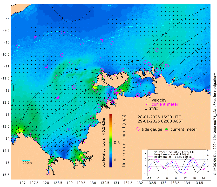 67cm/s -101T +4cm/s rms + 6cm/s 51T. Darwin_C1 52m 68cm/s -92T +4cm/s rms + 7cm/s -161T. Darwin_CW1 22m 31cm/s -108T +4cm/s rms + 8cm/s 61T. Darwin_CW2 34m 56cm/s -137T +3cm/s rms + 9cm/s 98T. Darwin_CW3 22m 56cm/s -92T +5cm/s rms + 7cm/s 88T. Darwin_C3 56m 25cm/s -114T +2cm/s rms + 9cm/s -126T. Darwin_CTbW 22m 11cm/s 145T +9cm/s rms + 2cm/s -110T. NWSLYN 196m 17cm/s 106T +1cm/s rms + 1cm/s -47T. DARBGF 30m 10cm/s 38T +7cm/s rms + 2cm/s -137T. ITFTIS 464m 10cm/s 63T +9cm/s rms + 1cm/s 74T. ITFMHB 146m 14cm/s 95T +4cm/s rms + 1cm/s -134T. ITFJBG 61m 20cm/s 101T +6cm/s rms + 4cm/s 121T. ITFFTB 108m 20cm/s 141T +4cm/s rms + 3cm/s 80T. NRSDAR 19m 65cm Carronade Island 62cm Guy Point 71cm Napier Broome Bay 22cm Lesueur Island -52cm Reveley Island -31cm Rocky Island -115cm Cape Domett -98cm Lacrosse Island -147cm Adolphus Island -133cm Pender Point -130cm Wyndham 67cm The Boxers 80cm Unnamed Shoal 83cm Loxton Shoal -122cm Pelican Island 71cm Calder Shoal 75cm Evans Shoal -202cm Quoin Island -95cm Port Keats -87cm Jones Point -162cm Catfish Island -36cm Cape Scott Offshore 27cm Cape Ford -41cm Anson Bay 78cm Goodrich Bank -21cm Peron Island North -13cm Point Jenny -10cm Native Point -24cm Fish Reef -27cm Tapa Bay 40cm Point Fawcett (Offshore) -41cm Burge Point -31cm Munkunuwa 2cm Beagle A -41cm Parsons Bank -39cm Fenton Patches 73cm Lynedoch Bank -49cm Hancox Shoal Area -58cm Nightcliff -56cm Darwin -32cm Charles Point Patches -50cm Glyde Point -73cm Chambers Bay -72cm Point Stuart -49cm Cape Hotham -60cm Christine Reef -87cm West Alligator Head -97cm East Field Island -42cm Two Hills Bay 43cm Newby Shoal -41cm Camp Point -31cm Medina Inlet South 47cm South Barlow Point 57cm St. Asaph Bay 80cm Cape Van Dieman 79cm Snake Bay 76cm Cache Point 81cm Echo Shoal 58cm Point Jahleel (Off) 25cm Cape Don 60cm Port Essington 60cm Smith Point - West 63cm NW Peacock Island 64cm North Of Jones Shoal 22cm Peacock Island 55cm Point David 62cm D'urville Point 64cm Money Shoal 49cm Copeland Island 61cm Cape Cockburn 52cm One Tree Point 69cm Hogmany Shoal 55cm New Year Island - West 54cm Grant Island 30cm Aurari Bay 26cm Cuthbert Point 37cm North Goulburn Island 12cm Paxie Shoal 1cm Entrance Island -26cm Yabooma Island