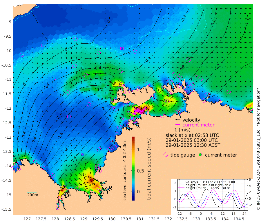 204cm/s -102T +4cm/s rms + 6cm/s 51T. Darwin_C1 52m 160cm/s -90T +4cm/s rms + 7cm/s -161T. Darwin_CW1 22m 100cm/s -106T +4cm/s rms + 8cm/s 61T. Darwin_CW2 34m 105cm/s -135T +3cm/s rms + 9cm/s 98T. Darwin_CW3 22m 152cm/s -90T +5cm/s rms + 7cm/s 88T. Darwin_C3 56m 116cm/s -115T +2cm/s rms + 9cm/s -126T. Darwin_CTbW 22m 5cm/s -106T +9cm/s rms + 2cm/s -110T. NWSLYN 196m 33cm/s -101T +1cm/s rms + 1cm/s -47T. DARBGF 30m 12cm/s 162T +7cm/s rms + 2cm/s -137T. ITFTIS 464m 11cm/s 169T +9cm/s rms + 1cm/s 74T. ITFMHB 146m 10cm/s 14T +4cm/s rms + 1cm/s -134T. ITFJBG 61m 7cm/s 130T +6cm/s rms + 4cm/s 121T. ITFFTB 108m 22cm/s -80T +4cm/s rms + 3cm/s 80T. NRSDAR 19m 4cm Carronade Island 2cm Guy Point 0cm Napier Broome Bay -116cm Lesueur Island -202cm Reveley Island -84cm Rocky Island -283cm Cape Domett -261cm Lacrosse Island -280cm Adolphus Island -214cm Pender Point -194cm Wyndham -77cm The Boxers -99cm Unnamed Shoal 4cm Loxton Shoal -306cm Pelican Island -51cm Calder Shoal -5cm Evans Shoal -316cm Quoin Island -312cm Port Keats -297cm Jones Point -253cm Catfish Island -236cm Cape Scott Offshore -261cm Cape Ford -265cm Anson Bay -34cm Goodrich Bank -227cm Peron Island North -237cm Point Jenny -237cm Native Point -242cm Fish Reef -266cm Tapa Bay -133cm Point Fawcett (Offshore) -280cm Burge Point -232cm Munkunuwa -209cm Beagle A -266cm Parsons Bank -272cm Fenton Patches -21cm Lynedoch Bank -271cm Hancox Shoal Area -285cm Nightcliff -302cm Darwin -283cm Charles Point Patches -225cm Glyde Point -179cm Chambers Bay -164cm Point Stuart -188cm Cape Hotham -169cm Christine Reef -170cm West Alligator Head -158cm East Field Island -153cm Two Hills Bay -159cm Newby Shoal -169cm Camp Point -254cm Medina Inlet South -113cm South Barlow Point -81cm St. Asaph Bay -38cm Cape Van Dieman -47cm Snake Bay -43cm Cache Point 29cm Echo Shoal -59cm Point Jahleel (Off) -110cm Cape Don -68cm Port Essington -66cm Smith Point - West -64cm NW Peacock Island -45cm North Of Jones Shoal -18cm Peacock Island -87cm Point David -70cm D'urville Point -63cm Money Shoal -87cm Copeland Island -110cm Cape Cockburn -83cm One Tree Point -111cm Hogmany Shoal -91cm New Year Island - West -93cm Grant Island -107cm Aurari Bay -125cm Cuthbert Point -108cm North Goulburn Island -139cm Paxie Shoal -144cm Entrance Island -154cm Yabooma Island