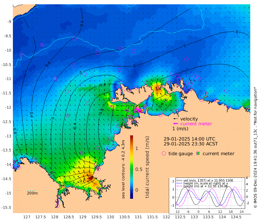 138cm/s -102T +4cm/s rms + 6cm/s 51T. Darwin_C1 52m 89cm/s -88T +4cm/s rms + 7cm/s -161T. Darwin_CW1 22m 67cm/s -110T +4cm/s rms + 8cm/s 61T. Darwin_CW2 34m 48cm/s -124T +3cm/s rms + 9cm/s 98T. Darwin_CW3 22m 60cm/s -92T +5cm/s rms + 7cm/s 88T. Darwin_C3 56m 80cm/s -115T +2cm/s rms + 9cm/s -126T. Darwin_CTbW 22m 3cm/s 120T +9cm/s rms + 2cm/s -110T. NWSLYN 196m 55cm/s -88T +1cm/s rms + 1cm/s -47T. DARBGF 30m 5cm/s -4T +7cm/s rms + 2cm/s -137T. ITFTIS 464m 15cm/s 4T +9cm/s rms + 1cm/s 74T. ITFMHB 146m 42cm/s -23T +4cm/s rms + 1cm/s -134T. ITFJBG 61m 32cm/s -34T +6cm/s rms + 4cm/s 121T. ITFFTB 108m 50cm/s -60T +4cm/s rms + 3cm/s 80T. NRSDAR 19m 140cm Carronade Island 146cm Guy Point 153cm Napier Broome Bay 79cm Lesueur Island 13cm Reveley Island 35cm Rocky Island 23cm Cape Domett 17cm Lacrosse Island 64cm Adolphus Island 161cm Pender Point 201cm Wyndham 23cm The Boxers -14cm Unnamed Shoal 61cm Loxton Shoal -15cm Pelican Island 16cm Calder Shoal 33cm Evans Shoal 93cm Quoin Island -64cm Port Keats -63cm Jones Point 153cm Catfish Island -72cm Cape Scott Offshore -107cm Cape Ford -97cm Anson Bay 9cm Goodrich Bank -84cm Peron Island North -100cm Point Jenny -100cm Native Point -100cm Fish Reef -108cm Tapa Bay -52cm Point Fawcett (Offshore) -109cm Burge Point -121cm Munkunuwa -90cm Beagle A -112cm Parsons Bank -110cm Fenton Patches 26cm Lynedoch Bank -98cm Hancox Shoal Area -117cm Nightcliff -100cm Darwin -90cm Charles Point Patches -36cm Glyde Point 33cm Chambers Bay 45cm Point Stuart -13cm Cape Hotham 25cm Christine Reef 54cm West Alligator Head 88cm East Field Island 19cm Two Hills Bay -28cm Newby Shoal 20cm Camp Point -101cm Medina Inlet South -50cm South Barlow Point -30cm St. Asaph Bay 0cm Cape Van Dieman -2cm Snake Bay 6cm Cache Point 80cm Echo Shoal 0cm Point Jahleel (Off) -7cm Cape Don -2cm Port Essington -10cm Smith Point - West -4cm NW Peacock Island 7cm North Of Jones Shoal 0cm Peacock Island -13cm Point David -13cm D'urville Point 7cm Money Shoal -15cm Copeland Island -15cm Cape Cockburn -5cm One Tree Point -1cm Hogmany Shoal -4cm New Year Island - West -7cm Grant Island -20cm Aurari Bay -8cm Cuthbert Point -12cm North Goulburn Island 0cm Paxie Shoal -5cm Entrance Island -2cm Yabooma Island