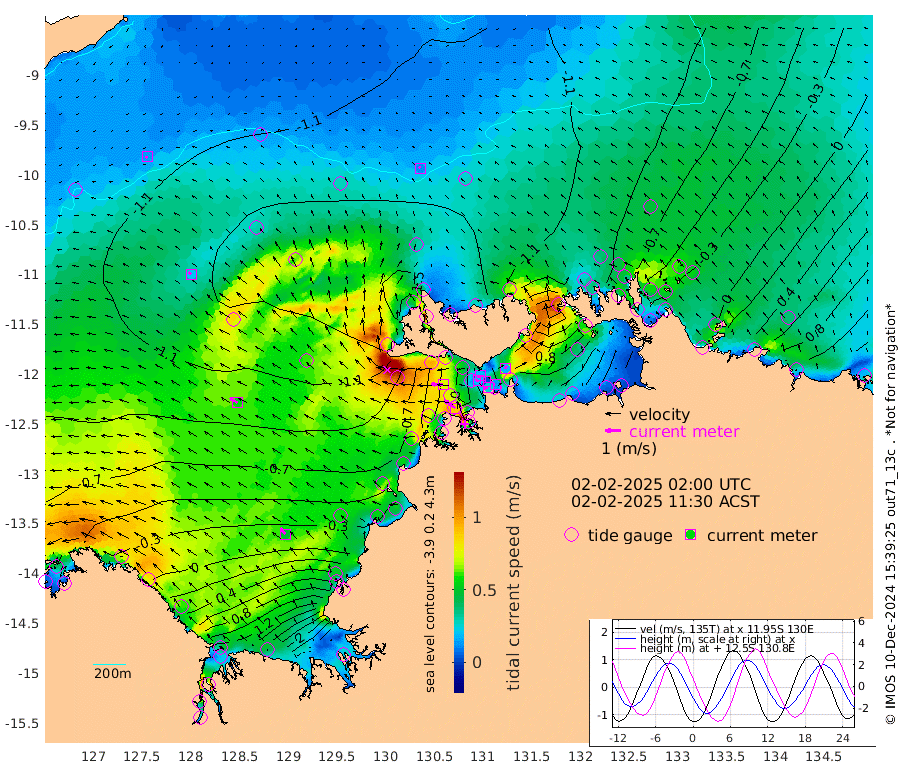 25cm/s -107T +4cm/s rms + 6cm/s 51T. Darwin_C1 52m 14cm/s -79T +4cm/s rms + 7cm/s -161T. Darwin_CW1 22m 18cm/s -103T +4cm/s rms + 8cm/s 61T. Darwin_CW2 34m 18cm/s 26T +3cm/s rms + 9cm/s 98T. Darwin_CW3 22m 2cm/s -159T +5cm/s rms + 7cm/s 88T. Darwin_C3 56m 19cm/s -117T +2cm/s rms + 9cm/s -126T. Darwin_CTbW 22m 12cm/s -27T +9cm/s rms + 2cm/s -110T. NWSLYN 196m 76cm/s -86T +1cm/s rms + 1cm/s -47T. DARBGF 30m 15cm/s -115T +7cm/s rms + 2cm/s -137T. ITFTIS 464m 22cm/s -46T +9cm/s rms + 1cm/s 74T. ITFMHB 146m 48cm/s -38T +4cm/s rms + 1cm/s -134T. ITFJBG 61m 57cm/s -57T +6cm/s rms + 4cm/s 121T. ITFFTB 108m 88cm/s -55T +4cm/s rms + 3cm/s 80T. NRSDAR 19m -4cm Carronade Island 5cm Guy Point -12cm Napier Broome Bay 18cm Lesueur Island 65cm Reveley Island -7cm Rocky Island 143cm Cape Domett 121cm Lacrosse Island 223cm Adolphus Island 270cm Pender Point 312cm Wyndham -106cm The Boxers -113cm Unnamed Shoal -113cm Loxton Shoal 145cm Pelican Island -125cm Calder Shoal -109cm Evans Shoal 308cm Quoin Island 50cm Port Keats 56cm Jones Point 324cm Catfish Island -32cm Cape Scott Offshore -150cm Cape Ford -40cm Anson Bay -114cm Goodrich Bank -56cm Peron Island North -76cm Point Jenny -80cm Native Point -72cm Fish Reef -58cm Tapa Bay -126cm Point Fawcett (Offshore) -52cm Burge Point -84cm Munkunuwa -96cm Beagle A -34cm Parsons Bank -49cm Fenton Patches -97cm Lynedoch Bank -3cm Hancox Shoal Area -22cm Nightcliff -17cm Darwin -47cm Charles Point Patches 50cm Glyde Point 151cm Chambers Bay 170cm Point Stuart 80cm Cape Hotham 131cm Christine Reef 197cm West Alligator Head 239cm East Field Island 101cm Two Hills Bay -111cm Newby Shoal 94cm Camp Point -68cm Medina Inlet South -131cm South Barlow Point -131cm St. Asaph Bay -122cm Cape Van Dieman -120cm Snake Bay -108cm Cache Point -97cm Echo Shoal -80cm Point Jahleel (Off) -26cm Cape Don -70cm Port Essington -70cm Smith Point - West -61cm NW Peacock Island -79cm North Of Jones Shoal -25cm Peacock Island -18cm Point David -61cm D'urville Point -51cm Money Shoal -8cm Copeland Island -18cm Cape Cockburn -27cm One Tree Point 2cm Hogmany Shoal -20cm New Year Island - West -14cm Grant Island 25cm Aurari Bay 57cm Cuthbert Point 16cm North Goulburn Island 79cm Paxie Shoal 115cm Entrance Island 181cm Yabooma Island