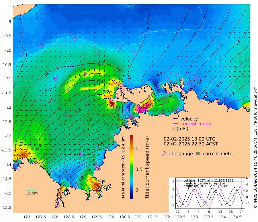 142cm/s 79T +4cm/s rms + 6cm/s 51T. Darwin_C1 52m 107cm/s 92T +4cm/s rms + 7cm/s -161T. Darwin_CW1 22m 97cm/s 71T +4cm/s rms + 8cm/s 61T. Darwin_CW2 34m 95cm/s 46T +3cm/s rms + 9cm/s 98T. Darwin_CW3 22m 164cm/s 90T +5cm/s rms + 7cm/s 88T. Darwin_C3 56m 69cm/s 65T +2cm/s rms + 9cm/s -126T. Darwin_CTbW 22m 13cm/s -21T +9cm/s rms + 2cm/s -110T. NWSLYN 196m 24cm/s -62T +1cm/s rms + 1cm/s -47T. DARBGF 30m 11cm/s -92T +7cm/s rms + 2cm/s -137T. ITFTIS 464m 17cm/s -56T +9cm/s rms + 1cm/s 74T. ITFMHB 146m 27cm/s -65T +4cm/s rms + 1cm/s -134T. ITFJBG 61m 40cm/s -64T +6cm/s rms + 4cm/s 121T. ITFFTB 108m 41cm/s -43T +4cm/s rms + 3cm/s 80T. NRSDAR 19m -27cm Carronade Island -26cm Guy Point -20cm Napier Broome Bay 70cm Lesueur Island 195cm Reveley Island 126cm Rocky Island 309cm Cape Domett 270cm Lacrosse Island 346cm Adolphus Island 331cm Pender Point 326cm Wyndham -16cm The Boxers -6cm Unnamed Shoal -76cm Loxton Shoal 309cm Pelican Island -39cm Calder Shoal -69cm Evans Shoal 422cm Quoin Island 268cm Port Keats 257cm Jones Point 336cm Catfish Island 153cm Cape Scott Offshore 99cm Cape Ford 168cm Anson Bay -57cm Goodrich Bank 139cm Peron Island North 130cm Point Jenny 129cm Native Point 143cm Fish Reef 160cm Tapa Bay 17cm Point Fawcett (Offshore) 191cm Burge Point 147cm Munkunuwa 98cm Beagle A 190cm Parsons Bank 177cm Fenton Patches -55cm Lynedoch Bank 194cm Hancox Shoal Area 202cm Nightcliff 219cm Darwin 174cm Charles Point Patches 190cm Glyde Point 205cm Chambers Bay 209cm Point Stuart 177cm Cape Hotham 187cm Christine Reef 233cm West Alligator Head 241cm East Field Island 163cm Two Hills Bay 53cm Newby Shoal 160cm Camp Point 159cm Medina Inlet South 7cm South Barlow Point -26cm St. Asaph Bay -58cm Cape Van Dieman -47cm Snake Bay -50cm Cache Point -93cm Echo Shoal -19cm Point Jahleel (Off) 51cm Cape Don -14cm Port Essington -15cm Smith Point - West -16cm NW Peacock Island -37cm North Of Jones Shoal -11cm Peacock Island 16cm Point David -12cm D'urville Point -18cm Money Shoal 20cm Copeland Island 29cm Cape Cockburn 13cm One Tree Point 27cm Hogmany Shoal 18cm New Year Island - West 25cm Grant Island 50cm Aurari Bay 79cm Cuthbert Point 51cm North Goulburn Island 98cm Paxie Shoal 128cm Entrance Island 159cm Yabooma Island