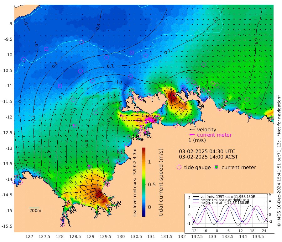 174cm/s -102T +4cm/s rms + 6cm/s 51T. Darwin_C1 52m 122cm/s -89T +4cm/s rms + 7cm/s -161T. Darwin_CW1 22m 119cm/s -109T +4cm/s rms + 8cm/s 61T. Darwin_CW2 34m 66cm/s -123T +3cm/s rms + 9cm/s 98T. Darwin_CW3 22m 146cm/s -92T +5cm/s rms + 7cm/s 88T. Darwin_C3 56m 98cm/s -116T +2cm/s rms + 9cm/s -126T. Darwin_CTbW 22m 6cm/s -41T +9cm/s rms + 2cm/s -110T. NWSLYN 196m 76cm/s -92T +1cm/s rms + 1cm/s -47T. DARBGF 30m 6cm/s -148T +7cm/s rms + 2cm/s -137T. ITFTIS 464m 10cm/s -16T +9cm/s rms + 1cm/s 74T. ITFMHB 146m 45cm/s -22T +4cm/s rms + 1cm/s -134T. ITFJBG 61m 33cm/s -43T +6cm/s rms + 4cm/s 121T. ITFFTB 108m 66cm/s -63T +4cm/s rms + 3cm/s 80T. NRSDAR 19m 103cm Carronade Island 110cm Guy Point 99cm Napier Broome Bay 17cm Lesueur Island -65cm Reveley Island -51cm Rocky Island -74cm Cape Domett -62cm Lacrosse Island -11cm Adolphus Island 87cm Pender Point 151cm Wyndham -71cm The Boxers -102cm Unnamed Shoal -22cm Loxton Shoal -101cm Pelican Island -73cm Calder Shoal -41cm Evans Shoal 17cm Quoin Island -173cm Port Keats -165cm Jones Point 121cm Catfish Island -171cm Cape Scott Offshore -275cm Cape Ford -202cm Anson Bay -67cm Goodrich Bank -192cm Peron Island North -201cm Point Jenny -204cm Native Point -211cm Fish Reef -216cm Tapa Bay -153cm Point Fawcett (Offshore) -226cm Burge Point -234cm Munkunuwa -184cm Beagle A -222cm Parsons Bank -208cm Fenton Patches -46cm Lynedoch Bank -191cm Hancox Shoal Area -207cm Nightcliff -225cm Darwin -220cm Charles Point Patches -107cm Glyde Point 7cm Chambers Bay 27cm Point Stuart -60cm Cape Hotham 4cm Christine Reef 42cm West Alligator Head 93cm East Field Island -18cm Two Hills Bay -134cm Newby Shoal -21cm Camp Point -223cm Medina Inlet South -150cm South Barlow Point -117cm St. Asaph Bay -77cm Cape Van Dieman -86cm Snake Bay -68cm Cache Point 20cm Echo Shoal -66cm Point Jahleel (Off) -74cm Cape Don -74cm Port Essington -73cm Smith Point - West -65cm NW Peacock Island -58cm North Of Jones Shoal -21cm Peacock Island -62cm Point David -73cm D'urville Point -53cm Money Shoal -57cm Copeland Island -76cm Cape Cockburn -63cm One Tree Point -60cm Hogmany Shoal -56cm New Year Island - West -61cm Grant Island -47cm Aurari Bay -41cm Cuthbert Point -58cm North Goulburn Island -34cm Paxie Shoal -24cm Entrance Island 8cm Yabooma Island