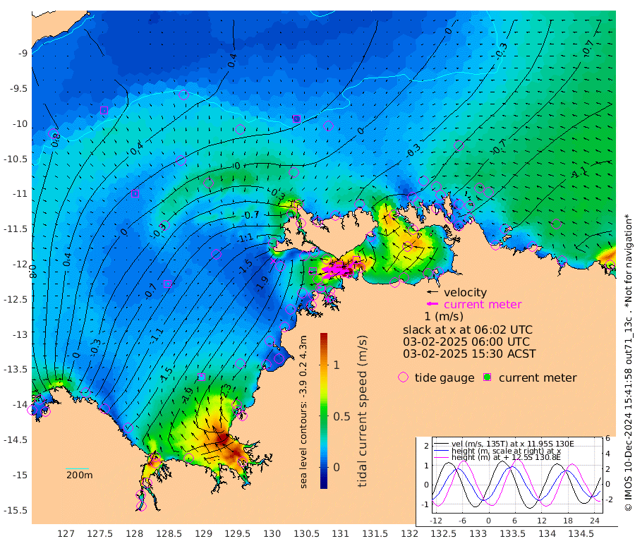 195cm/s -102T +4cm/s rms + 6cm/s 51T. Darwin_C1 52m 145cm/s -90T +4cm/s rms + 7cm/s -161T. Darwin_CW1 22m 124cm/s -107T +4cm/s rms + 8cm/s 61T. Darwin_CW2 34m 92cm/s -132T +3cm/s rms + 9cm/s 98T. Darwin_CW3 22m 186cm/s -91T +5cm/s rms + 7cm/s 88T. Darwin_C3 56m 108cm/s -115T +2cm/s rms + 9cm/s -126T. Darwin_CTbW 22m 2cm/s -115T +9cm/s rms + 2cm/s -110T. NWSLYN 196m 38cm/s -100T +1cm/s rms + 1cm/s -47T. DARBGF 30m 7cm/s 117T +7cm/s rms + 2cm/s -137T. ITFTIS 464m 8cm/s 91T +9cm/s rms + 1cm/s 74T. ITFMHB 146m 20cm/s 13T +4cm/s rms + 1cm/s -134T. ITFJBG 61m 11cm/s 63T +6cm/s rms + 4cm/s 121T. ITFFTB 108m 30cm/s -80T +4cm/s rms + 3cm/s 80T. NRSDAR 19m 106cm Carronade Island 106cm Guy Point 103cm Napier Broome Bay -8cm Lesueur Island -148cm Reveley Island -78cm Rocky Island -224cm Cape Domett -190cm Lacrosse Island -206cm Adolphus Island -134cm Pender Point -89cm Wyndham -16cm The Boxers -44cm Unnamed Shoal 53cm Loxton Shoal -252cm Pelican Island -1cm Calder Shoal 29cm Evans Shoal -241cm Quoin Island -266cm Port Keats -258cm Jones Point -134cm Catfish Island -196cm Cape Scott Offshore -230cm Cape Ford -228cm Anson Bay 4cm Goodrich Bank -201cm Peron Island North -201cm Point Jenny -201cm Native Point -213cm Fish Reef -231cm Tapa Bay -98cm Point Fawcett (Offshore) -251cm Burge Point -232cm Munkunuwa -161cm Beagle A -256cm Parsons Bank -228cm Fenton Patches 16cm Lynedoch Bank -241cm Hancox Shoal Area -248cm Nightcliff -273cm Darwin -244cm Charles Point Patches -181cm Glyde Point -124cm Chambers Bay -114cm Point Stuart -147cm Cape Hotham -114cm Christine Reef -118cm West Alligator Head -89cm East Field Island -113cm Two Hills Bay -94cm Newby Shoal -111cm Camp Point -232cm Medina Inlet South -88cm South Barlow Point -47cm St. Asaph Bay -3cm Cape Van Dieman -14cm Snake Bay -3cm Cache Point 92cm Echo Shoal -23cm Point Jahleel (Off) -79cm Cape Don -40cm Port Essington -37cm Smith Point - West -33cm NW Peacock Island -12cm North Of Jones Shoal -7cm Peacock Island -61cm Point David -42cm D'urville Point -27cm Money Shoal -62cm Copeland Island -80cm Cape Cockburn -57cm One Tree Point -75cm Hogmany Shoal -54cm New Year Island - West -65cm Grant Island -75cm Aurari Bay -97cm Cuthbert Point -84cm North Goulburn Island -108cm Paxie Shoal -122cm Entrance Island -133cm Yabooma Island