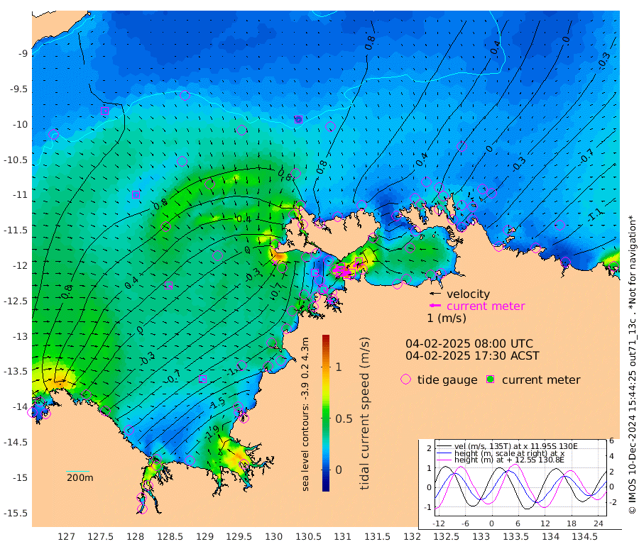 103cm/s -101T +4cm/s rms + 6cm/s 51T. Darwin_C1 52m 73cm/s -91T +4cm/s rms + 7cm/s -161T. Darwin_CW1 22m 59cm/s -107T +4cm/s rms + 8cm/s 61T. Darwin_CW2 34m 63cm/s -135T +3cm/s rms + 9cm/s 98T. Darwin_CW3 22m 111cm/s -91T +5cm/s rms + 7cm/s 88T. Darwin_C3 56m 55cm/s -115T +2cm/s rms + 9cm/s -126T. Darwin_CTbW 22m 5cm/s 151T +9cm/s rms + 2cm/s -110T. NWSLYN 196m 21cm/s 109T +1cm/s rms + 1cm/s -47T. DARBGF 30m 11cm/s 78T +7cm/s rms + 2cm/s -137T. ITFTIS 464m 14cm/s 112T +9cm/s rms + 1cm/s 74T. ITFMHB 146m 21cm/s 109T +4cm/s rms + 1cm/s -134T. ITFJBG 61m 33cm/s 110T +6cm/s rms + 4cm/s 121T. ITFFTB 108m 29cm/s 141T +4cm/s rms + 3cm/s 80T. NRSDAR 19m 68cm Carronade Island 64cm Guy Point 64cm Napier Broome Bay 4cm Lesueur Island -113cm Reveley Island -52cm Rocky Island -194cm Cape Domett -161cm Lacrosse Island -215cm Adolphus Island -214cm Pender Point -208cm Wyndham 56cm The Boxers 42cm Unnamed Shoal 100cm Loxton Shoal -207cm Pelican Island 75cm Calder Shoal 84cm Evans Shoal -285cm Quoin Island -166cm Port Keats -166cm Jones Point -246cm Catfish Island -87cm Cape Scott Offshore -33cm Cape Ford -101cm Anson Bay 74cm Goodrich Bank -76cm Peron Island North -69cm Point Jenny -67cm Native Point -75cm Fish Reef -92cm Tapa Bay 19cm Point Fawcett (Offshore) -109cm Burge Point -86cm Munkunuwa -29cm Beagle A -123cm Parsons Bank -91cm Fenton Patches 72cm Lynedoch Bank -126cm Hancox Shoal Area -120cm Nightcliff -136cm Darwin -100cm Charles Point Patches -121cm Glyde Point -143cm Chambers Bay -152cm Point Stuart -118cm Cape Hotham -129cm Christine Reef -170cm West Alligator Head -172cm East Field Island -114cm Two Hills Bay 17cm Newby Shoal -103cm Camp Point -89cm Medina Inlet South 28cm South Barlow Point 54cm St. Asaph Bay 73cm Cape Van Dieman 67cm Snake Bay 67cm Cache Point 117cm Echo Shoal 39cm Point Jahleel (Off) -25cm Cape Don 25cm Port Essington 27cm Smith Point - West 25cm NW Peacock Island 47cm North Of Jones Shoal 14cm Peacock Island -15cm Point David 20cm D'urville Point 24cm Money Shoal -20cm Copeland Island -24cm Cape Cockburn -9cm One Tree Point -31cm Hogmany Shoal -8cm New Year Island - West -19cm Grant Island -43cm Aurari Bay -77cm Cuthbert Point -47cm North Goulburn Island -98cm Paxie Shoal -123cm Entrance Island -164cm Yabooma Island
